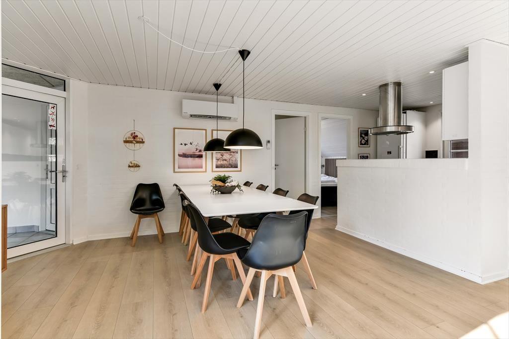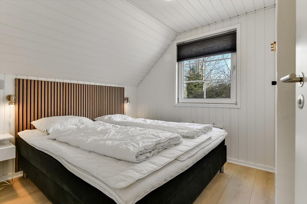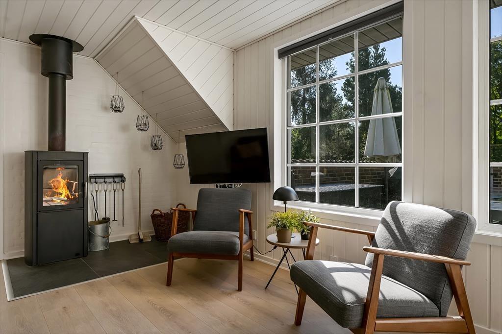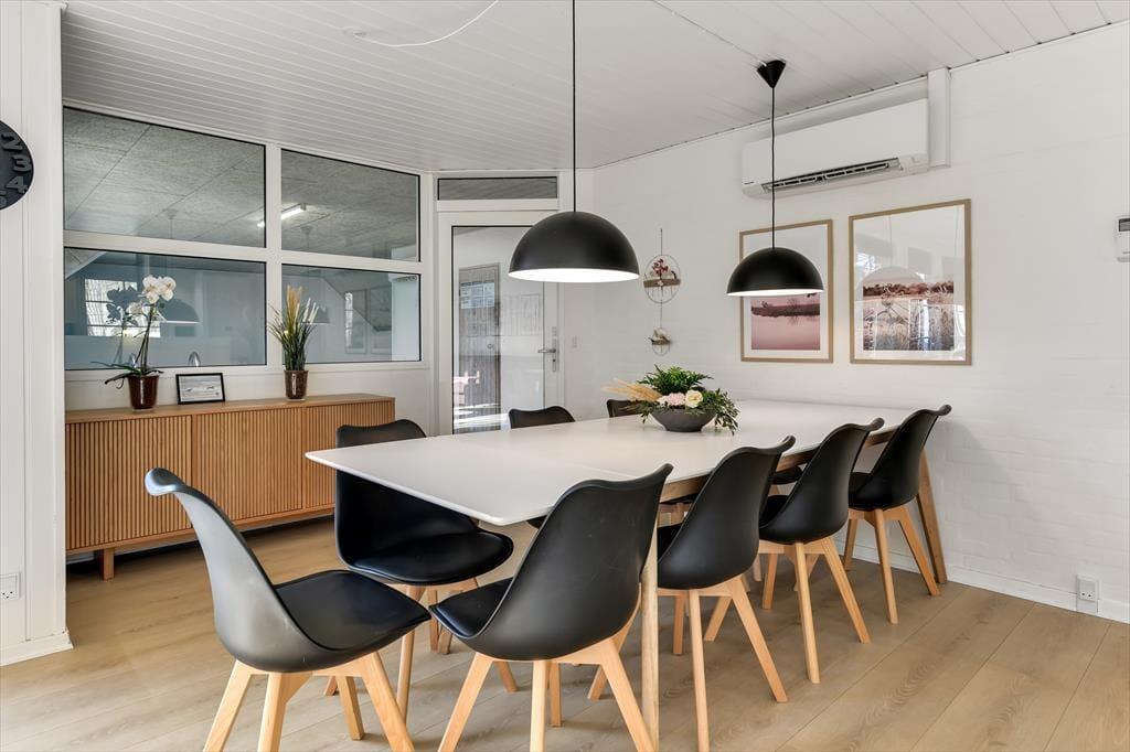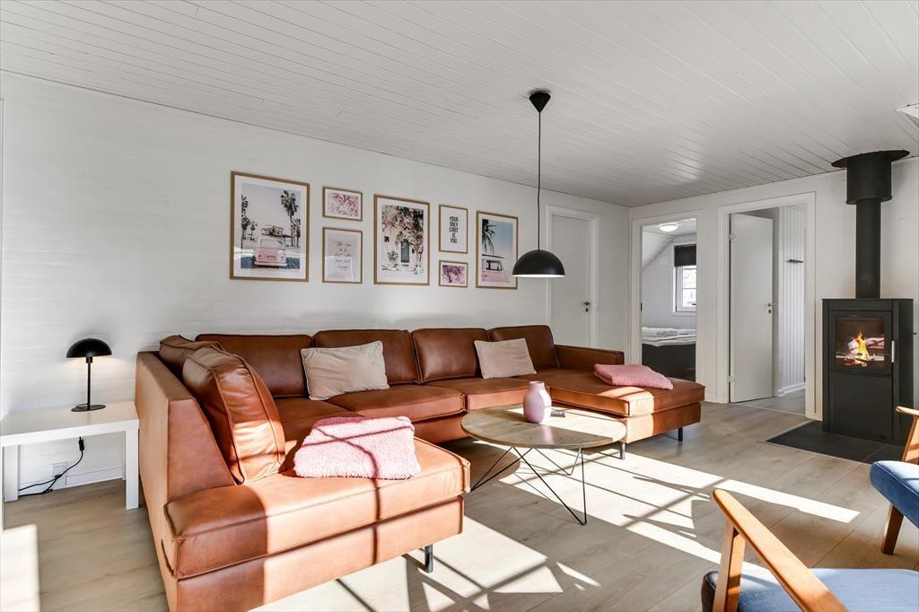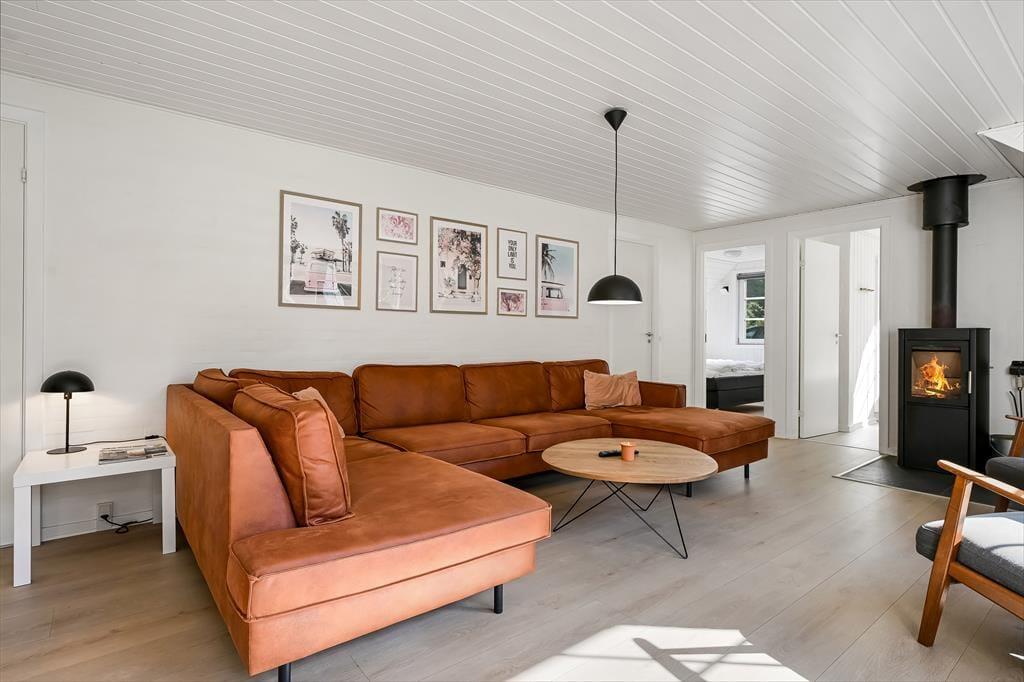 Når du træder ind i sommerhuset, mødes du af en varm og indbydende atmosfære, hvor store vinduer lukker dagslyset ind og skaber en hyggelig feriestemning. Det åbne opholdsrum samler køkken, spiseområde og stue i ét, så familien kan være sammen om madlavningen, et brætspil eller en god film på sofaen. Trænger du til ekstra forkælelse, kan du tage en dukkert i den indendørs swimmingpool, som indbyder til timevis af vandleg og afslapning. Solceller på taget sikrer desuden et energivenligt ophold, så du kan nyde ferien med god samvittighed.