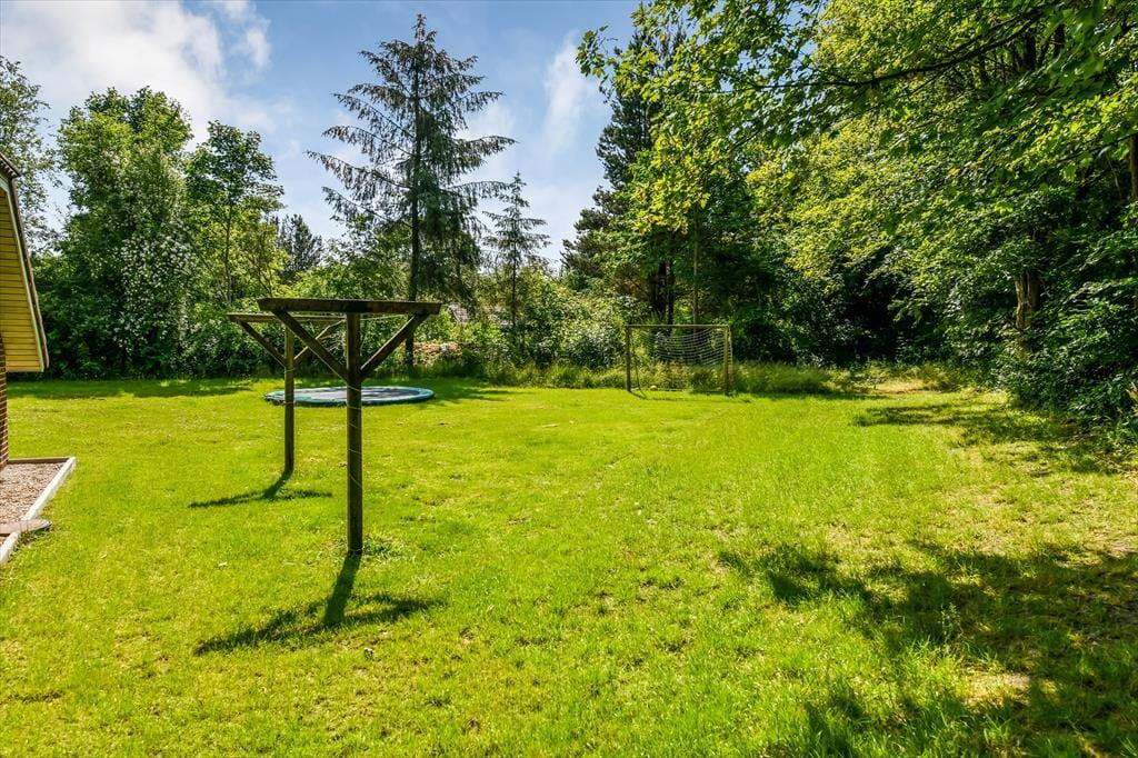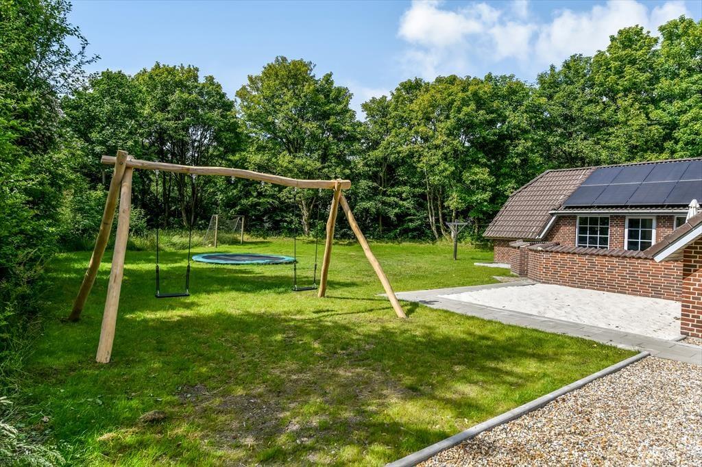 Sommerhusets store naturgrund er en sand legeplads for både børn og voksne. Her kan du spille bold på græsplænen, hoppe på trampolinen eller gynge højt i luften. De mindste kan bygge flotte sandslotte i sandkassen, mens resten af familien nyder solen på terrassen. Den lukkede terrasse skaber en tryg ramme for både børn og hund, så alle kan slappe af uden bekymringer. På lune aftener er terrassen det perfekte sted at samle familien til en grillmiddag og lade dagens oplevelser falde på plads under den åbne himmel.
