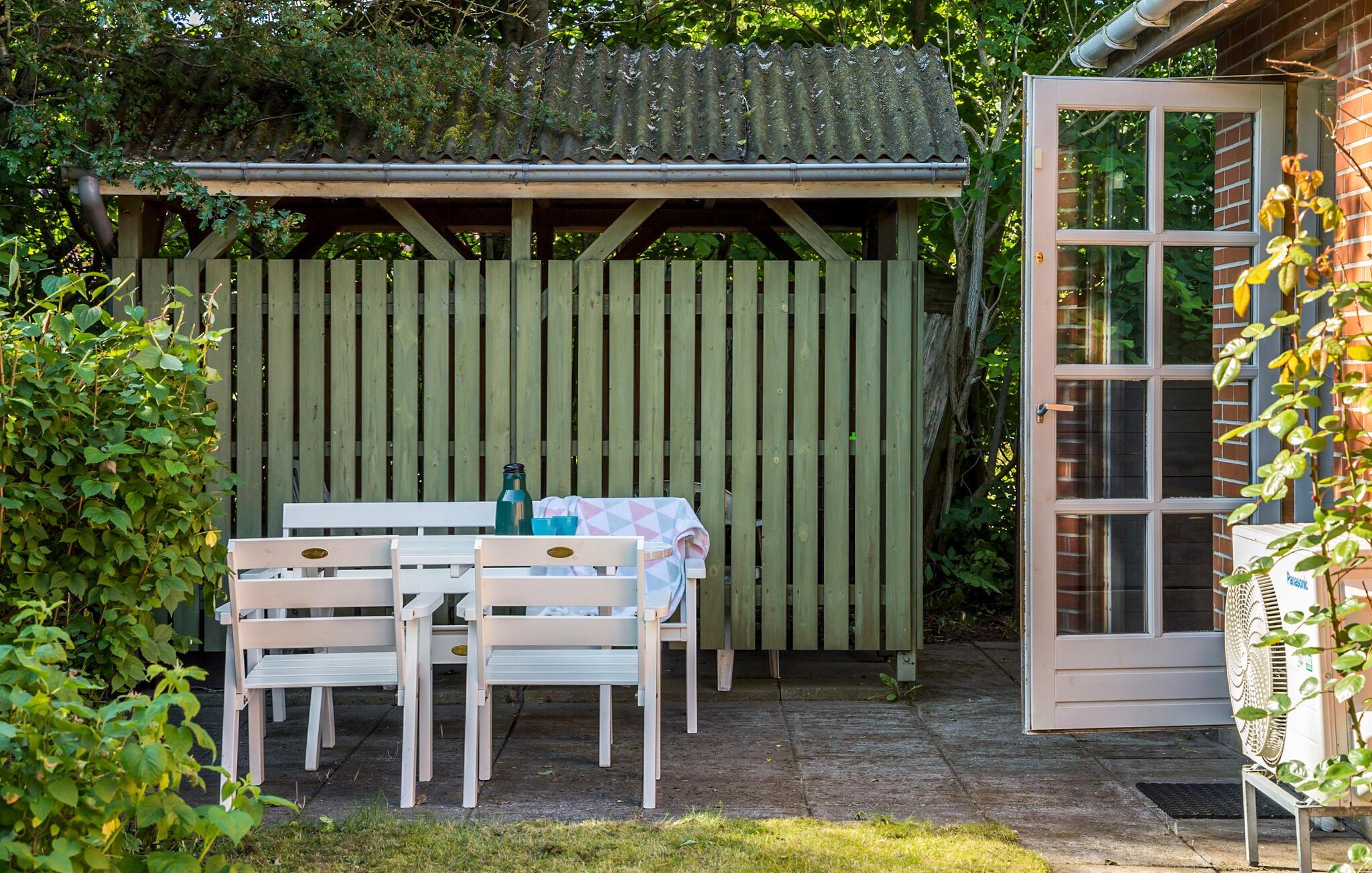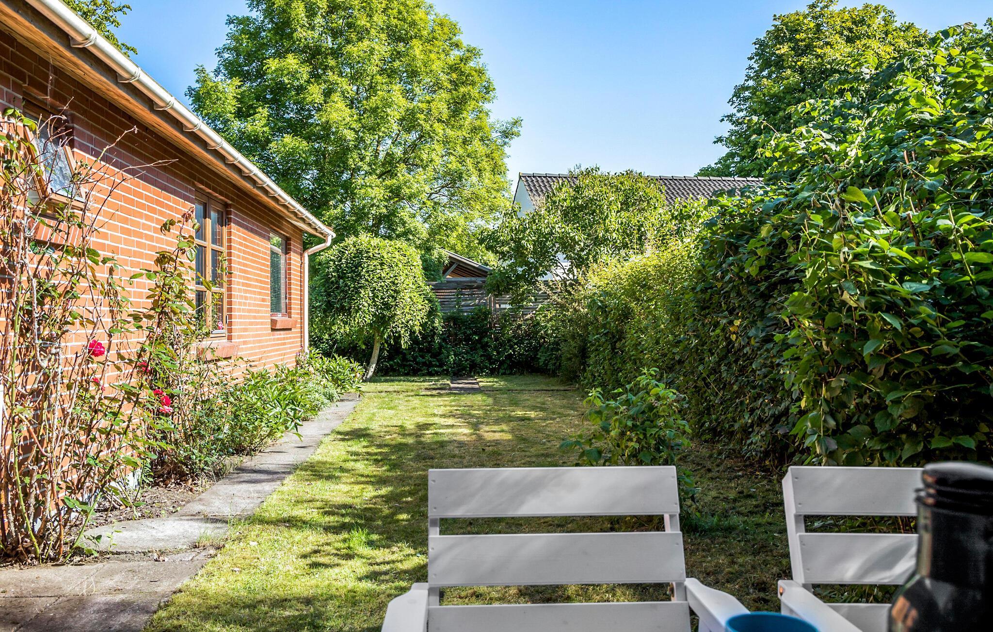 Hyggeligt feriehus ved Jerup Strand med privat have og tre terrasser til afslapning.