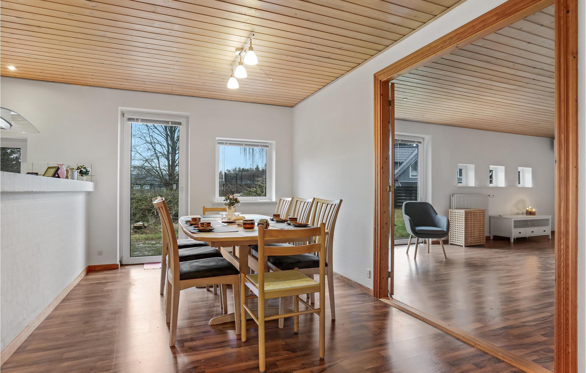 Velkommen til dette indbydende murstenshus, hvor I kan nyde en hyggelig pause sammen med familien og jeres firbenede venner. Den enkle og moderne indretning gør det nemt for jer at slappe af her og glemme alt om jeres hektiske hverdag. Nyd måltider sammen og afslappede aftener i opholdsstuen. I slutningen af en aktiv dag kan I snakke længe og lytte til den hyggelige knitren fra flammerne i brændeovnen. Træd ud af køkkenet og nyd en kop kaffe og de første solstråler på naturgrunden.