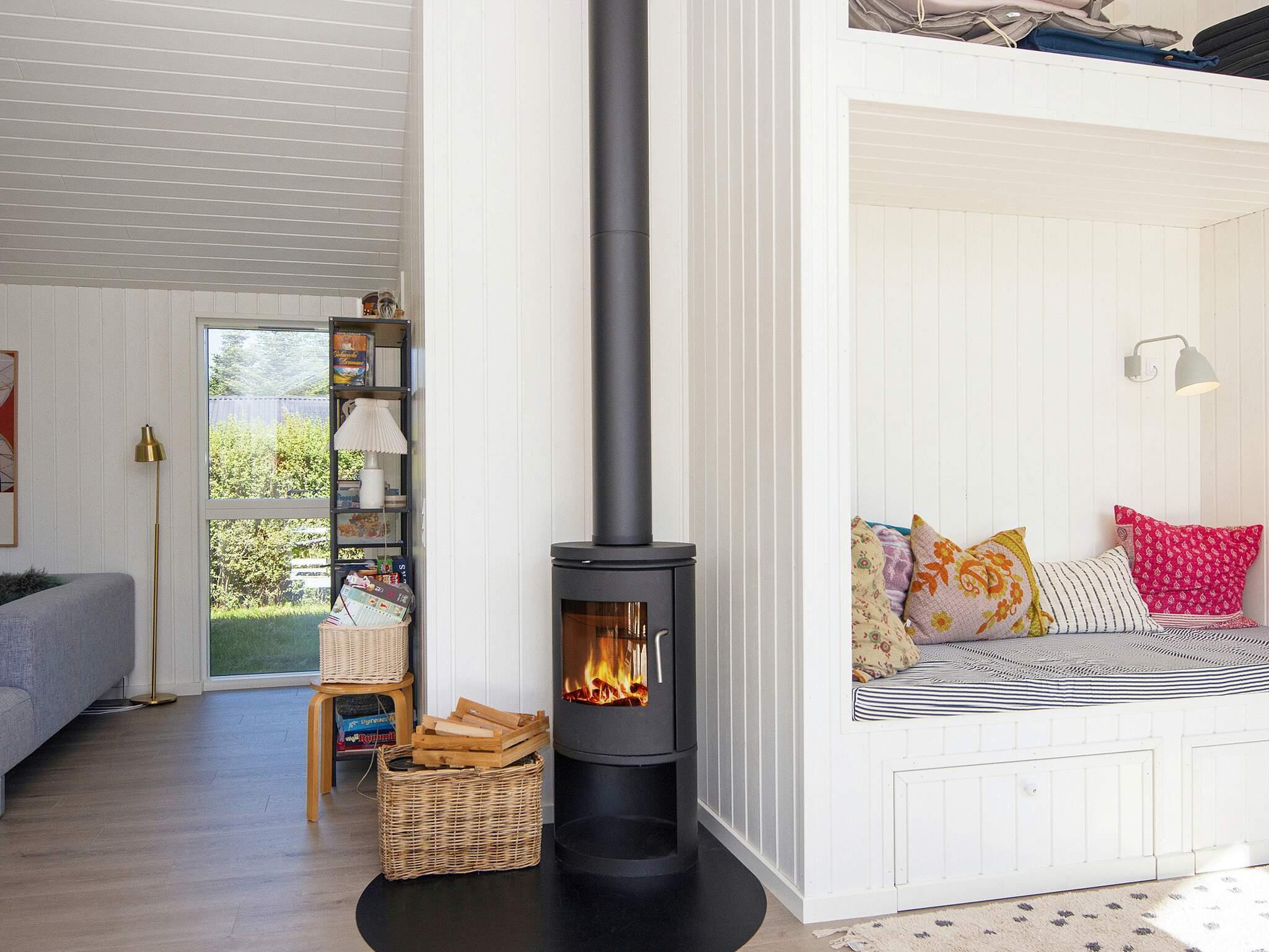 Om aftenen kan I slappe af i den hyggelige stue eller nyde den fredelige beliggenhed på den store terrasse. Terrassen er ideel til sommergrill, og når natten falder på, skaber havelygterne en charmerende og idyllisk atmosfære. Den rummelige have er perfekt til leg og afslapning, omgivet af smukke gamle æbletræer, der bidrager til feriefølelsen. Bemærk, at hvis huset er udstyret med en gasgrill, skal gæsterne medbringe deres egen gas, og hvis der er en kulgrill, skal gæsterne medbringe deres eget kul. Brænde til brændeovnen skal også medbringes.