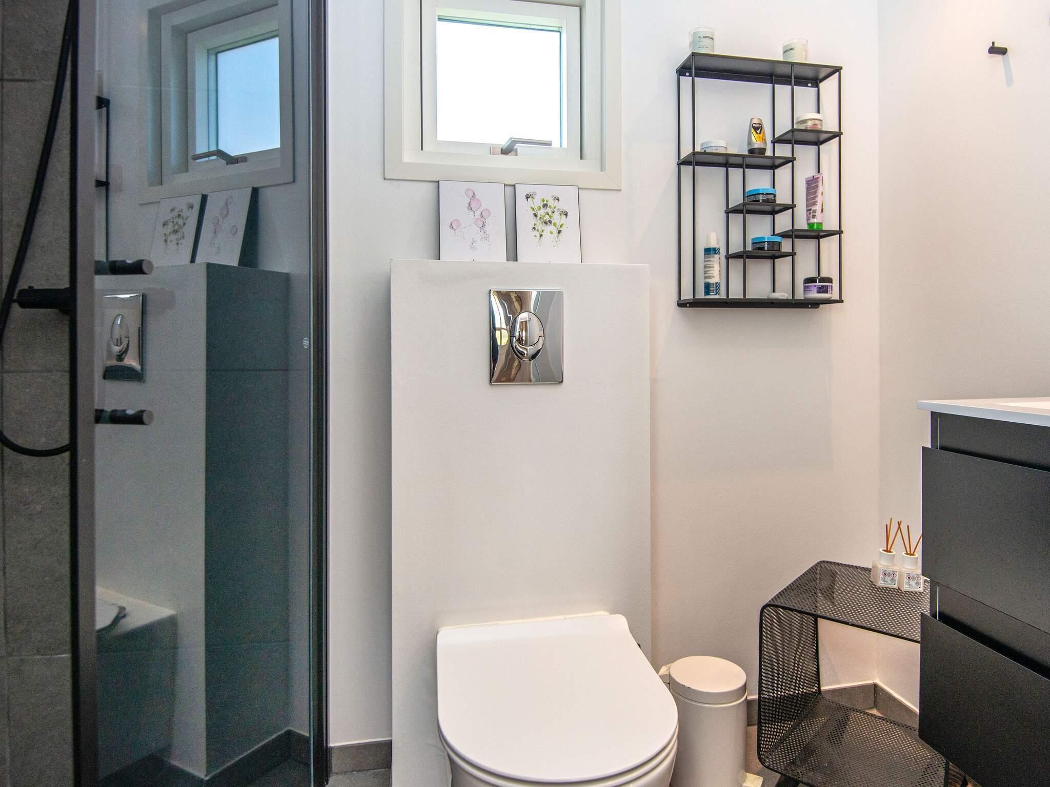 Fra stuen er der direkte adgang til en rummelig terrasse, hvor I kan nyde solen og den friske luft. Den store græsplæne inviterer til leg og aktiviteter udendørs, og terrassen er det perfekte sted til hyggelige grillaftener i godt selskab.