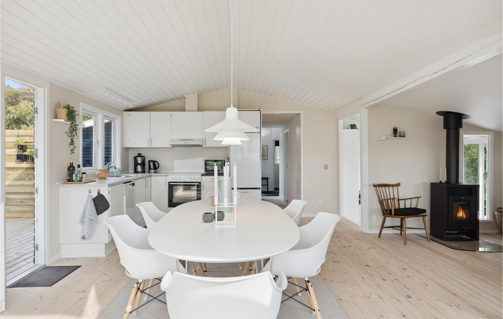 Velkommen til en fredfyldt grund tæt ved den hyggelige strand i Juelsminde. Her slår I dørene op til en lys og indbydende bolig, som emmer af feriestemning og gode indretningsløsninger. Efter en lang dag med strandliv og udflugter er det skønt at vende hjem til husets hjemlige rammer og samles om madlavningen i køkkenet, dække op til måltiderne eller sætte sig med hver sin bog i stuen, mens ilden knitrer hyggeligt i brændeovnen.