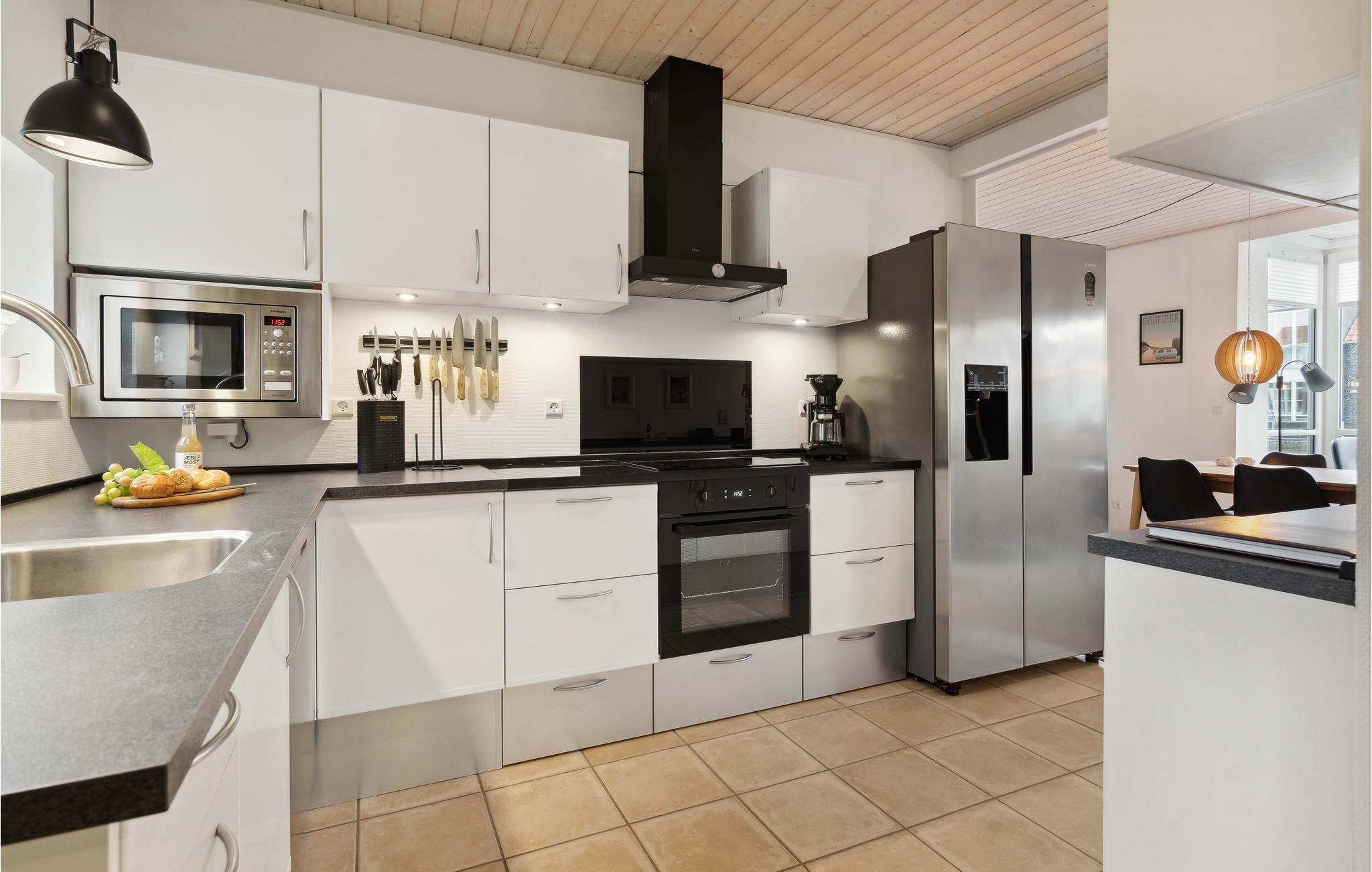 Særligt børnefamilier vil finde mange fordele ved dette hus. Udover de gode faciliteter byder huset på flere hyggekroge. Hvad med at slå jer ned i en af karnappens lænestole med en god roman? Eller hvad med et slag kort i en af sofaerne? Husets rum, der fordeler sig på to plan, er smagfuldt indrettede, og I får havudsigt fra både stueetage og første sal. Træd ud på den åbne terrasse om morgenen, hvor I kan tilbringe afslappende timer sammen, indtage dagens måltider og drikke eftermiddagskaffen.