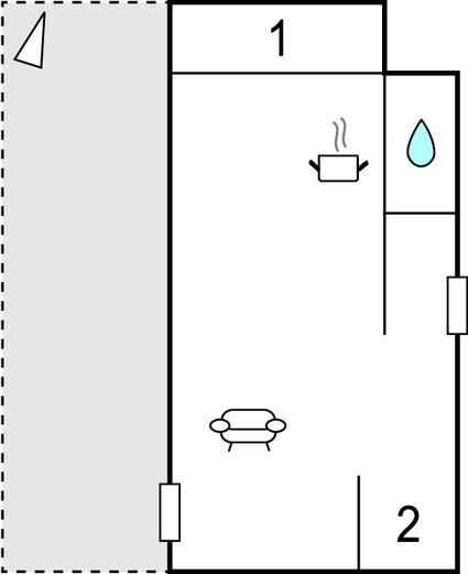 Opholdsstue/køkken - 2 Sovepladser. (Sofa, madras eller lignende).