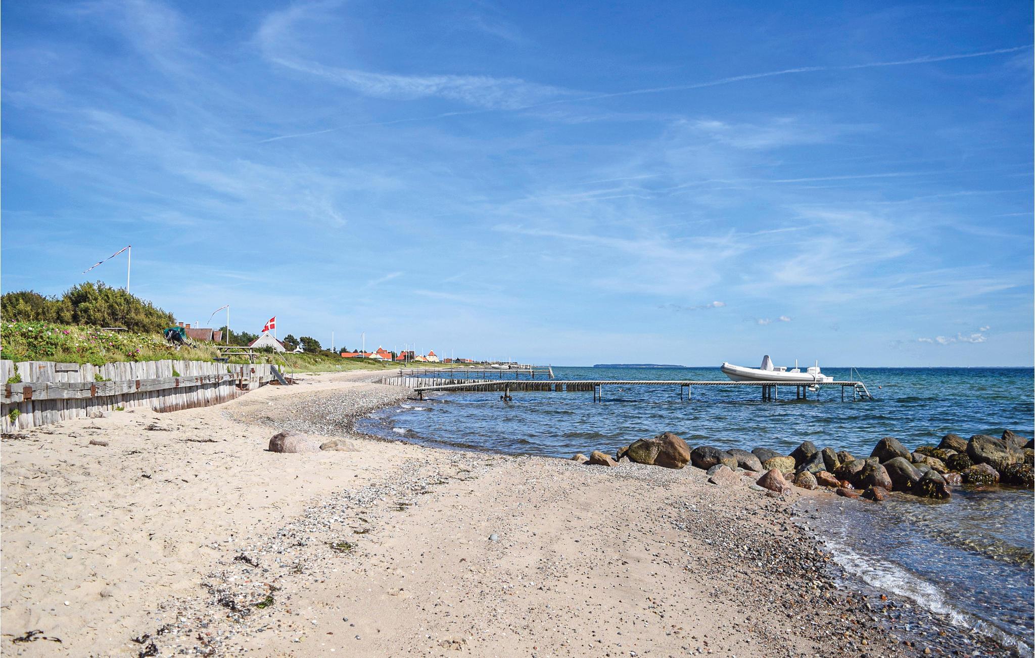 At sidde på terrassen blot få meter fra havet med et køligt glas vin og bare nyde det, er en feriedrøm, der kan blive jeres. Sommerhuset er hyggeligt indrettet, og ligger få meter fra egen strand med sti direkte derned. Børn eller børnebørn vil nyde at kunne lege i sandet, mens I alle hygger med at bygge det største sandslot. Fra den store stue kan I nyde panoramaudsigten, og via et par trin står I i spisestuen, hvorfra der er udgang til den gode terrasse. Huset indeholder desuden tre gode soveværelser og et pænt badeværelse, køkkenet er fuldt udstyret. Der er kun 10 minutters gang til charmerende Juelsminde. Der er mange gode oplevelser i området, så alle kan få ferieønskerne opfyldt: shopping i Horsens på Danmarks bredeste gågade, museer med mulighed for at tilegne sig viden om "gamle dage", besøg det lille Glud Museum eller Industrimuseet i Horsens eller måske en tur i Fængslet til en god koncert? Børnene vil helt sikkert sætte pris på en dag i Legoland, som kun ligger 45 minutters kørsel væk.