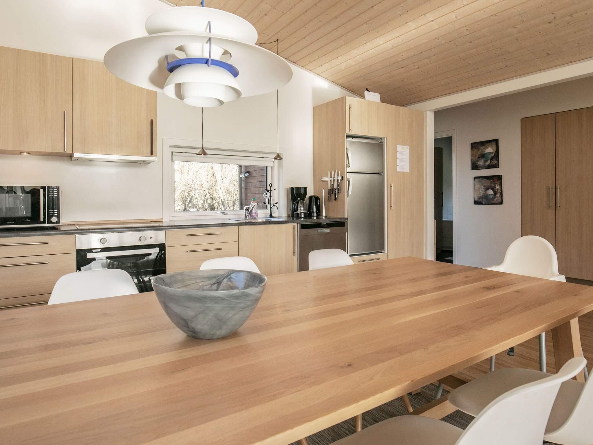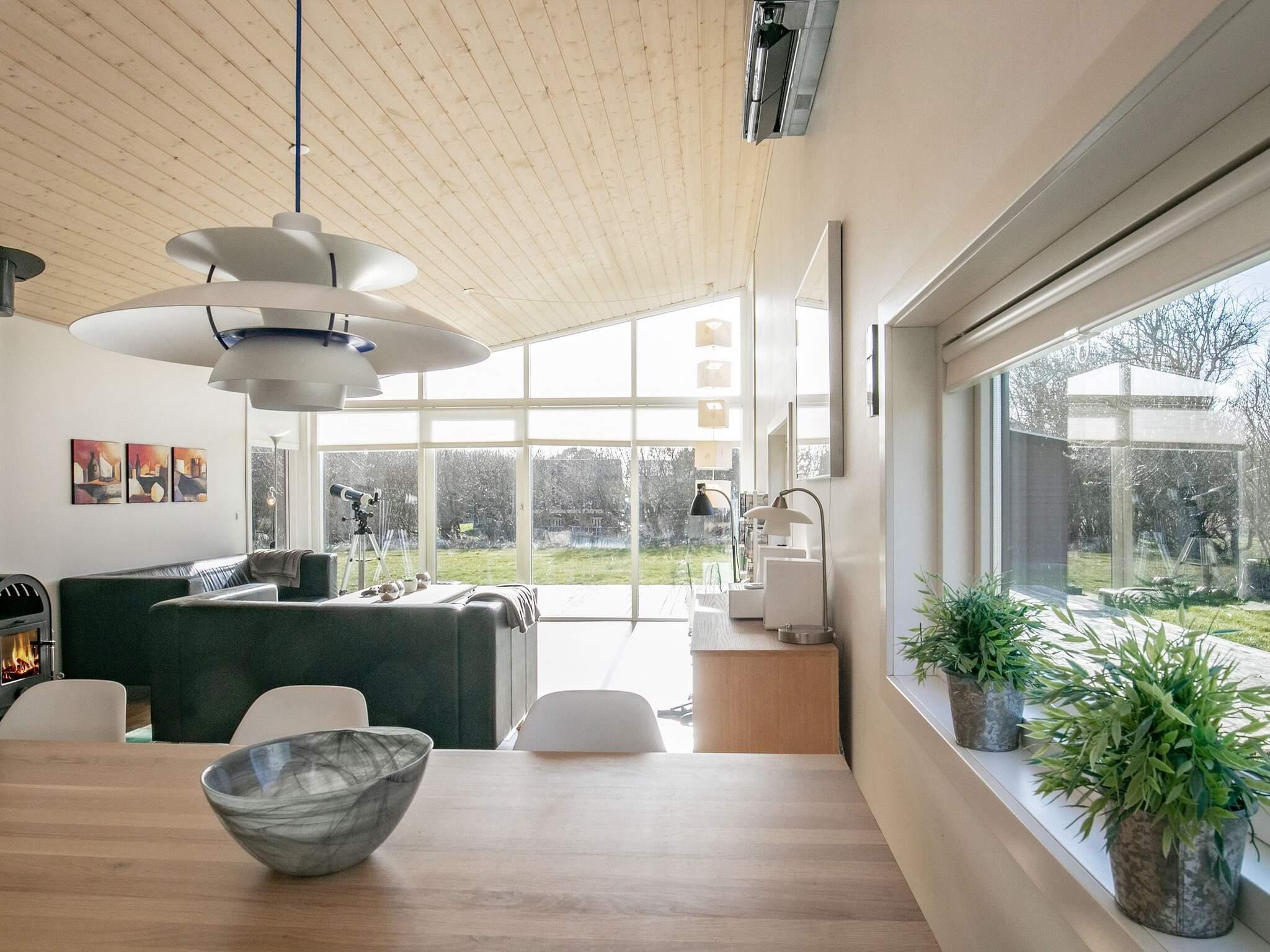 Der er tre store soverum, to med dobbeltsenge samt et med to enkeltsenge, og der er god skabsplads i alle soverum. Der er både barnestol og barneseng til de små feriegæster. Stor lys og kombineret opholds/spisestue og køkken bl.a. udstyret med opvaskemaskine, køle/frys og keramiske kogeplader. Stort, lyst opholdsrum med direkte udgang til den store, åbne terrasse. Sommerhuset er endvidere udstyret med Wi-Fi, tv, dvd-afspiller samt stereoanlæg med cd-afspiller. Badeværelse med spabad til 2 personer samt gulvvarme og bruseniche. Der er både vaskemaskine og tørretumbler. Stor, åben terrasse med havemøbler af god kvalitet samt en havegrill.