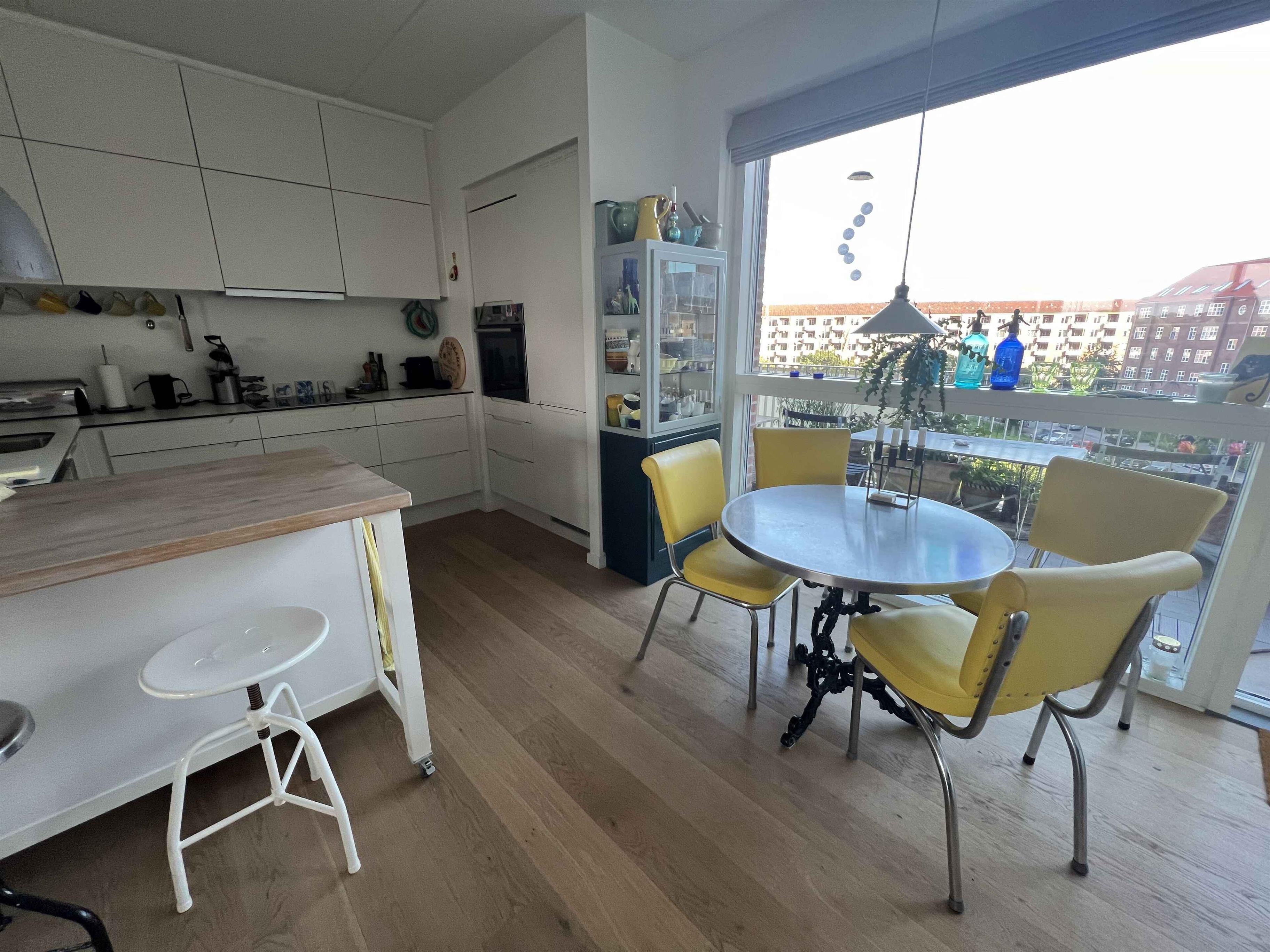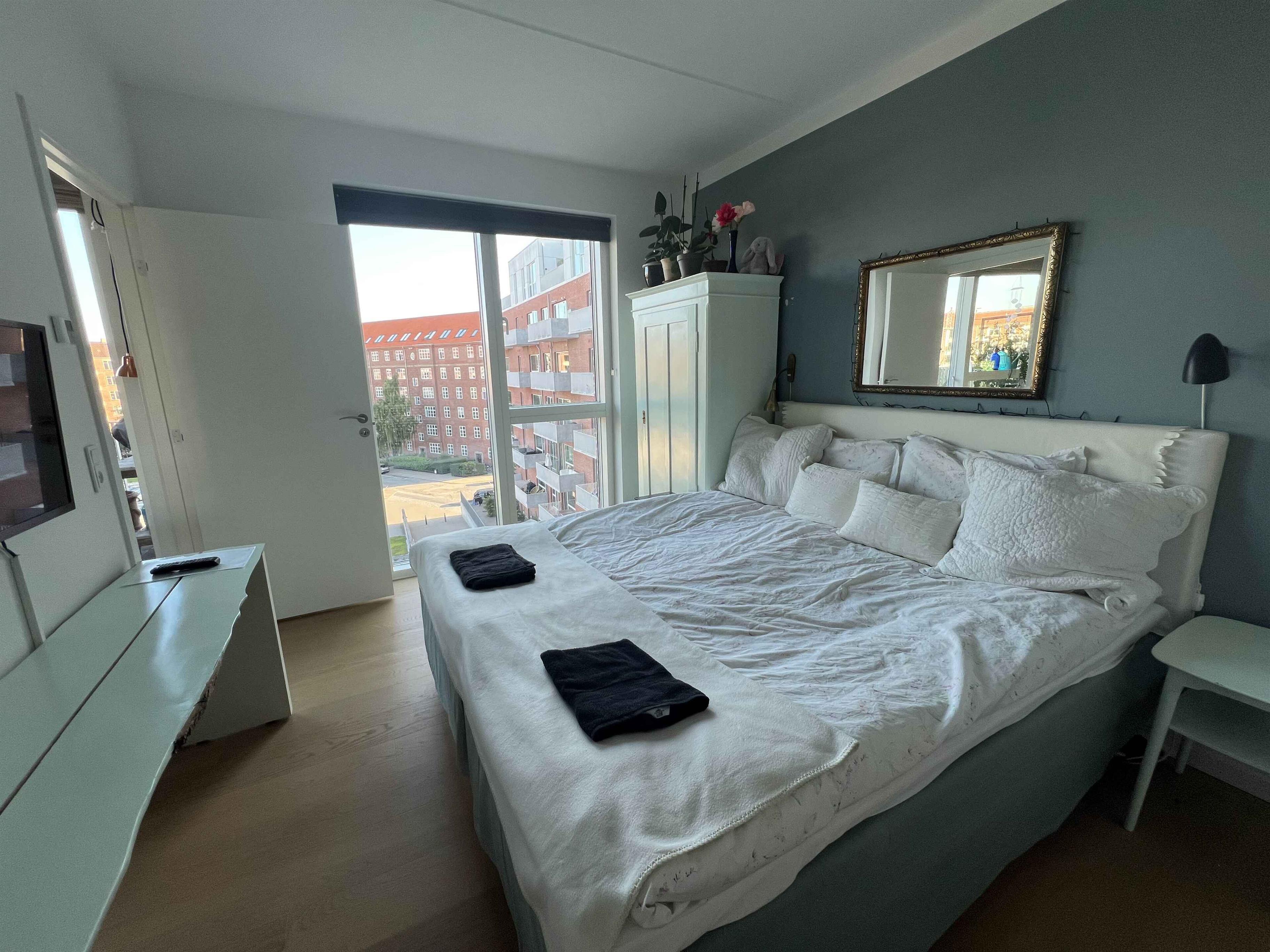 Sommerhusbeskrivelse: Lækker Lys New Yorker-Agig Bolig Oplev en fantastisk ferie i denne lyse og lækre New Yorker-agtige bolig på 120 m² beliggende på 4. sal med elevatoradgang. Denne moderne lejlighed, som kun er 7 år gammel, byder på to pæne soveværelser, placeret i hver sin ende af lejligheden for optimal privatliv. Det store fællesareal/køkken alrum, badeværelse med bruser og en stue danner rammerne for en afslappende og komfortabel ferieoplevelse. Lejligheden er udstyret med lydsvage vinduer fra gulv til loft, der skaber et smukt lysindfald og sikrer ro og fred. Med gulvvarme og ventilationsanlæg er boligen også astmavenlig og handicapvenlig uden dørtrin. Du vil nyde en uovertruffen udsigt over byens tårne og grønne arealer, inklusive voldgraven, fra de to store altaner, der er placeret på hver sin side af lejligheden. Her er der mulighed for at sidde udenfor og nyde solen det meste af dagen. Lejligheden har en god komfort og en central beliggenhed med privat legeplads i haven, omgivet af blomster i rolige og beskyttede omgivelser. Perfekt til familier eller par, der ønsker at nyde både byens liv og rolige, grønne områder. Oplev skønne solnedgange og det verdenskendte fyrværkeri fra Tivoli, som kan nydes direkte fra lejligheden. Der er mulighed for at ryge på altanen, hvilket gør det nemt for rygere at opholde sig her uden at genere andre. Linnedpakker, sæbe og toiletpapir er inkluderet i prisen, ligesom el og vand. Du behøver altså ikke bekymre dig om ekstra omkostninger under dit ophold. Book denne skønne lejlighed nu og få en uforglemmelig ferie i hjertet af byen!
