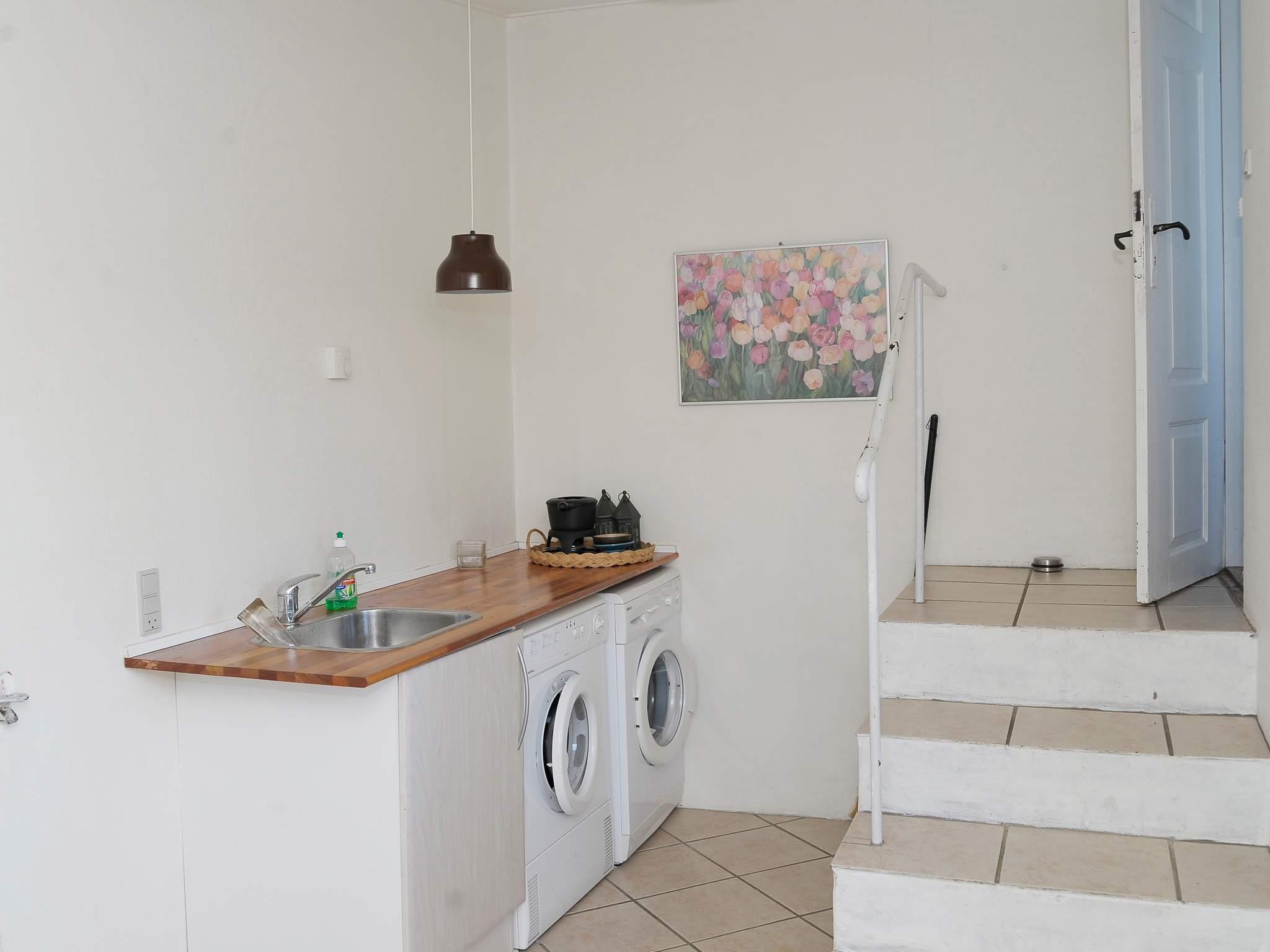 Køkken: El-komfur, køleskab m/frostboks, mikroovn, emhætte, kaffemaskine, opvaskemask., vaskemask., tørretumbler