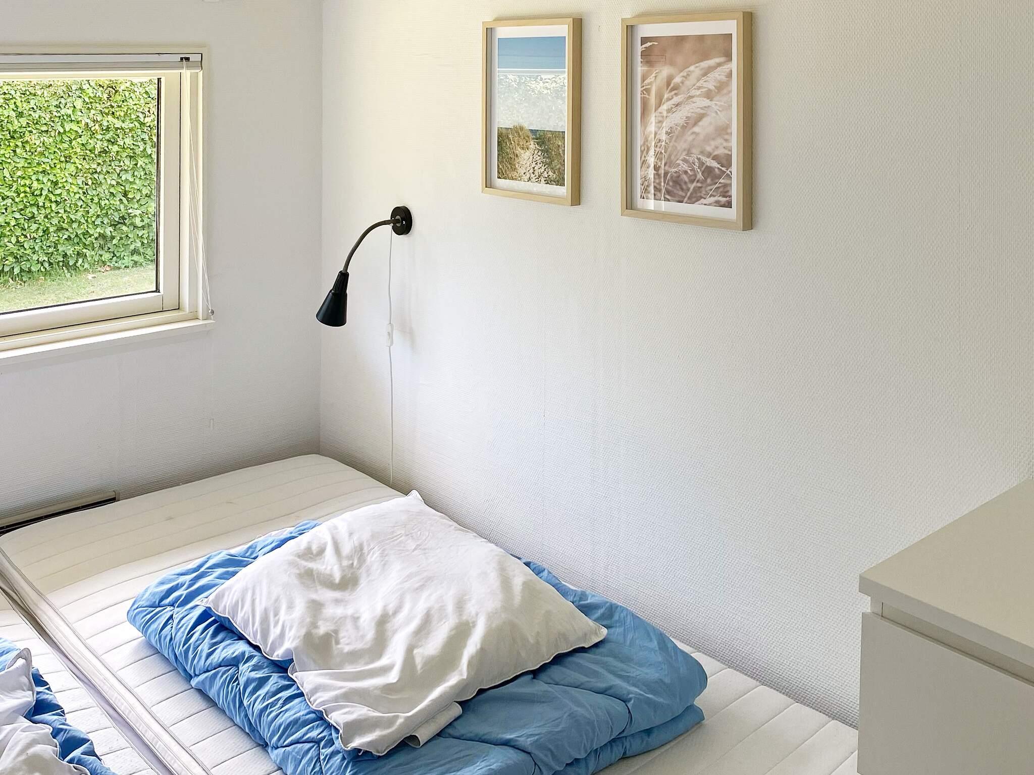 Der er i alt tre soveværelser med to dobbeltsenge og en enkeltseng. Badeværelse med bruser.