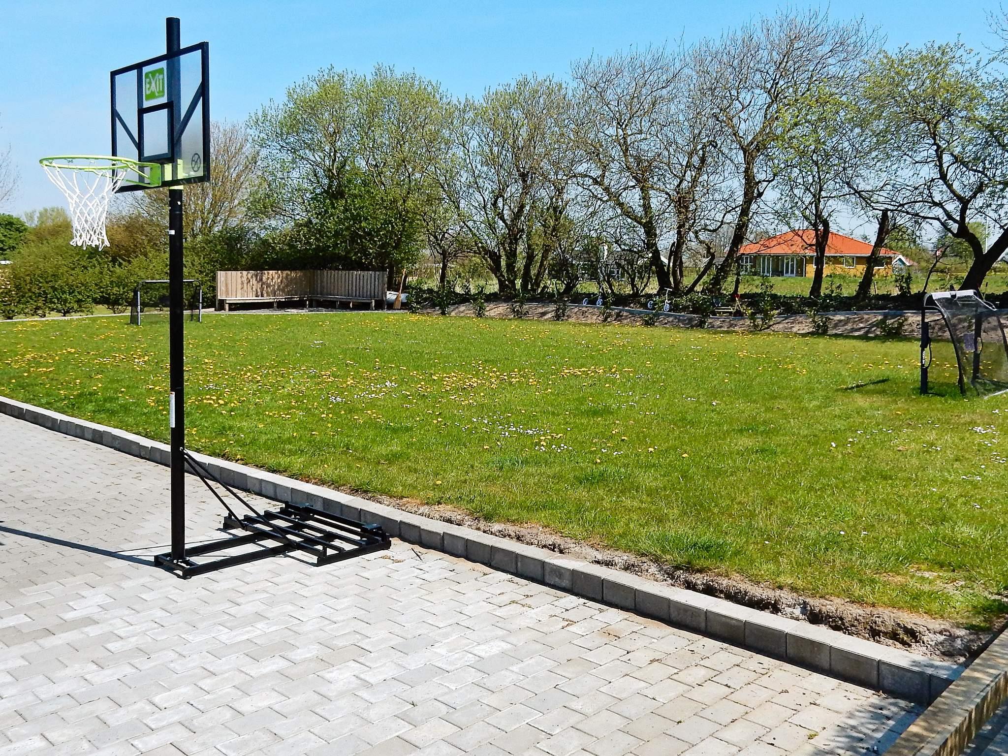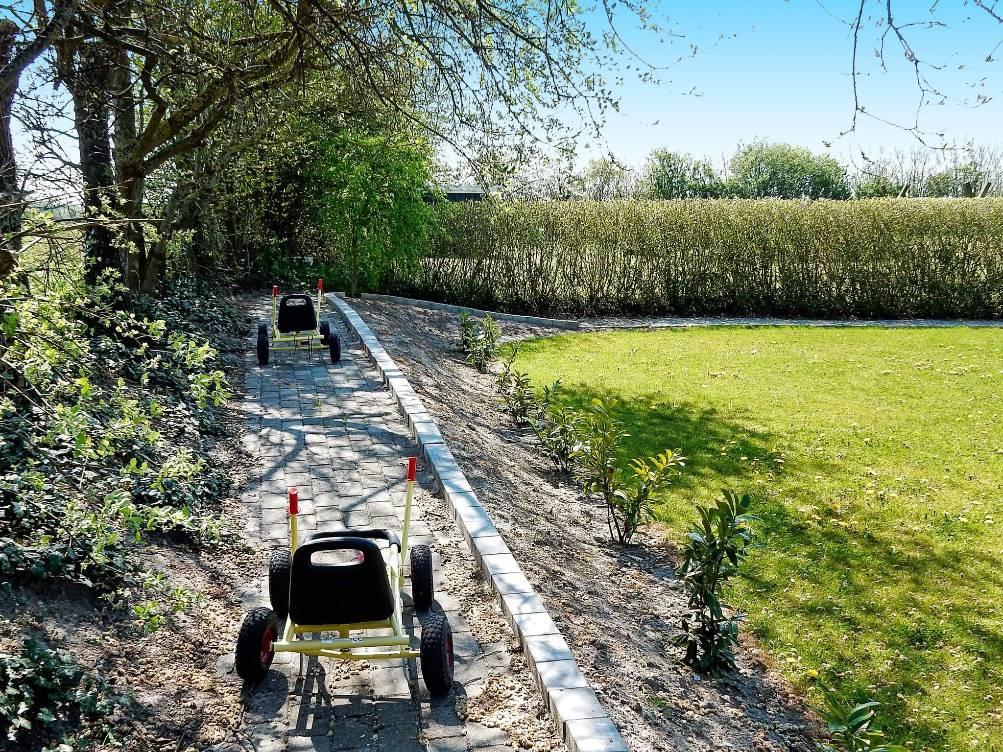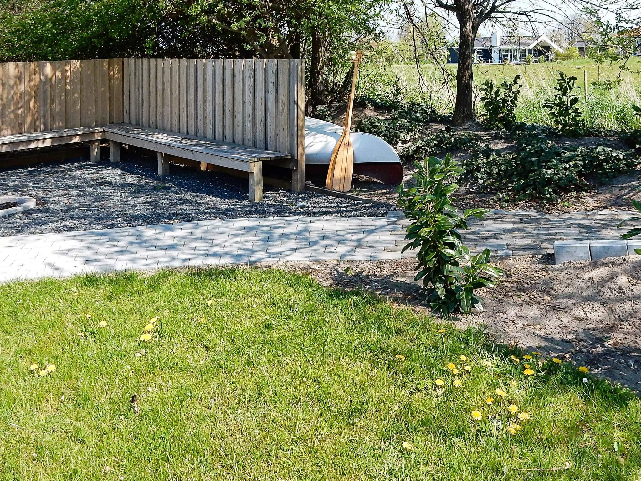 På den store grund er der opstillet gynger og sandkasse til børnene. Bålplads til hygge på de lune sommeraftener.