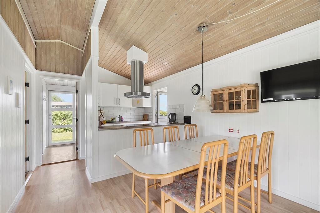 Særdeles hyggeligt og velholdt feriehus beliggende på havegrund med græsplæne i sommerhusområdet Købingsmark. Huset er beregnet til 6 personer fordelt på 3 værelser. Meget hyggelig stue i åben forbindelse med det ældre køkken og et badeværelse med bruser, fliser på gulv og vægge. Der er trægulve i hele huset, og fra stuen er der udgang til den delvist overdækkede terrasse og til haven.