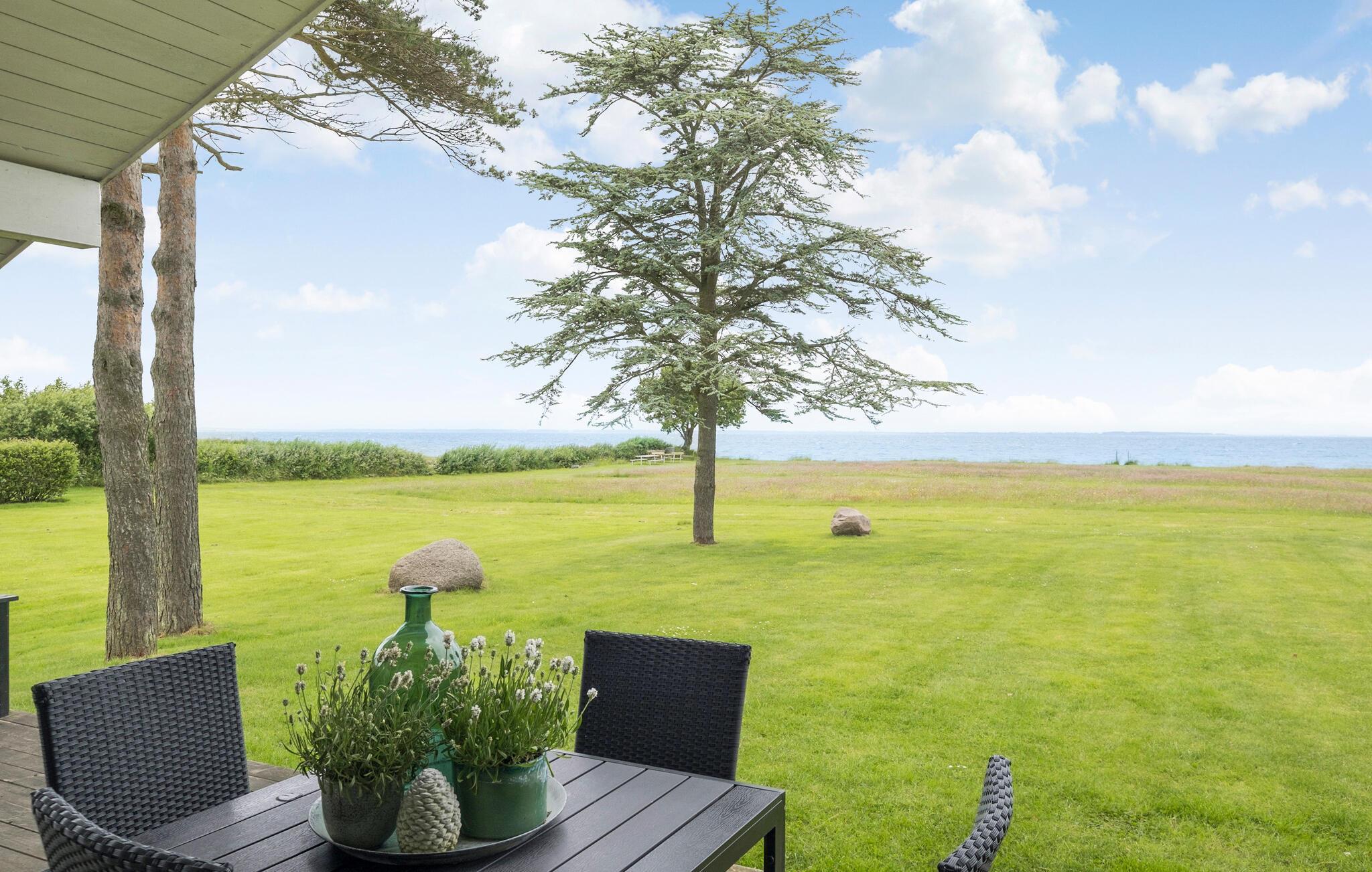 Fra huset og terrassen har I en fantastisk panoramaudsigt over Lillebælts blide bølger. I det fjerne kan I se Fyn. Jeres hus ligger kun få meter fra en af øens bedste badestrande. Foran huset er der et stort grønt område, der byder på masser af plads til leg og boldspil for både store og små feriegæster. Besøg også Universe Science Park, der ligger tæt på jeres hus. Her kan I gå på sjove opdagelser i naturvidenskabens og teknologiens verden.