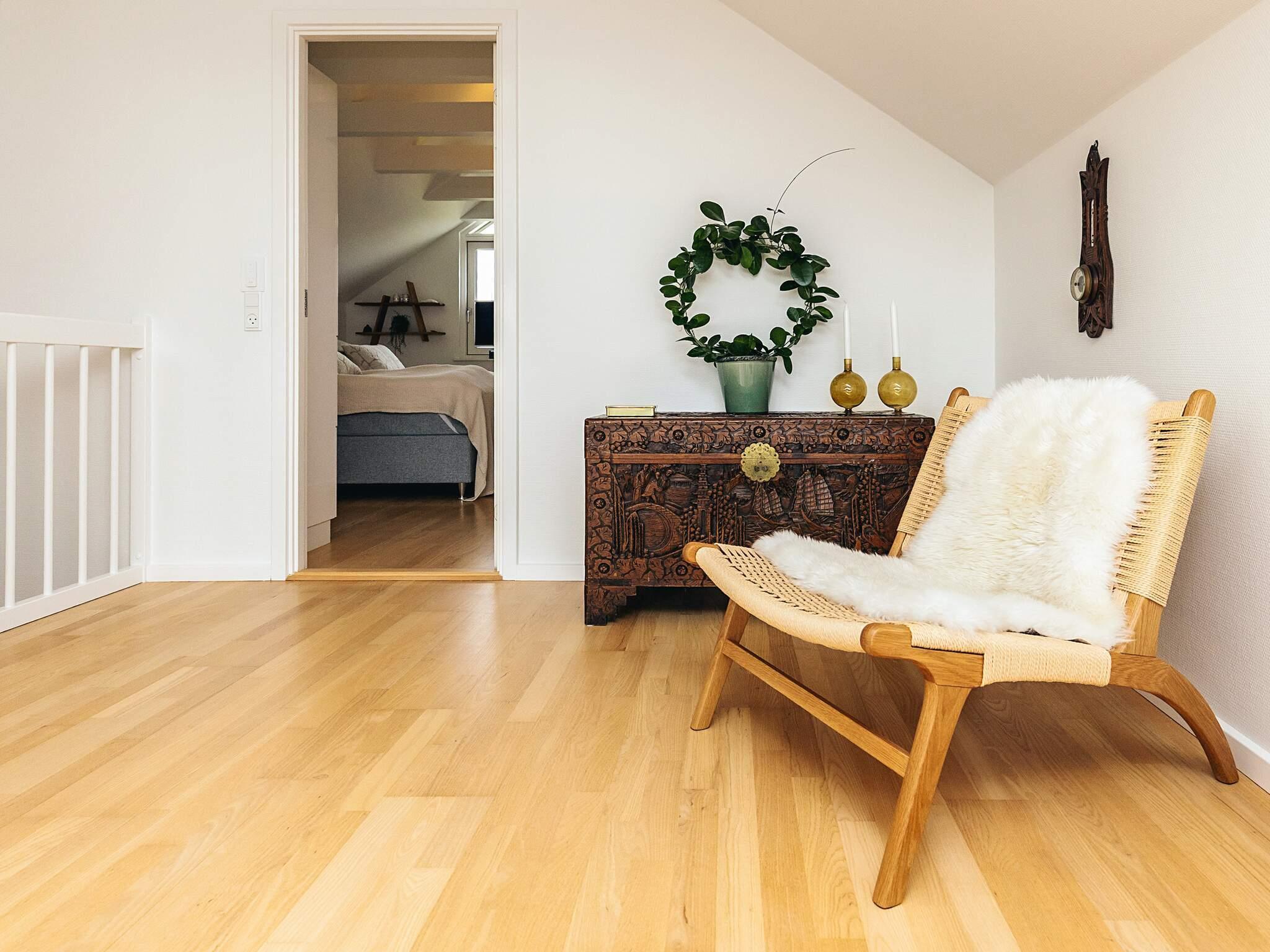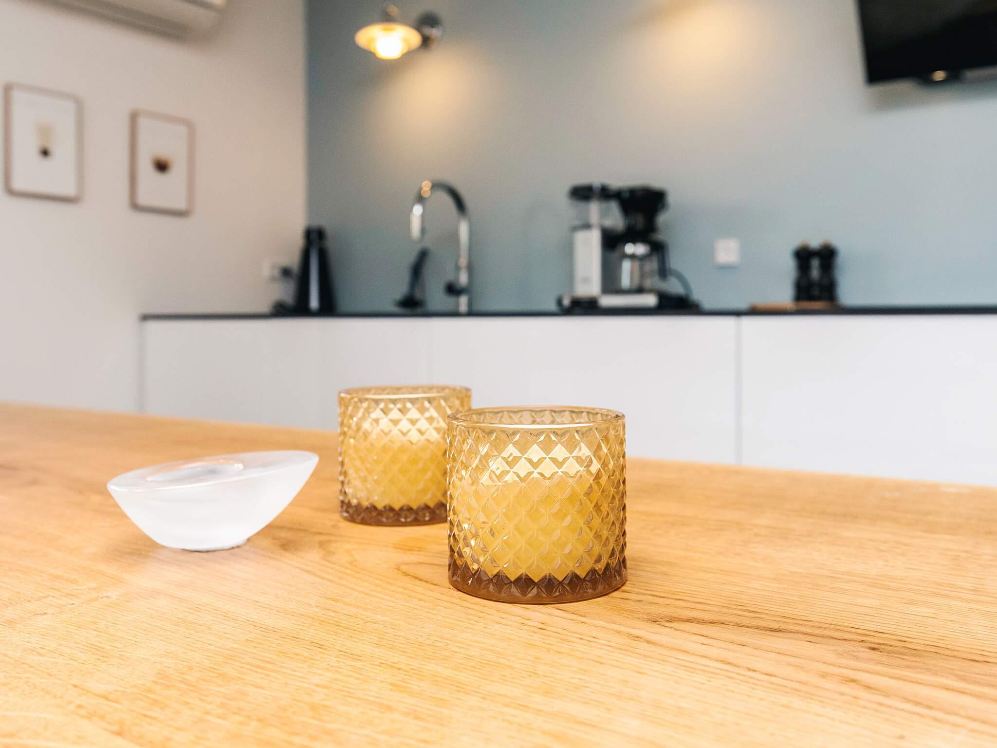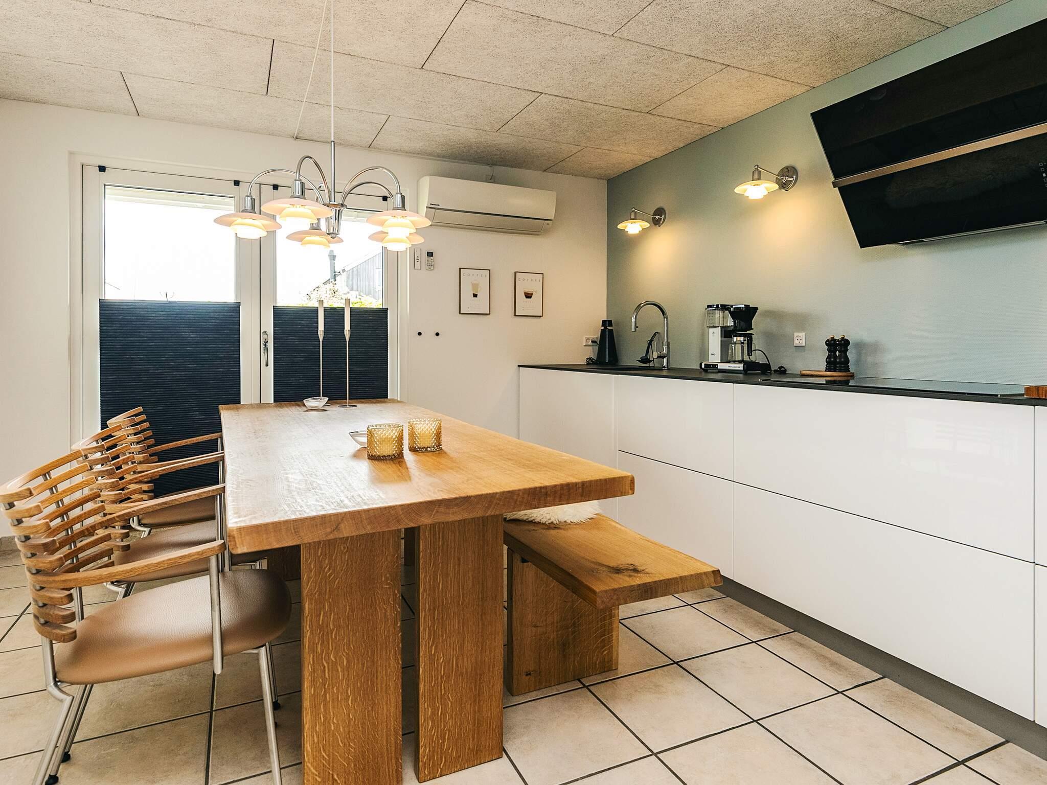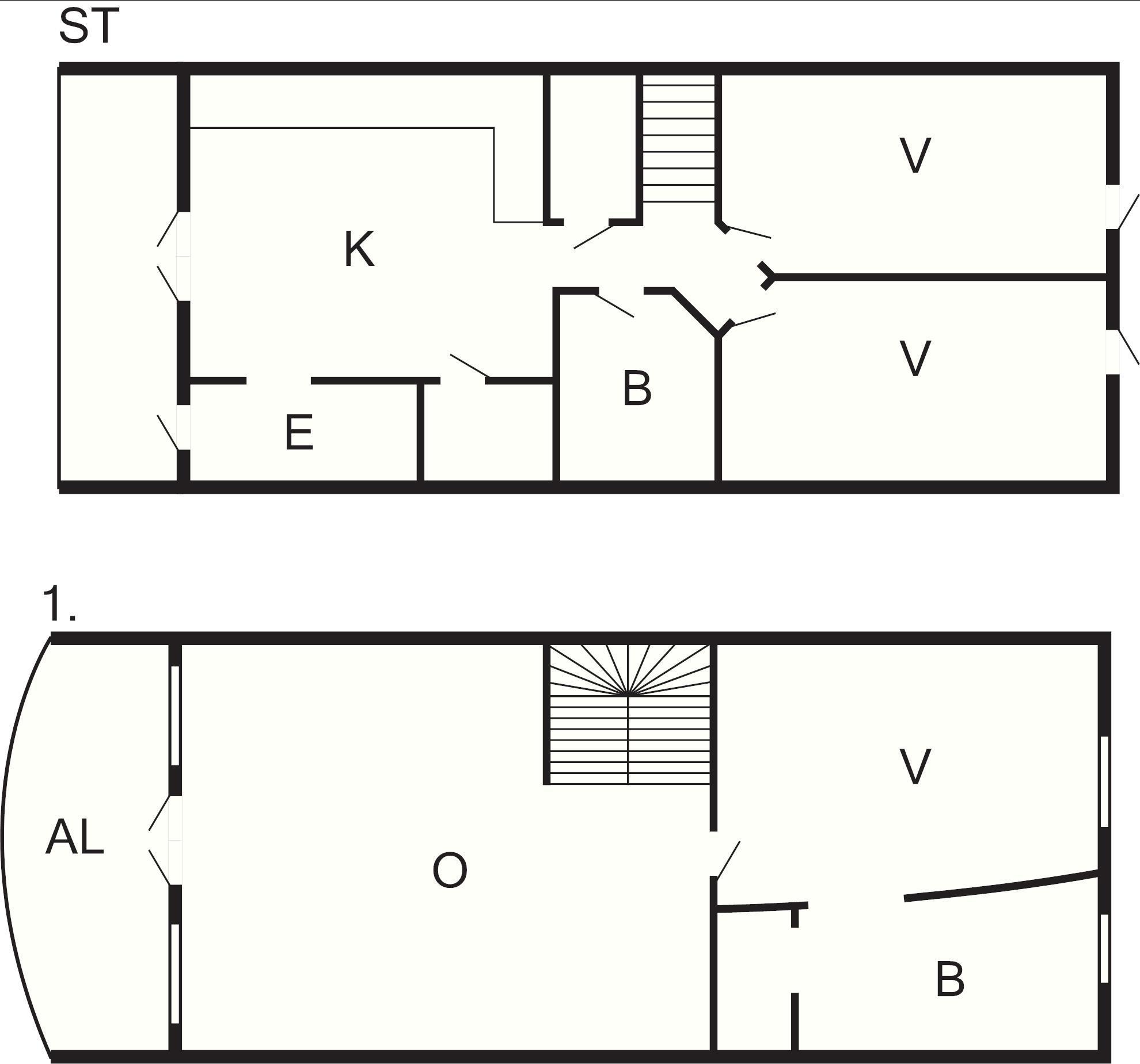 Stueetagen består foruden køkken og bad af to regulære værelser det ene med dobbeltseng og det andet med sovesofa, mens førstesalen byder på fritlagte bjælker, en stue, endnu et værelse med dobbeltseng og et badeværelse. Der er således rig mulighed for at tage hertil som familie eller to hold venner.