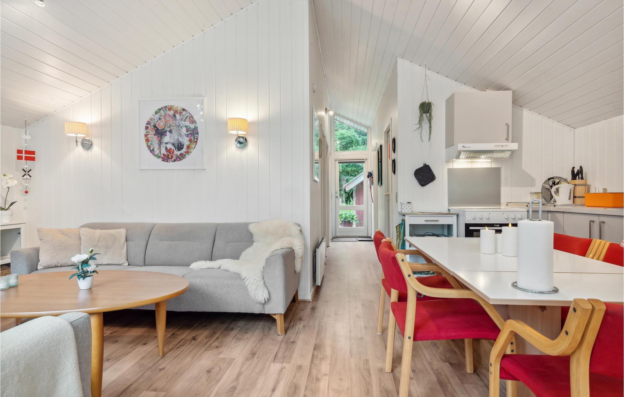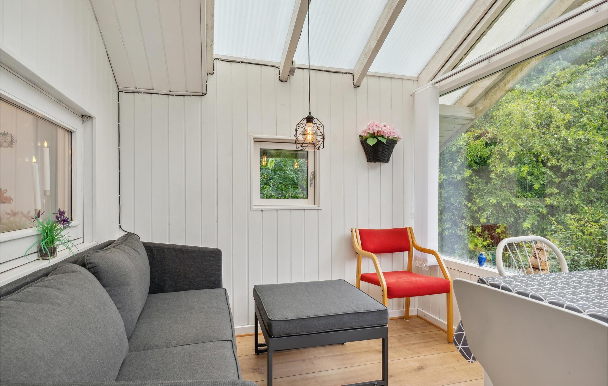 Hyggeligt feriehus i rolige Kølkær nær Herning med åben stue og køkken, udestue, terrasse og delvist lukket have.