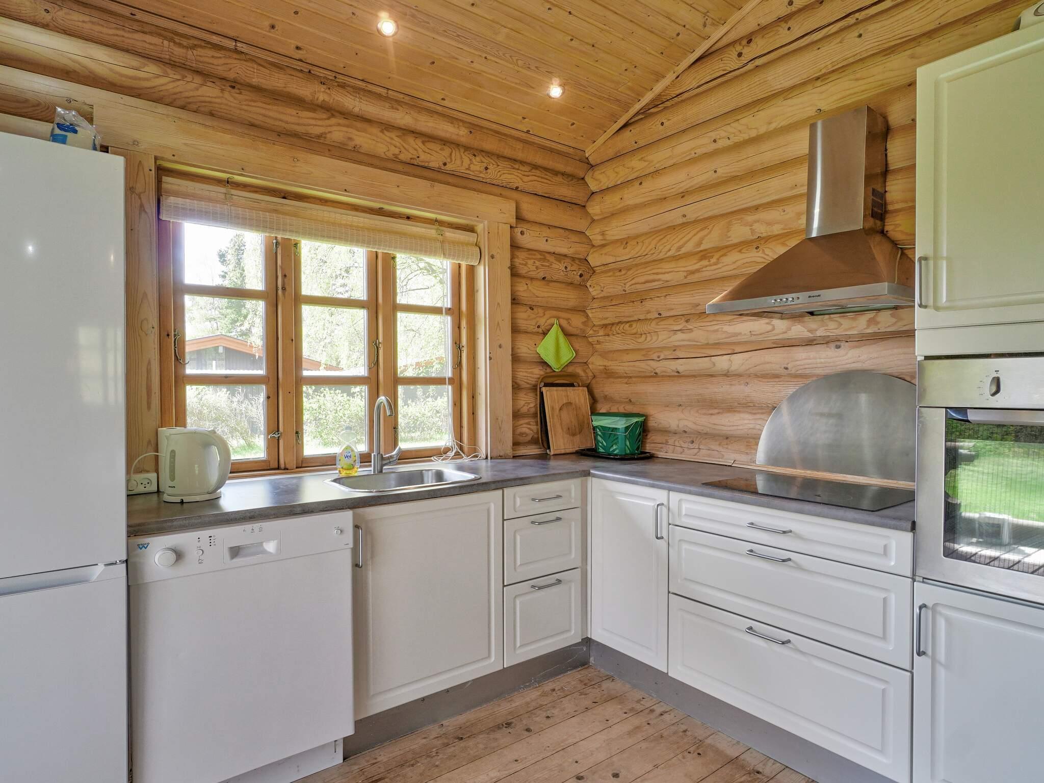 Charmerende bjælkehytte beliggende for enden af en stille, lukket vej i det fredelige Kaldred-område. Huset har et soveværelse med en dobbeltseng, et med to enkeltsenge og en 25 m² stor hems med to ekstra sovepladser, der er tilgængelige via en trappe fra stuen - ideelt til familier eller små grupper.