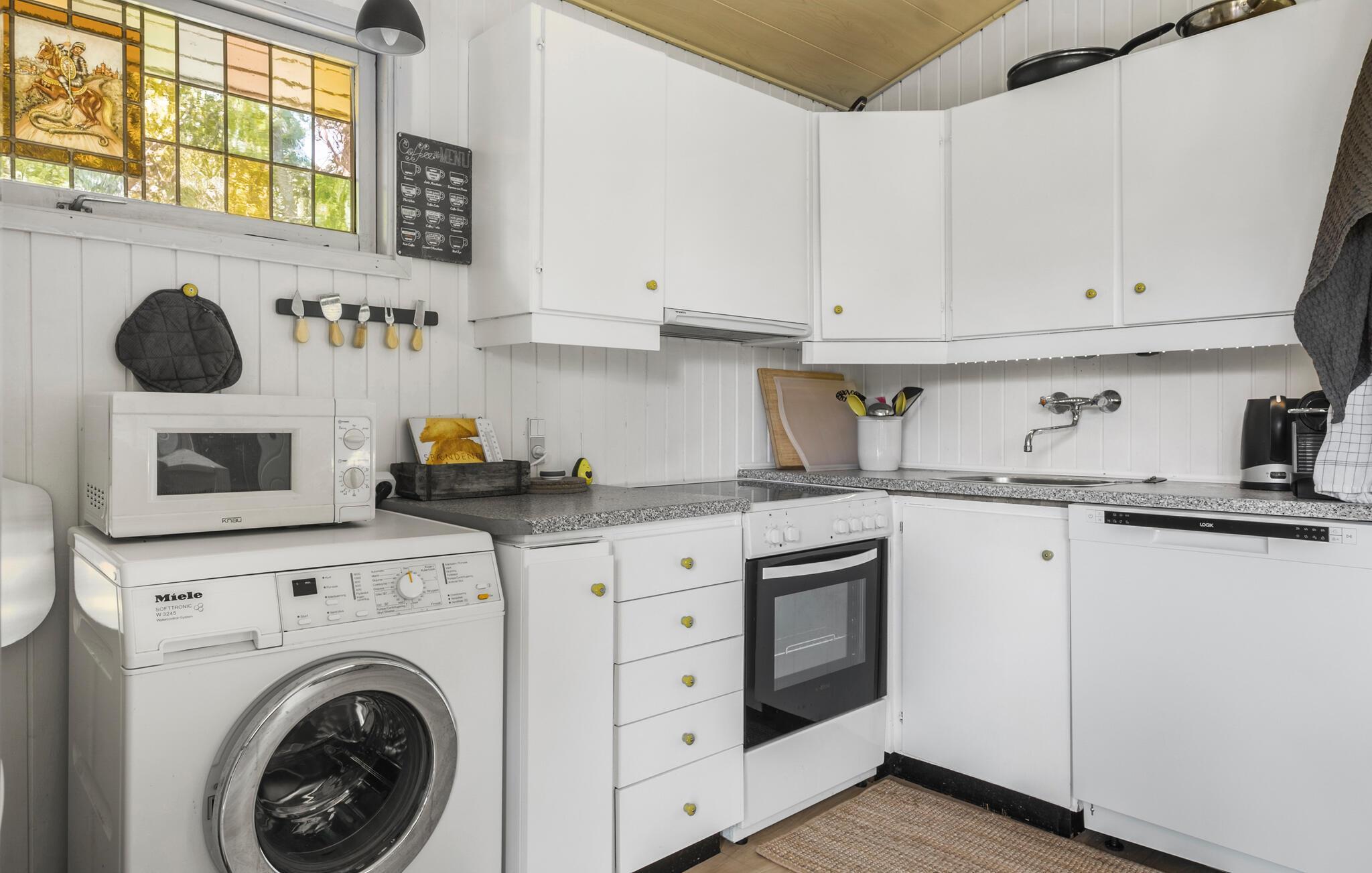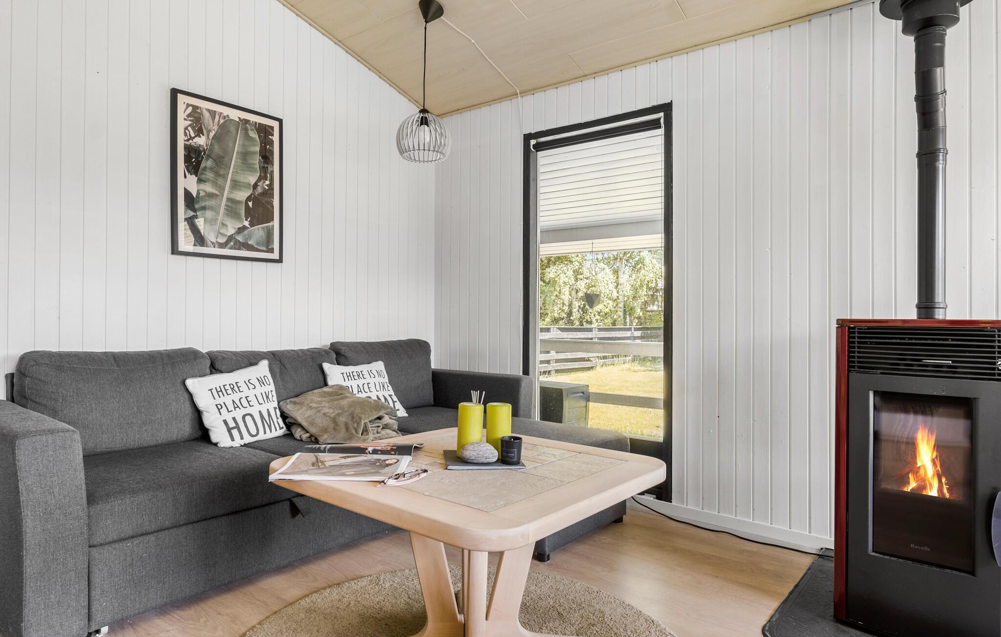 Tag den lille familie under armen og rejs til Vestsjælland, hvor I lidt øst for Kalundborg finder denne charmerende perle af et feriehus. I bor her i fredelige omgivelser, og huset nydeligt indrettet med velholdte træpaneler, gode møbler og en brændeovn, der giver varme og stemning, hvis vejret skulle bide lidt fra sig. Stuen får dejlige lysindfald gennem de store vinduespartier, køkkenet er ganske veludstyret, så gør blot madlavningen til et sjovt fællesprojekt, inden der dækkes op til en hyggelig aftensmad med udsigt til det grønne.
