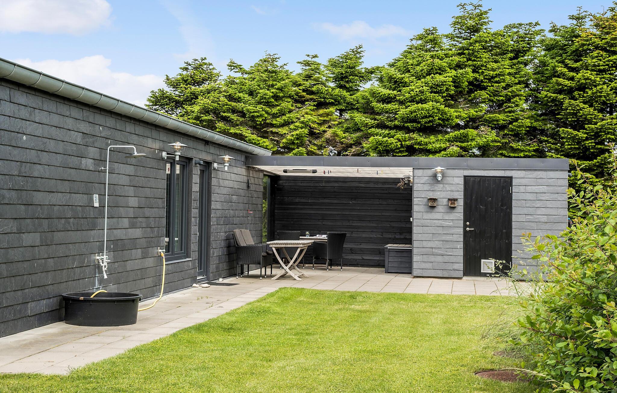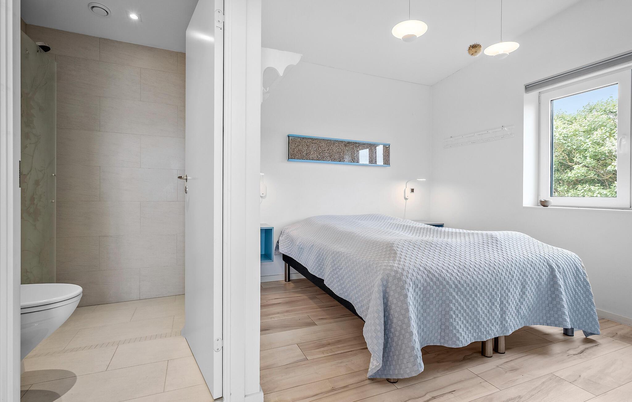 Fredelig natur, havudsigt og masser af komfort er, hvad der venter jer i dette ekstraordinært dejlige feriehus ved Svallerup Strand. Omgivelserne er grønne og afsondrede, og indvendigt emmer det af kvalitet, gennemtænkte indretningsløsninger og moderne bekvemmeligheder over hele linjen. Hvert soveværelse har eget badeværelse, så I her kan rejse som større flok, uden at skulle give køb på hverken privatlivet eller den gode komfort. I hjertet af huset er der et wellnessområde med et stort spabad og sauna, så I kan forkæle krop og sind og nyde udsigten over de brede vidder gennem panoramavinduet. Tag jer god tid til at kræse om livretterne i det fuldt udstyrede køkken og rund aftenen af i stuen med et glas vin og en vidunderlig udsigt, mens I lægger planer for de kommende dage.