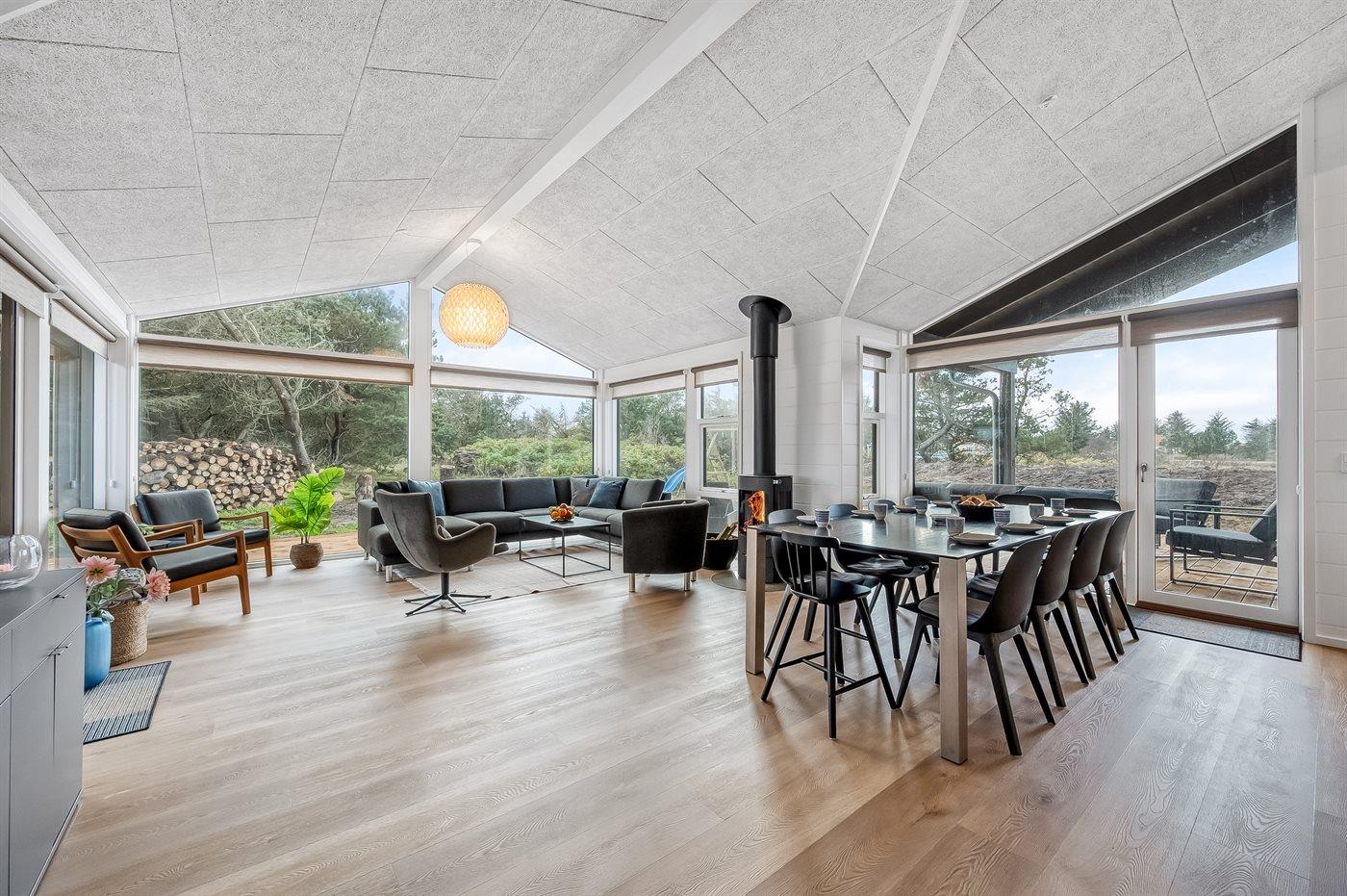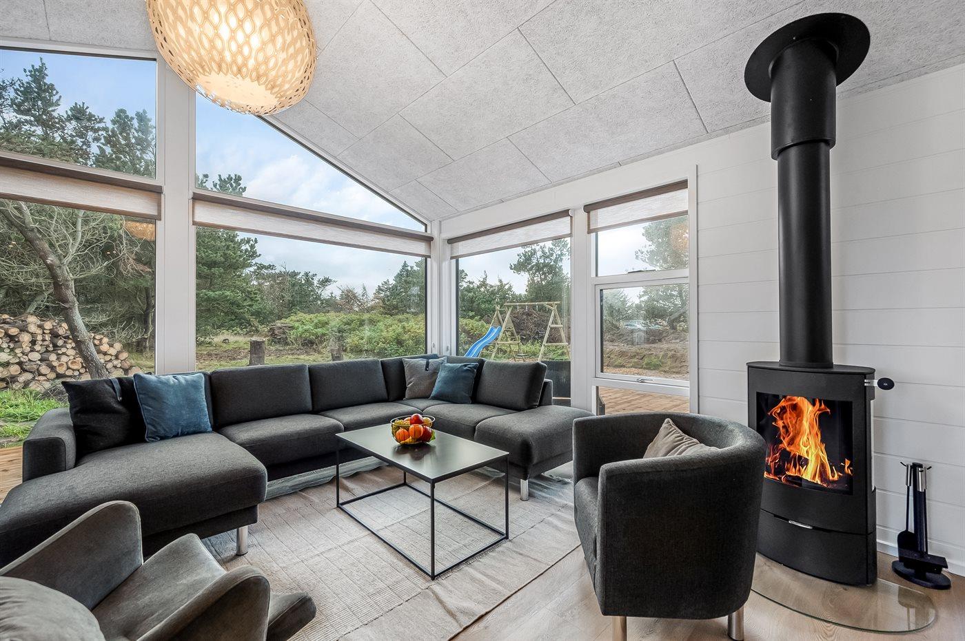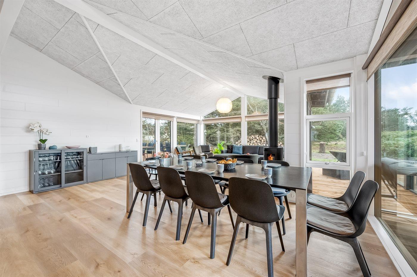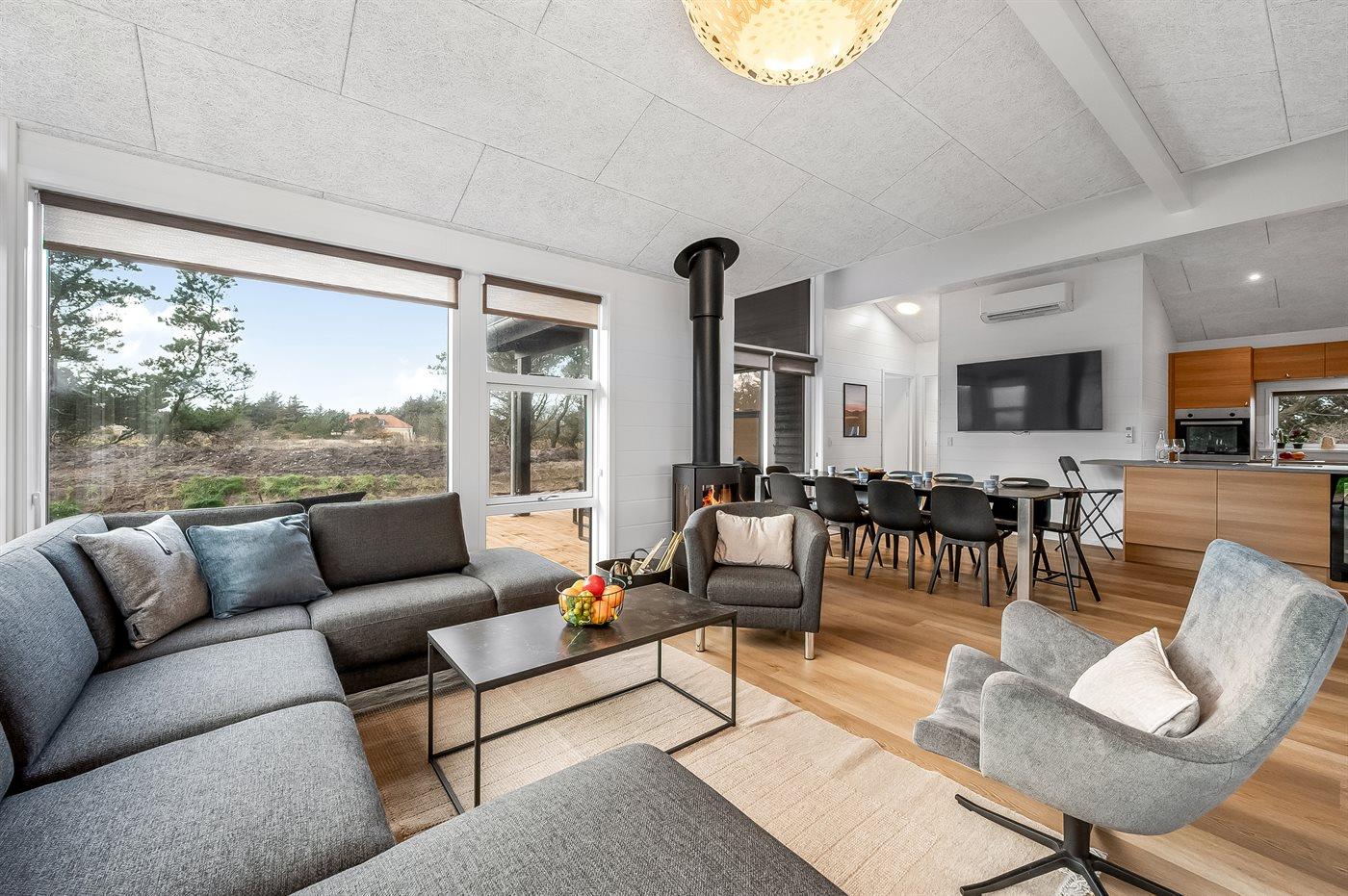 Sommerhuset egner sig til 8 personer. Ferieboligen er på 113 m² og er bygget i 2024. Det er ikke tilladt at medbringe husdyr. Ferieboligen er udstyret med 1 energivenlig luft til luft varmepumpe. Der er gulvvarme i alle klinkegulve. Ferieboligen har vaskemaskine. Tørretumbler. Frysekapacitet på 60 liter. Der er desuden brændeovn. Til de små er der 1 stk. barnestol.