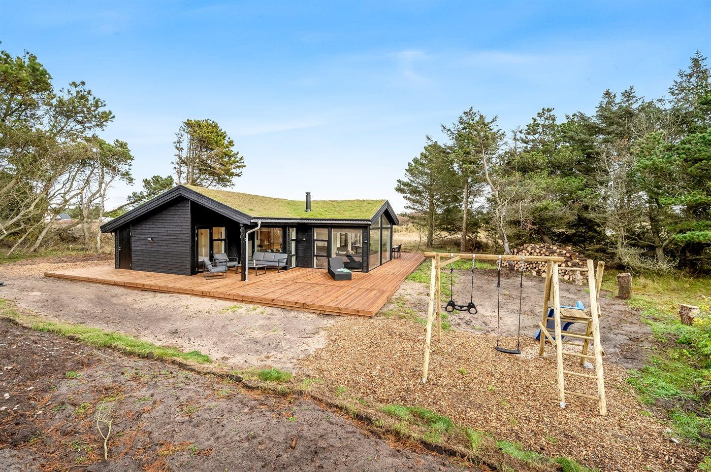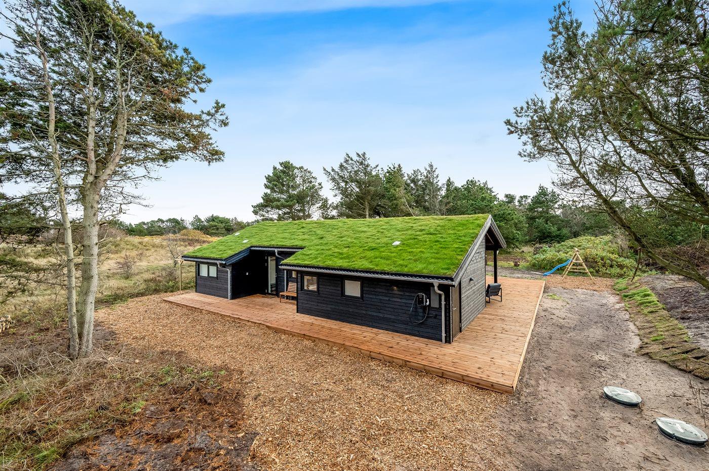 Ferieboligen er beliggende på en 2100 m² stor naturgrund. Der er 625 m til havet. Nærmeste forretning er beliggende i en afstand af 7500 m. Til ferieboligen hører åbent terrasseareal. Desuden er der overdækket terrasse. Gynge. Rutchebane. Grill til rådighed. Der er installeret stik til opladning af elbil. Parkering ved ferieboligen.