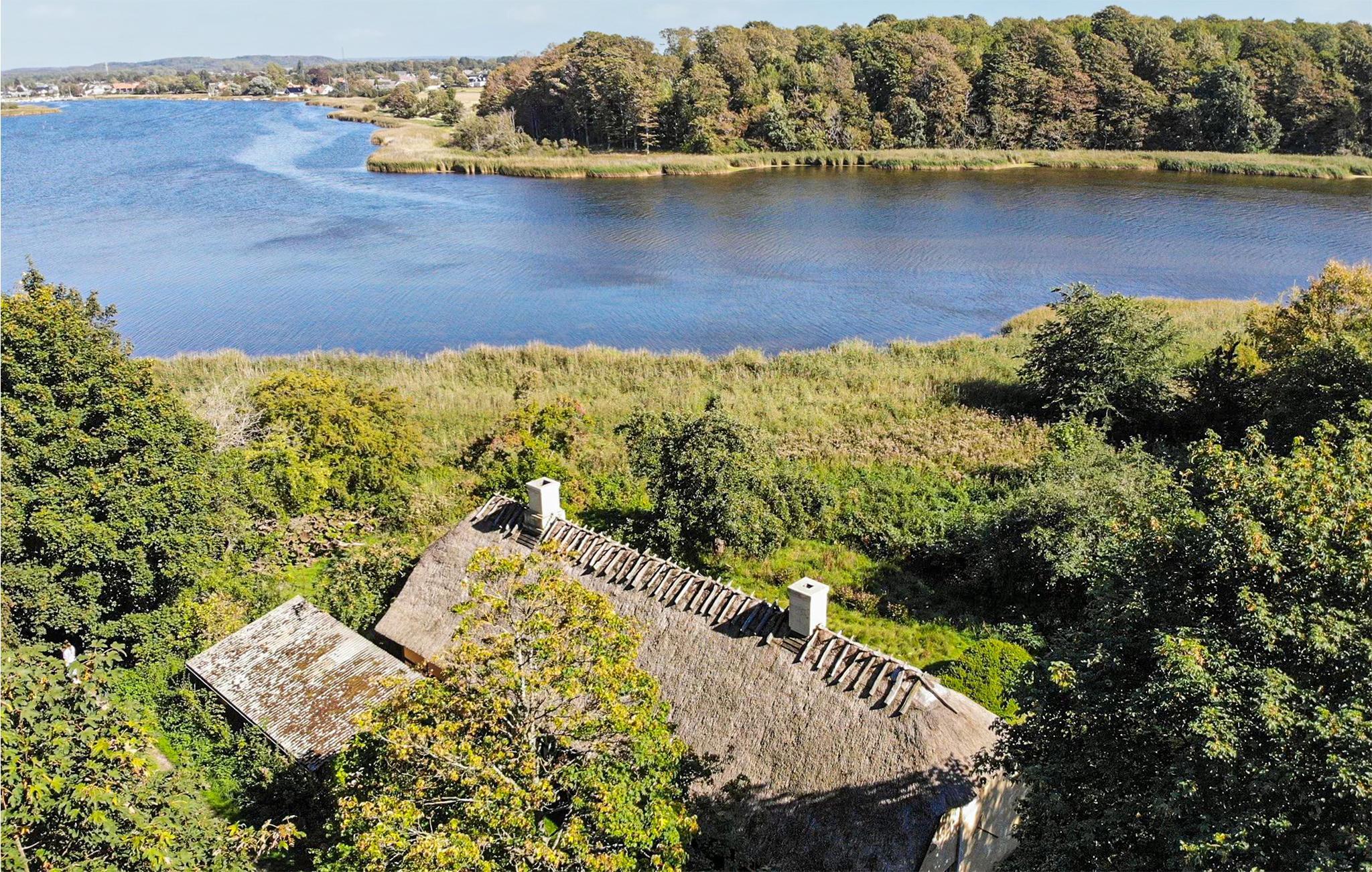 Autentisk og hyggeligt stråtagshus med en fantastisk beliggenhed nær fjord og slot.