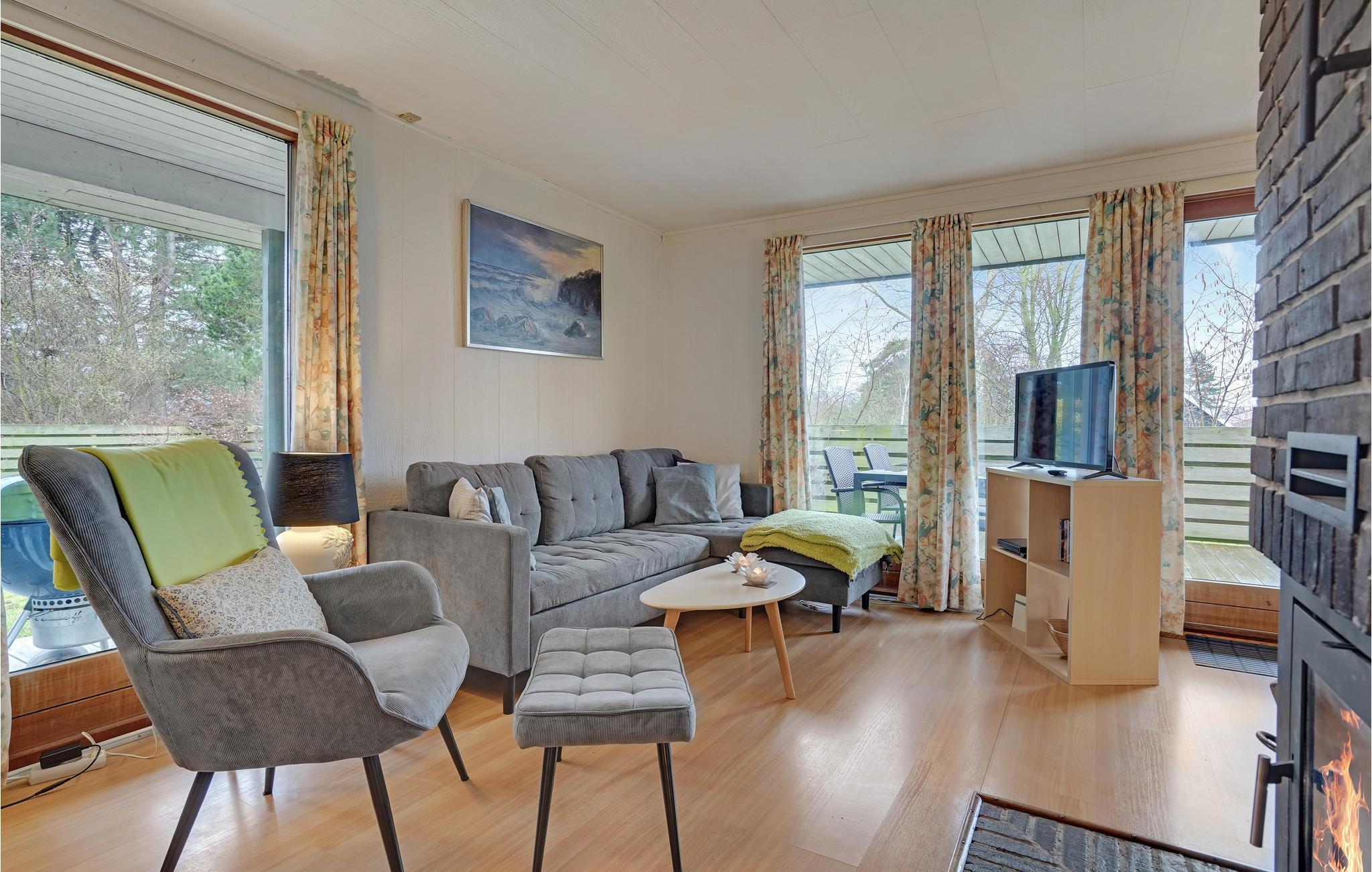 Dette hyggelige hus har en attraktiv beliggenhed midt i skøn natur og med kig til fjorden. Her kan I komme helt ned i gear og glemme alt om hverdagens travle program. De lyse rum med gulv til loft-vinduer lukker den smukke udsigt ind i huset, mens charmerende detaljer som murstensbrændeovnen skaber ekstra atmosfære. Lad blikket vandre over områdets maleriske natur, mens I nyder dagens måltider, og hvis I trænger til at bevæge jer bagefter, kan I snuppe et spil bordfodbold.