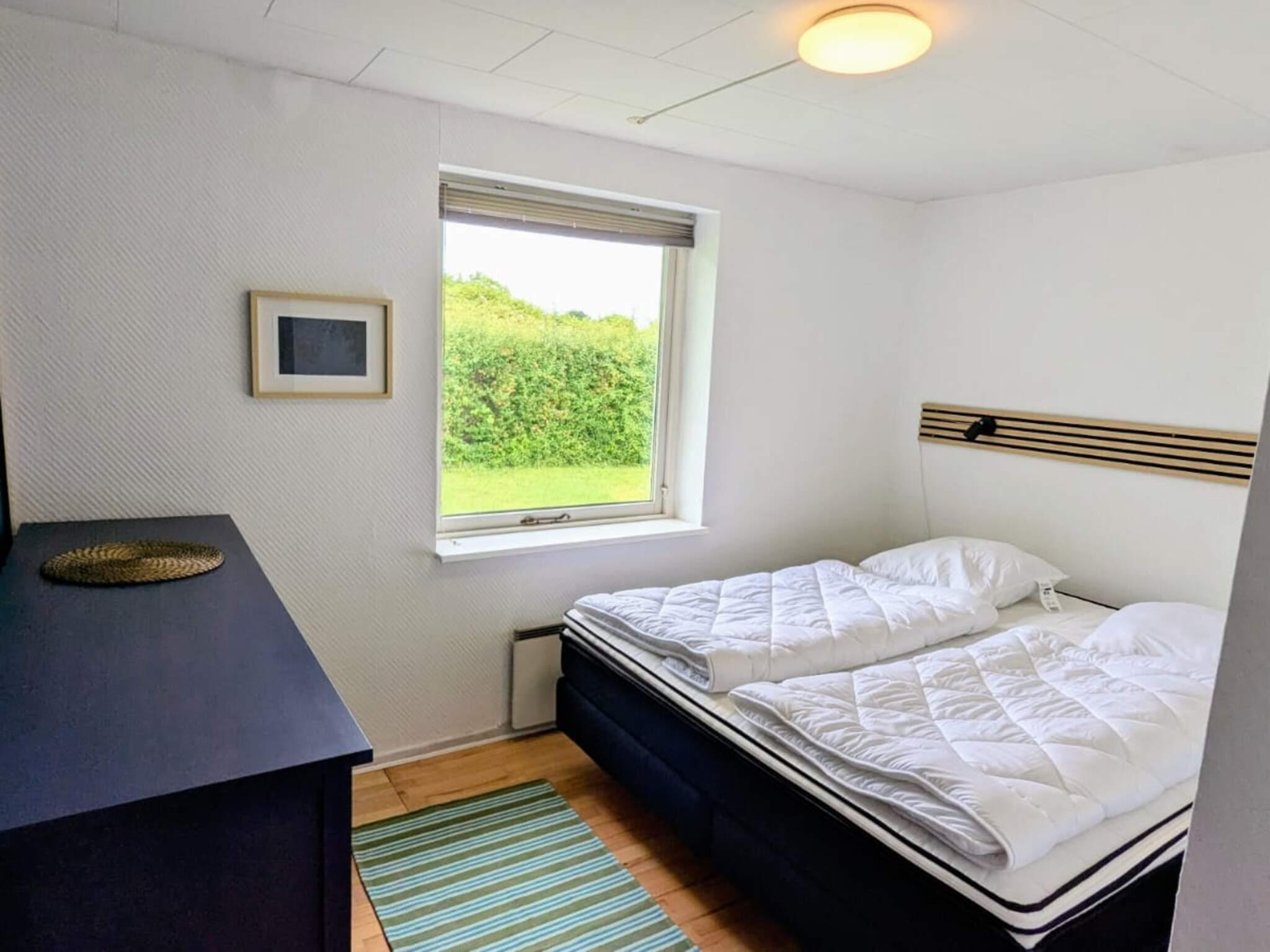 Sommerhuset har tre soveværelser: Et med en 140cm dobbeltseng, et med en 180cm dobbeltseng og ét med en enkeltseng – ideelt til en familie, par eller en lille gruppe venner. Badeværelset er lyst og praktisk med bruser, toilet, håndvask og vaskemaskine.