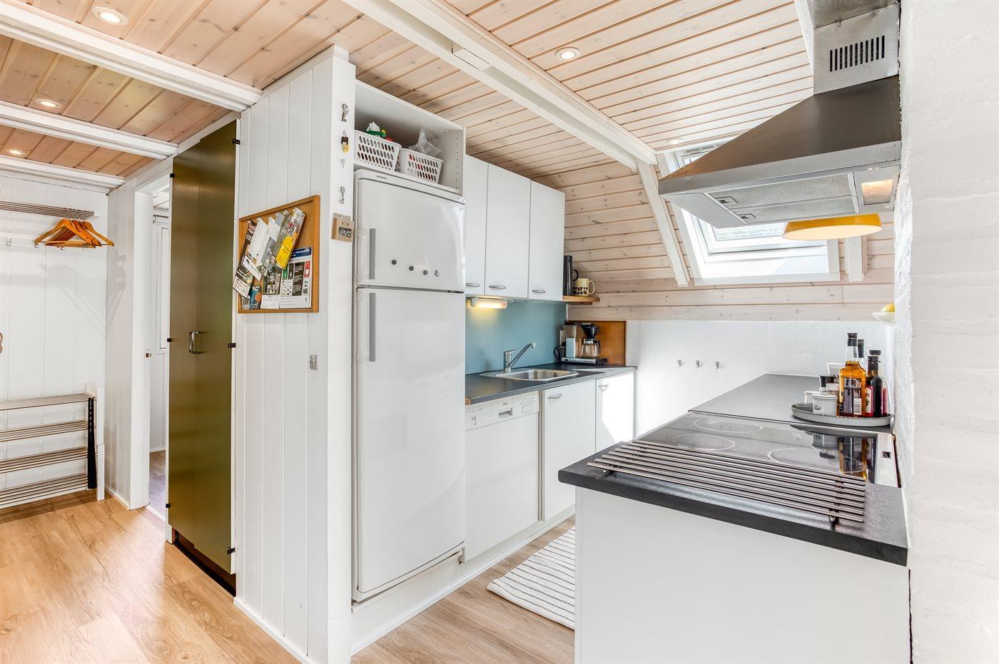 Køkkenet er udstyret med 1 køleskab. Der er 4 induktionskogeplader, varmluftovn, mikrobølgeovn samt opvaskemaskine.