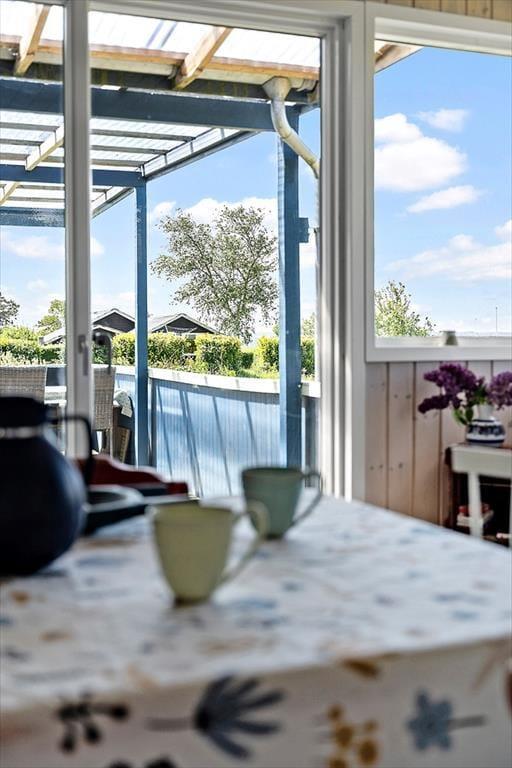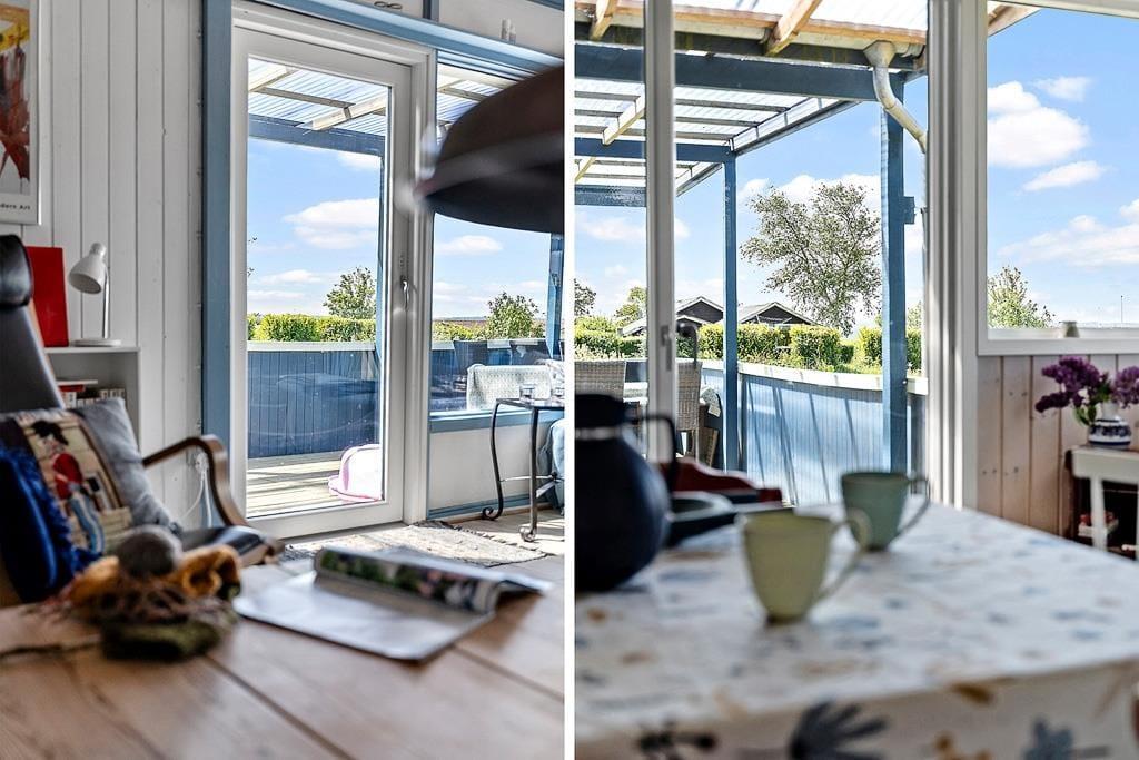 Allerede når du træder ind i huset, mærker du den gode stemning. De lyse og venlige rum er indrettet med hyggelige møbler og personlige detaljer, som straks inviterer dig til at finde ro og nyde ferien i et hjemligt miljø. Det åbne opholdsrum byder på et fint køkkenhjørne, spiseplads og en dejlig stue, hvor du kan sætte dig godt til rette med en kop kaffe og kigge direkte ud over vandet. Store vinduer trækker lyset og udsigten ind i rummet, og her er skabt en atmosfære, der giver lyst til at blive hængende lidt længere – måske med et brætspil, en god film eller bare en stille stund i sofaen. Det er sommerhushygge, når det er bedst.