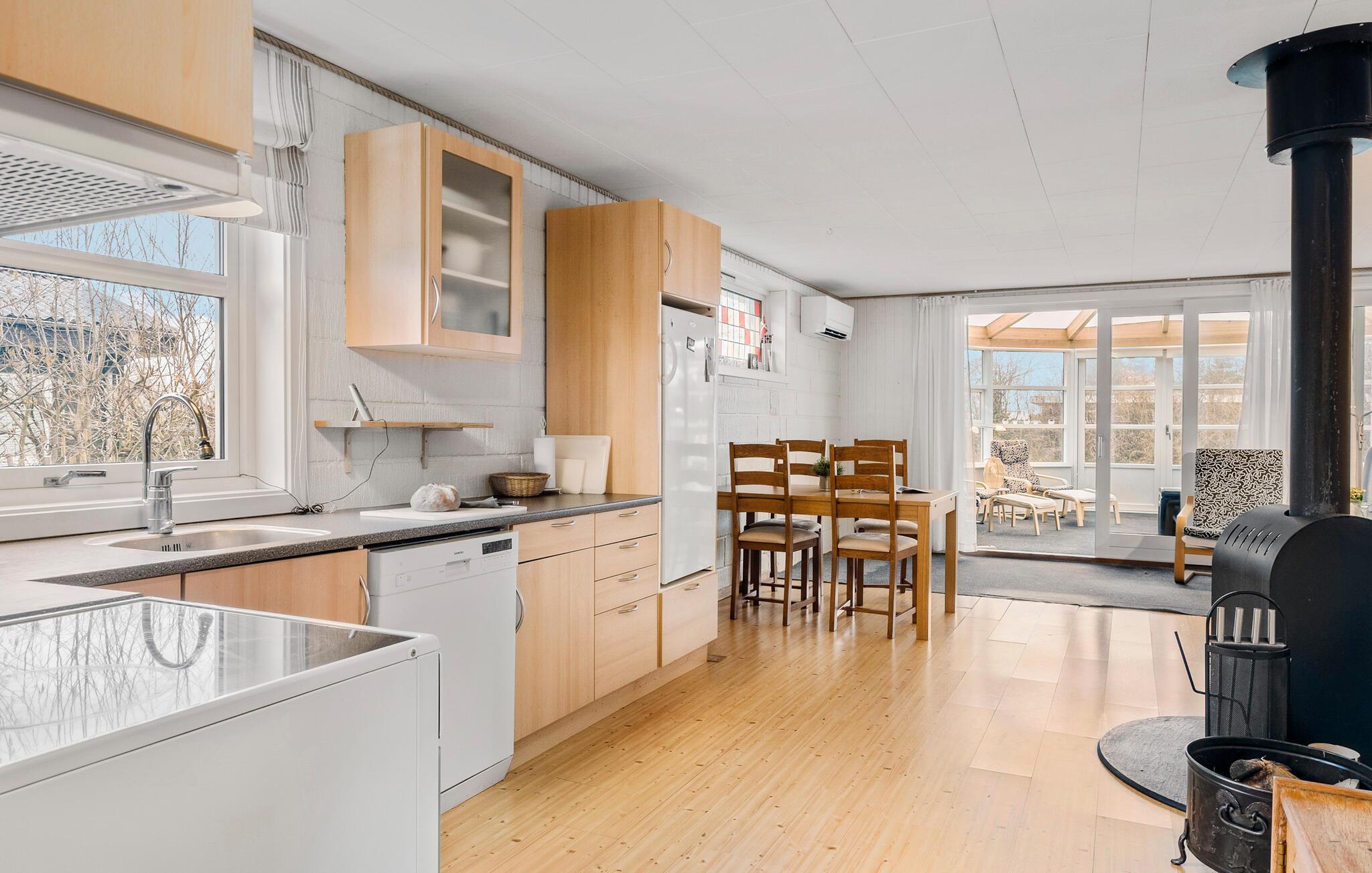 Tag familien under armen og rejs til Kegnæs, hvor I finder en herlig base i dette hyggelige feriehus. Huset ligger i et familievenligt område, og I får her alt, I behøver for at kunne slappe af og bare lade hverdagen blive derhjemme. Husets hjerte er det åbne opholdsrum, hvor køkken og stue mødes og lægger op til mange hyggelige stunder sammen. Lad nogen gøre madlavningen til et fornøjeligt fælles projekt, mens andre lægger puslespil ved spisebordet eller læser en god bog i sofaen ved brændeovnen. Nyd jeres måltider i udestuen, der er formet som en pavillon, og hvor I kan runde dagen af med hyggelige brætspil og nyde udsigten til haven dagen lang.
