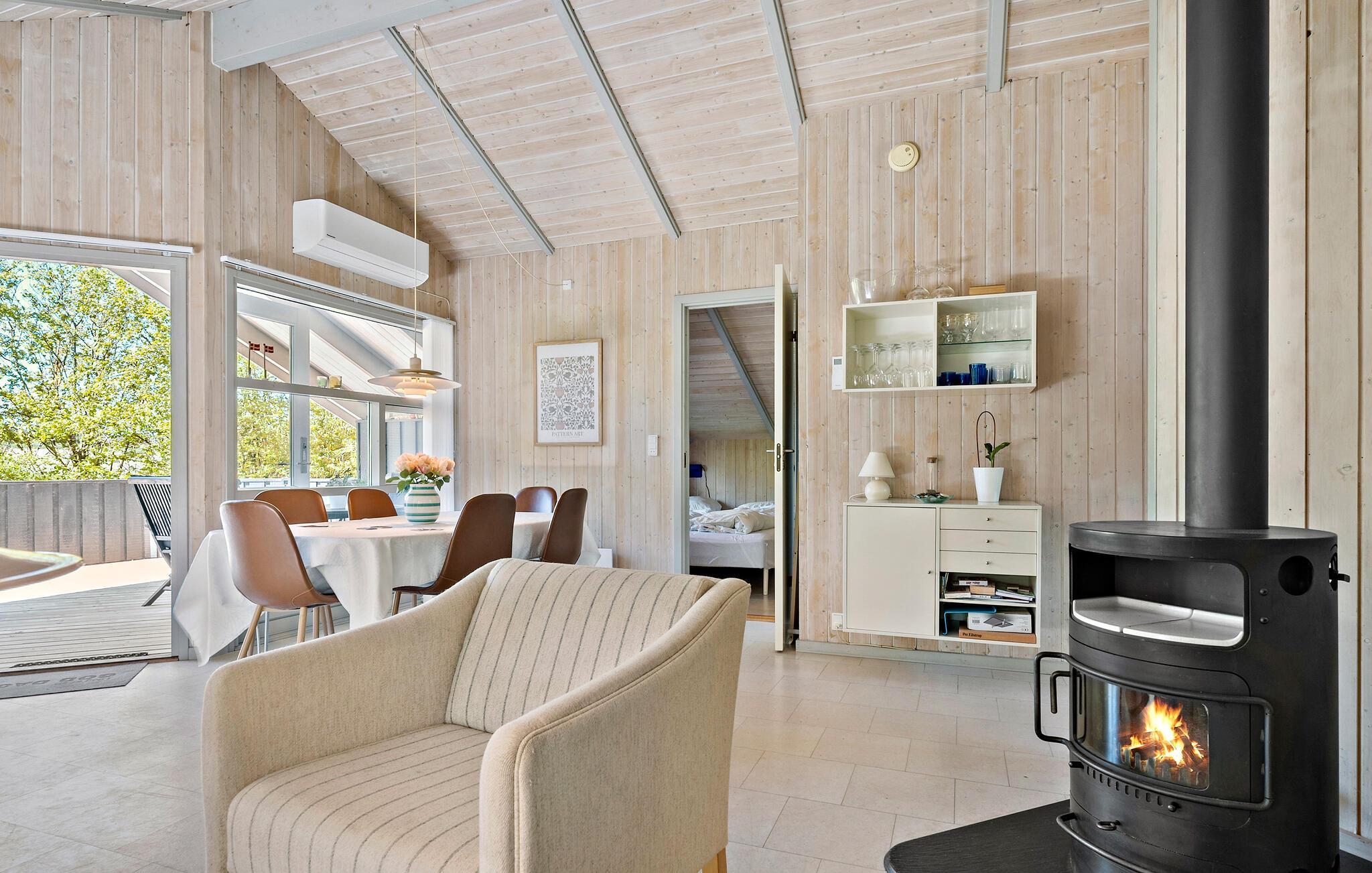 Tag familien under armen og rejs til det sydlige Danmark, hvor I på Kegnæs syd for Als får base i dette attraktive træhus. Omgivelserne er virkelig dejlige, og huset er flot indrettet med velholdte træpaneler, loft til kip og dejlige lysindfald gennem de store vinduespartier. Hvis vejret viser lidt tænder, kan I fyre op i brændeovnen, der giver varme og et hyggeligt lydtapet til madlavningen i det veludstyrede køkken og en filmaften i stuen. Eller måske I skal forkæle jer selv med en aftentur i spabadet eller saunaen?