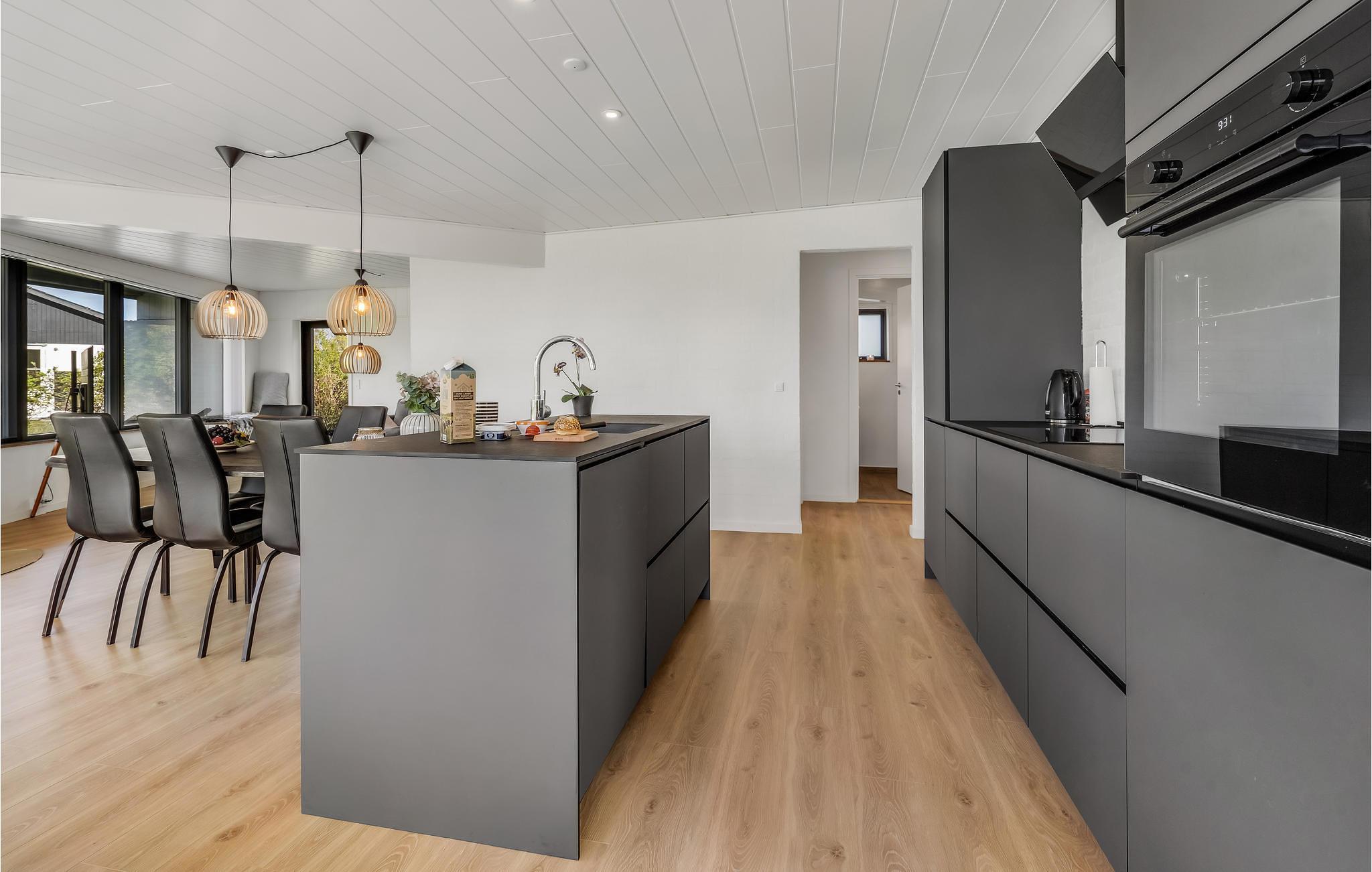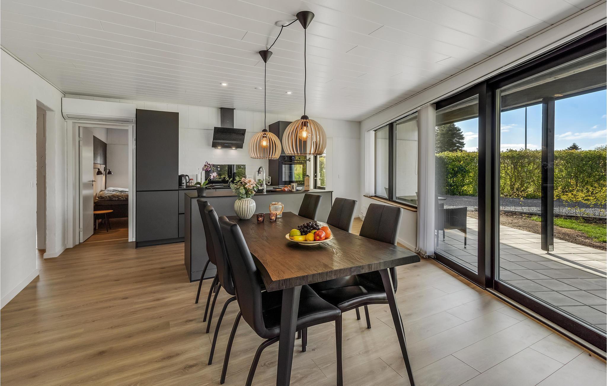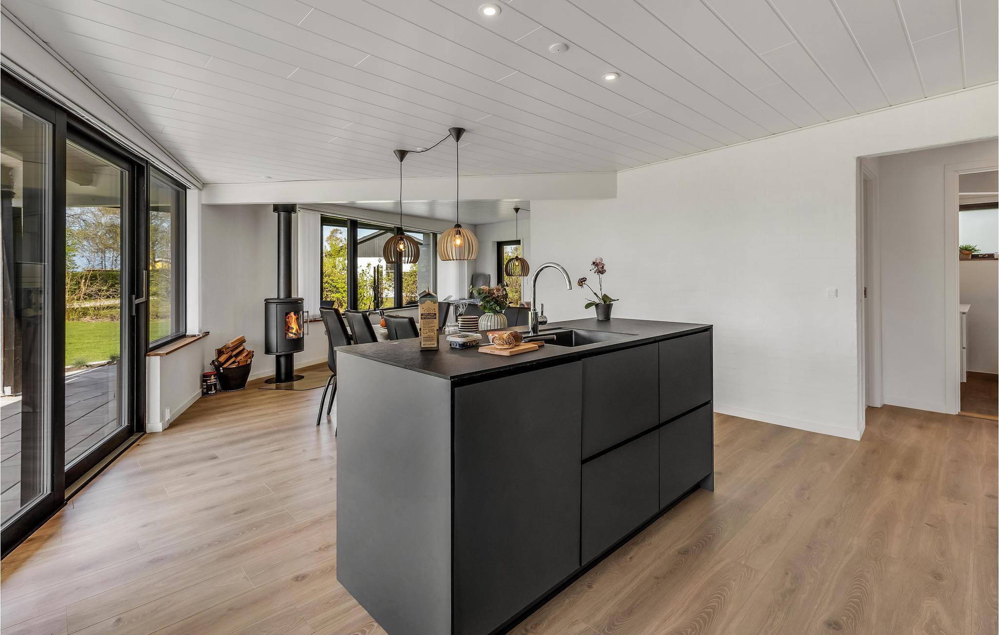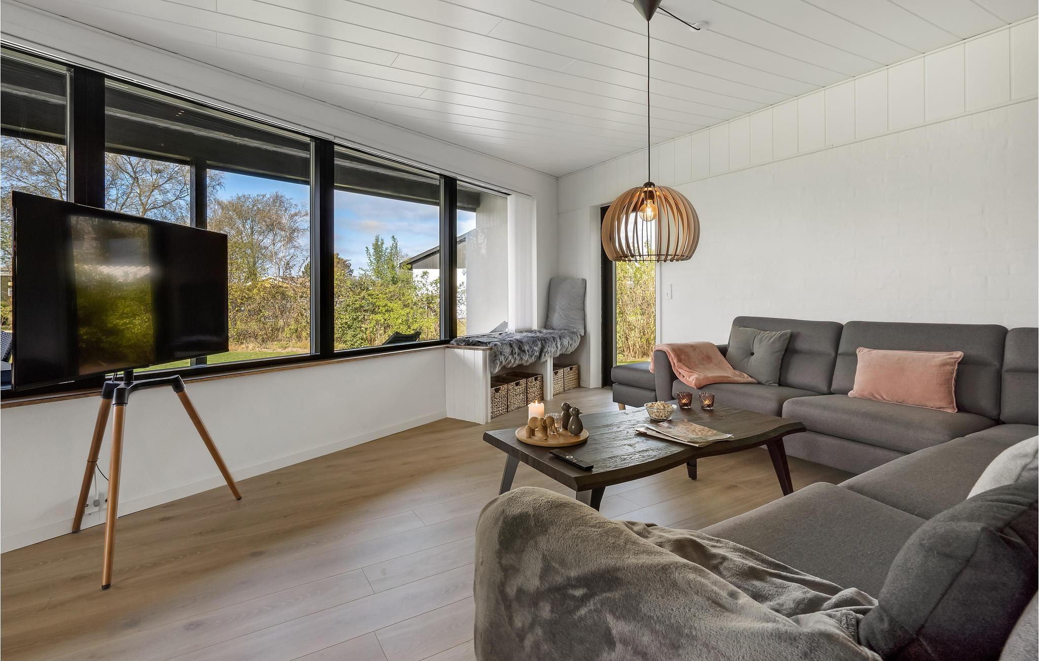 På halvøen Kegnæs venter en uforglemmelig ferie i dette smukke hus. Ferieresidensen er det perfekte valg for dem, der sætter pris på høj komfort og en beliggenhed nær stranden. I kommer på ingen måde til at savne noget, for huset er meget komfortabelt indrettet og tilbyder gode faciliteter. De store vinduer sørger for et skønt lysindfald i rummene og en beroligende atmosfære. Tryl jeres yndlingsretter frem i det moderne og åbne køkken og slap af på sofaen om aftenen til en god film.