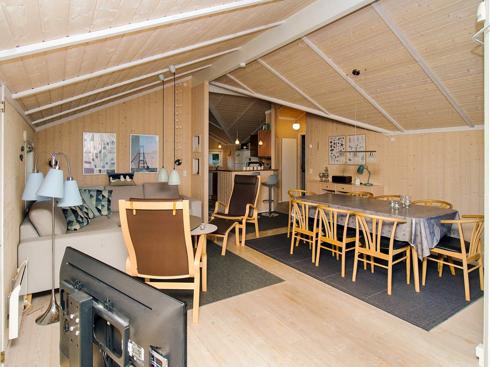 Dette sommerhus med moderne møblering er beliggende ca. 75 meter fra den gode badestrand ved Kelstrup. Det børnevenlige hus vil let kunne danne ramme om en god ferie for familien - endda måske to familier.