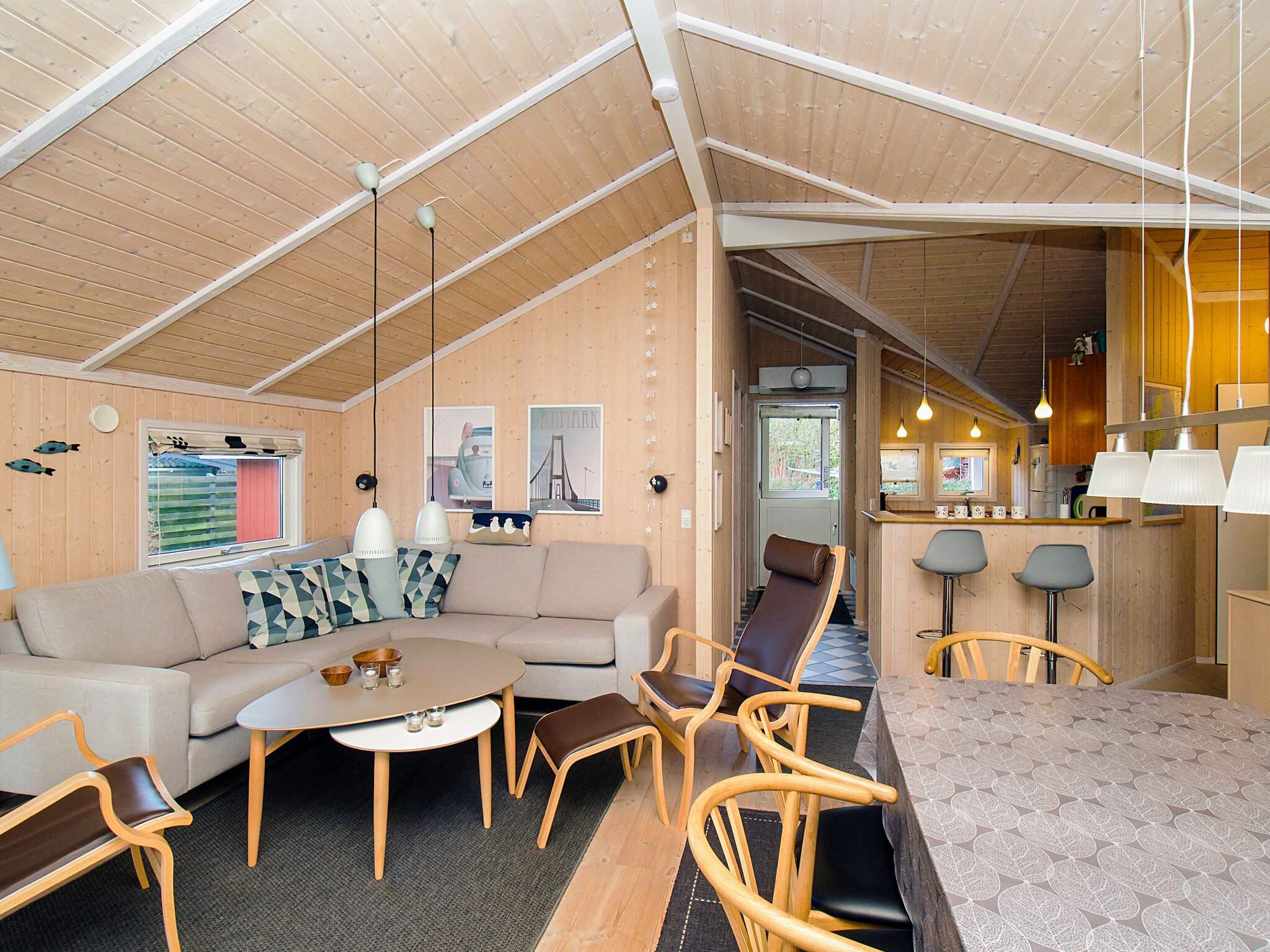 Alkoven i stuen udgør en hyggelig krog til leg og læsning. Ligeledes, tiltænkt børnene, findes gyngestativ i haven med muligt opsyn fra terrassen. Nyd også udsigten over Storebælt og oplev de passerende skibe. Opvaskemaskinen gør det muligt at slippe nemmere om ved køkken-tjansen og nyde ferien. Huset er udstyret med 3 værelser, dvd-afspiller samt et badeværelse med spabad og sauna, hvor I rigtig kan slappe af. Huset indeholder dermed rigelig afslapningskapacitet for to familier.
