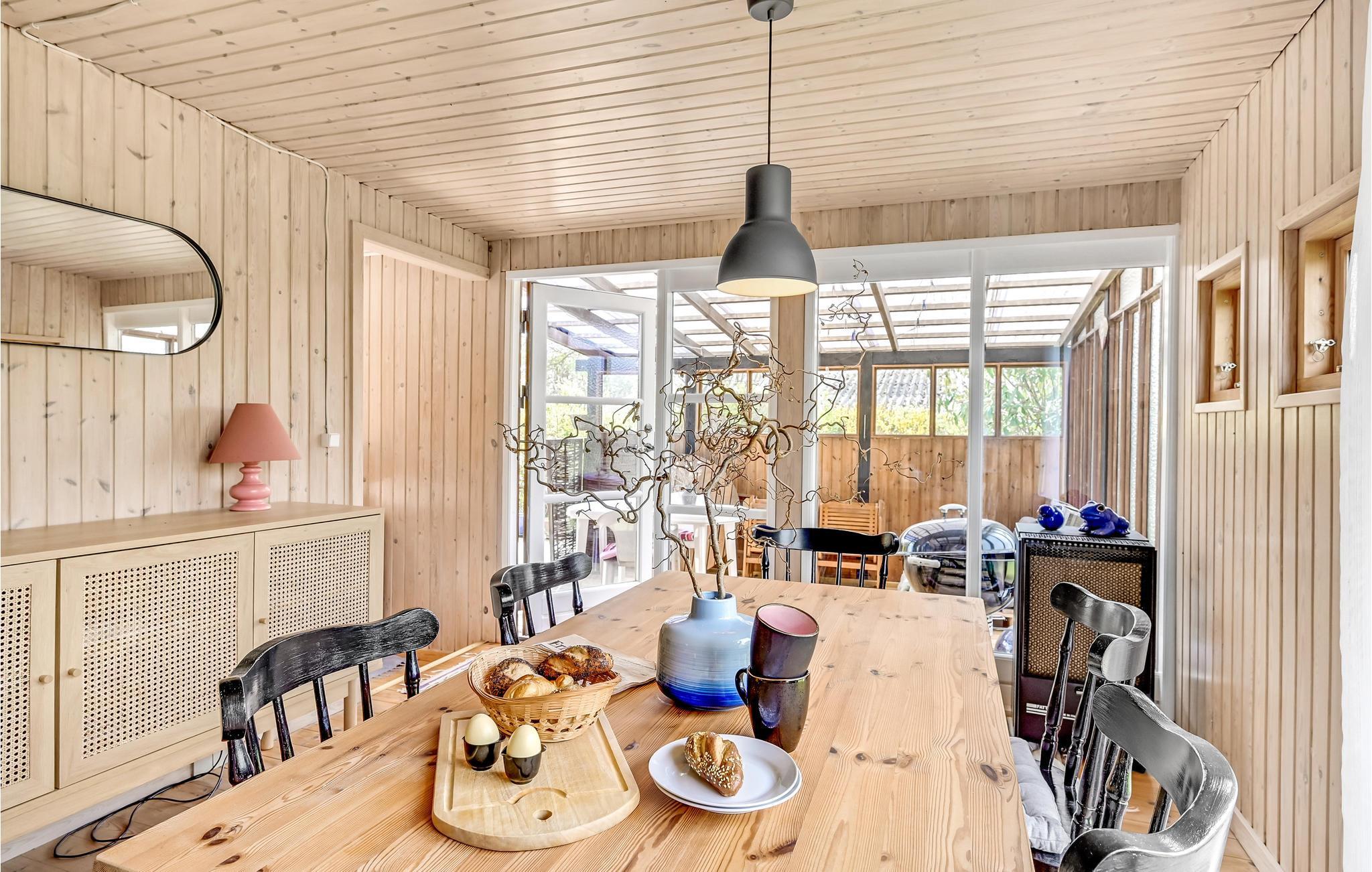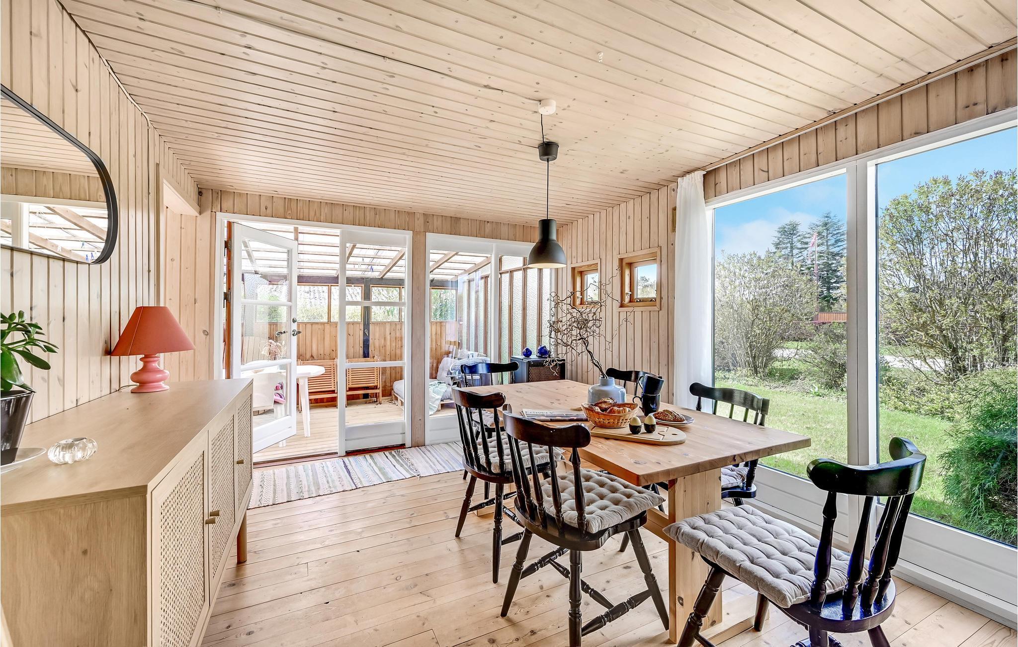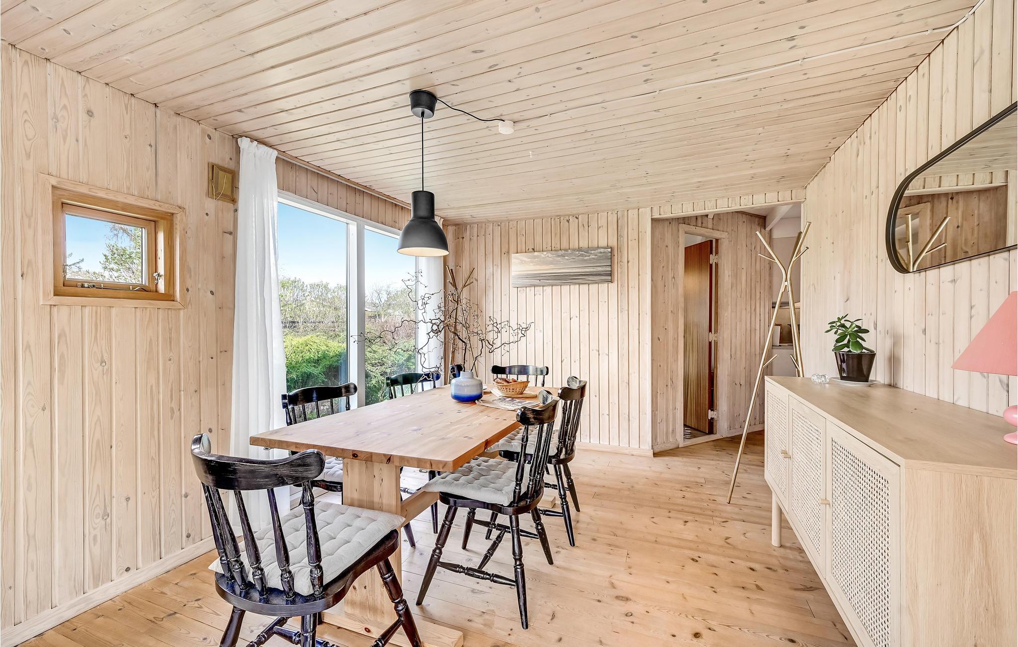 Der er lagt op til nogle hyggelige dage med familien i dette hyggelige hus ved Musholm Bugt. Huset har et gedigent udtryk i mørkt træ, og indendørs kan I se frem til store lys rum, hvor I kan samles om måltiderne og sofahyggen.