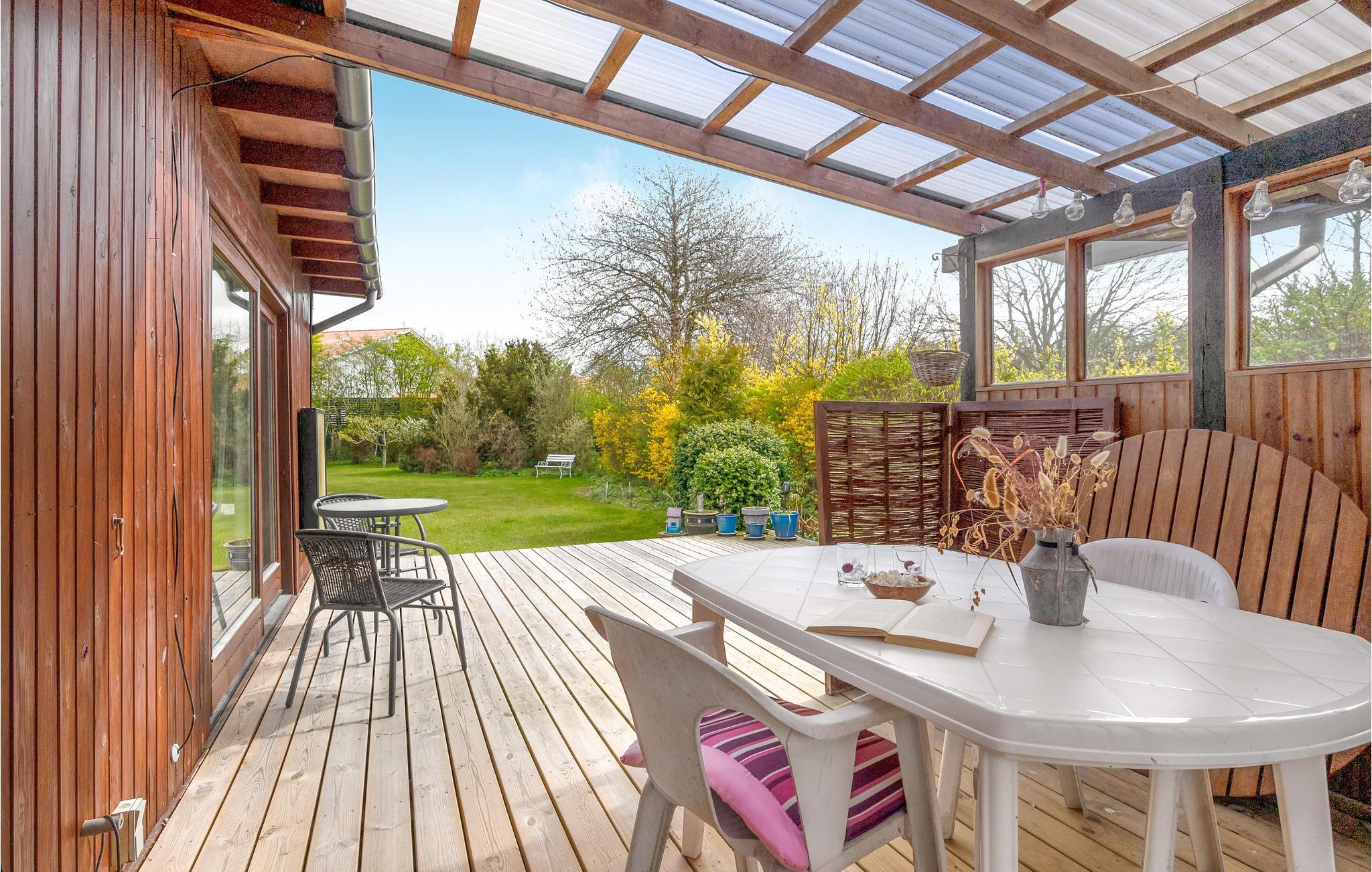 Terrassen har både sol og skygge, så her er der lagt op til nogle skønne sommeraftener, hvor I kan grille og give jer tid til de gode samtaler. I haven er der legefaciliteter til børnene, så de kommer ikke til at kede sig.