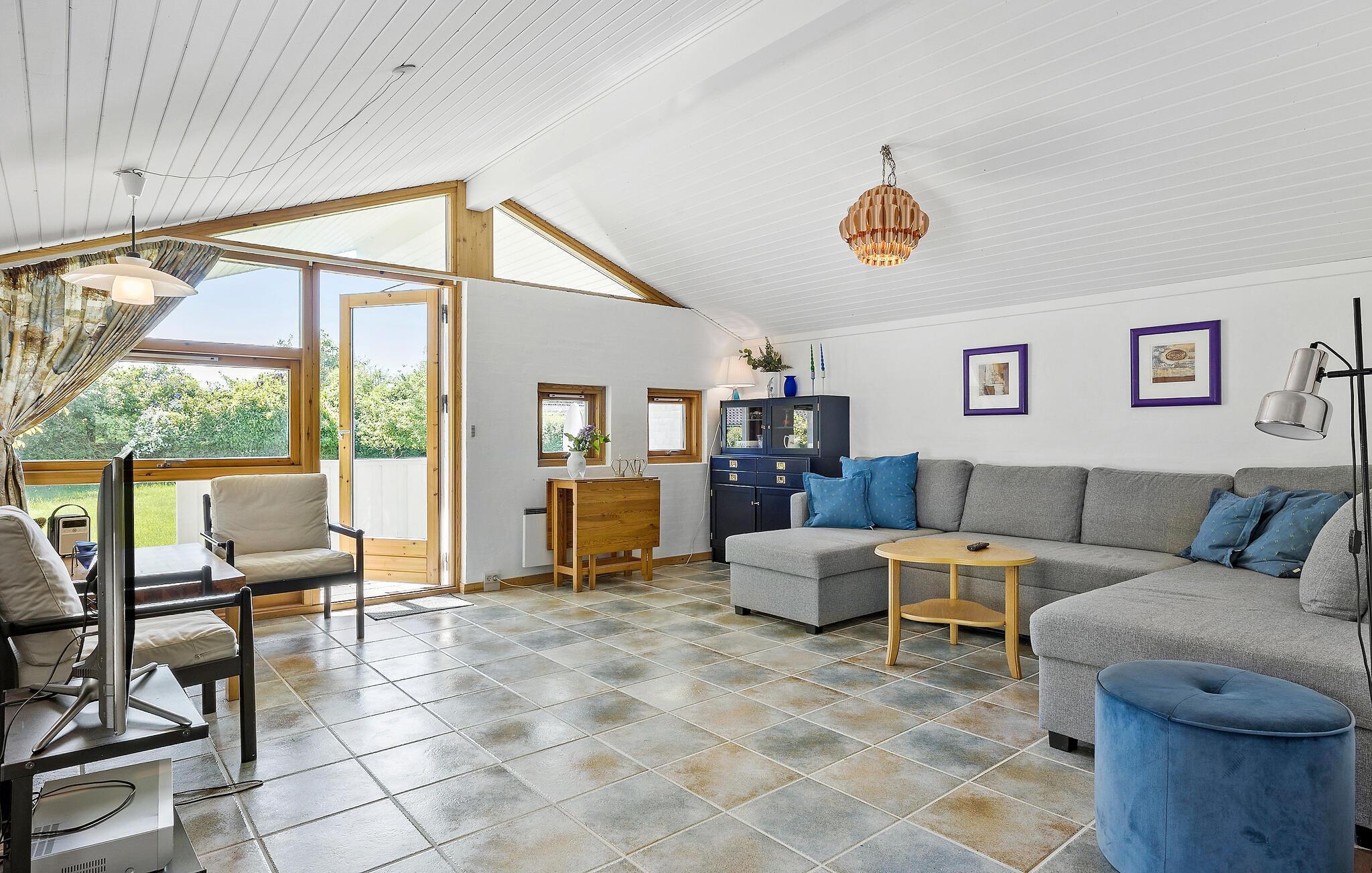 Velkommen til en ferie i dette familievenlige feriehus ikke langt fra stranden. Lyse og glade farver skaber en hyggelig atmosfære, der indbyder til afslapning. Hyg jer sammen i jeres hus, og nyd feriedagene med spil ved spisebordet eller en filmaften på sofaen.