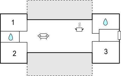 Badeværelse (nr. 1) - WC. Varmt og koldt vand. Bruser