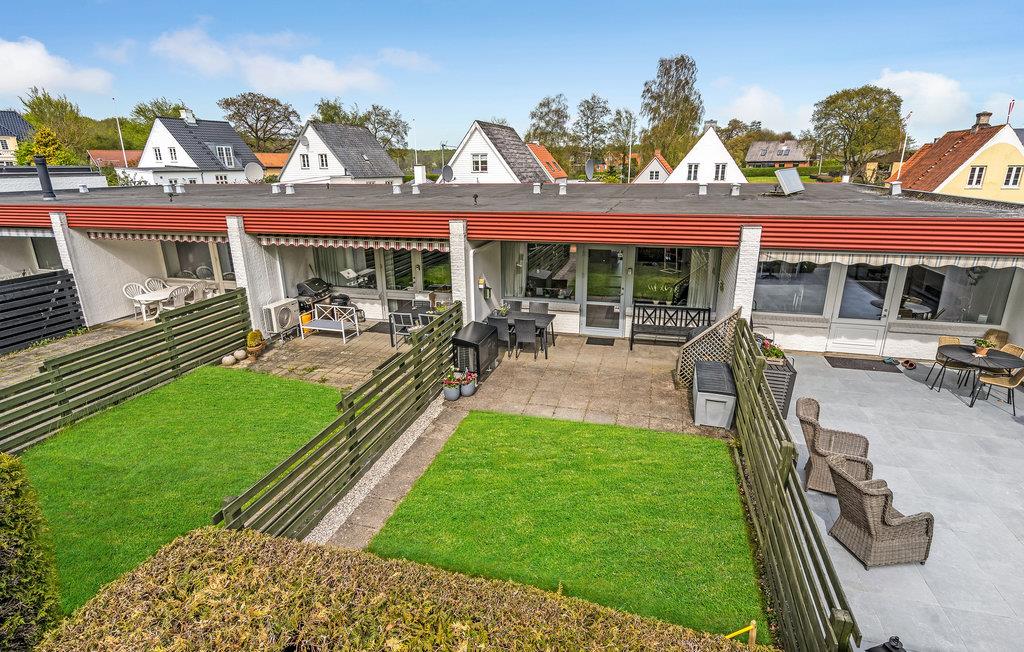 Moderne rækkehus nær Kelstrup Strand med terrasse, havudsigt og naturskønne omgivelser.