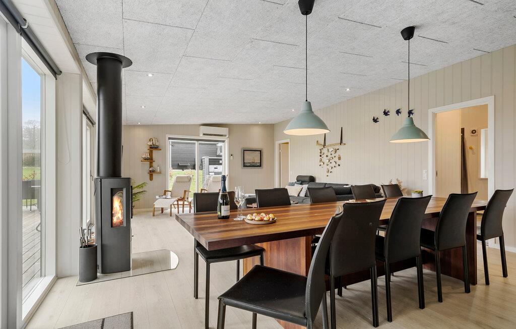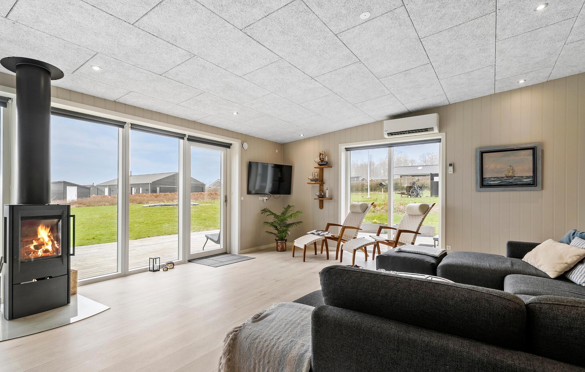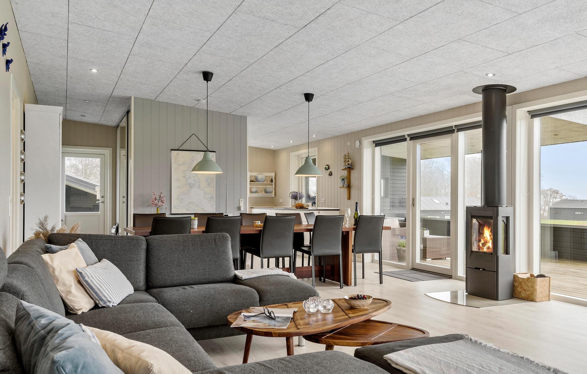 Dette hus har en helt fantastisk beliggenhed kun en lille gåtur fra stranden. Her kan I slappe af i den lyse opholdsstue efter en aktiv dag, nyde måltiderne med smuk udsigt over vandet og planlægge fremtidige eventyr, mens ilden knitrer i brændeovnen. Det store køkken/alrum er familiens samlingssted og forvandler selv en regnvejrsdag til en rigtig god feriedag. De store vinduer i køkken og stue giver et dejligt lysindfald, samtidig med at I har udsigt ud over området og ud til Lillebælt.