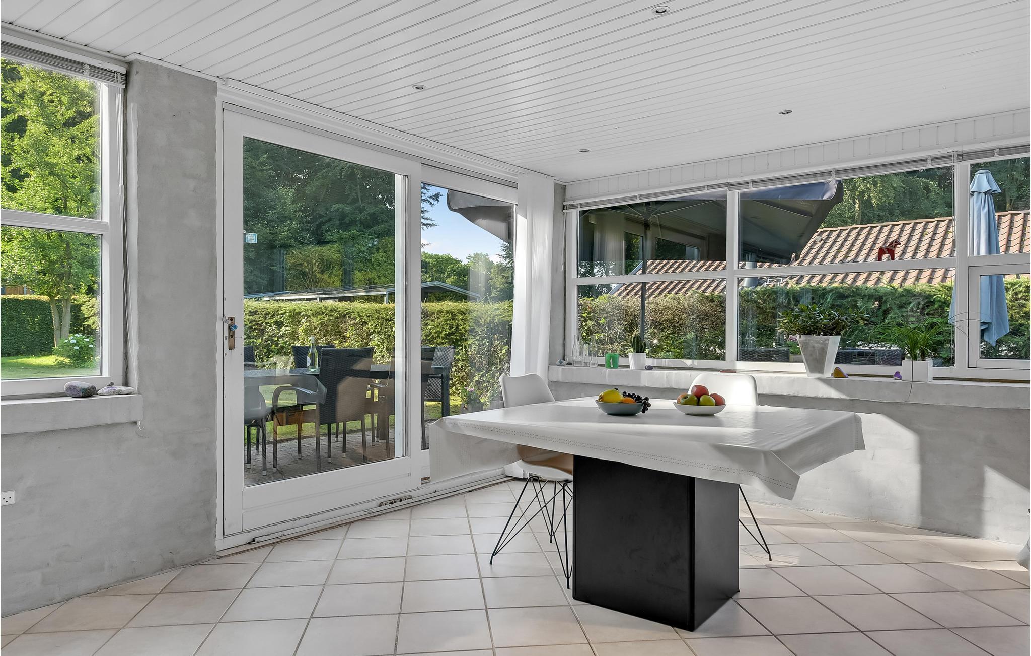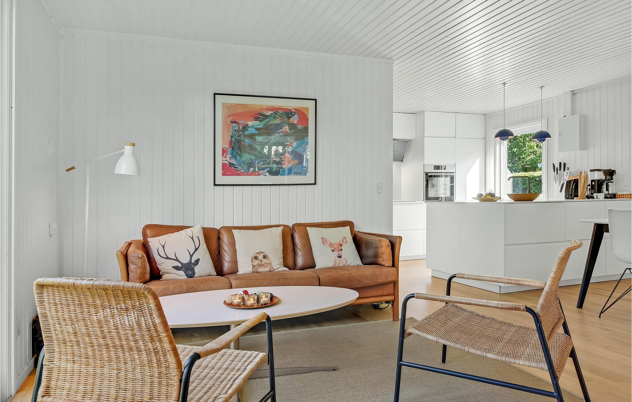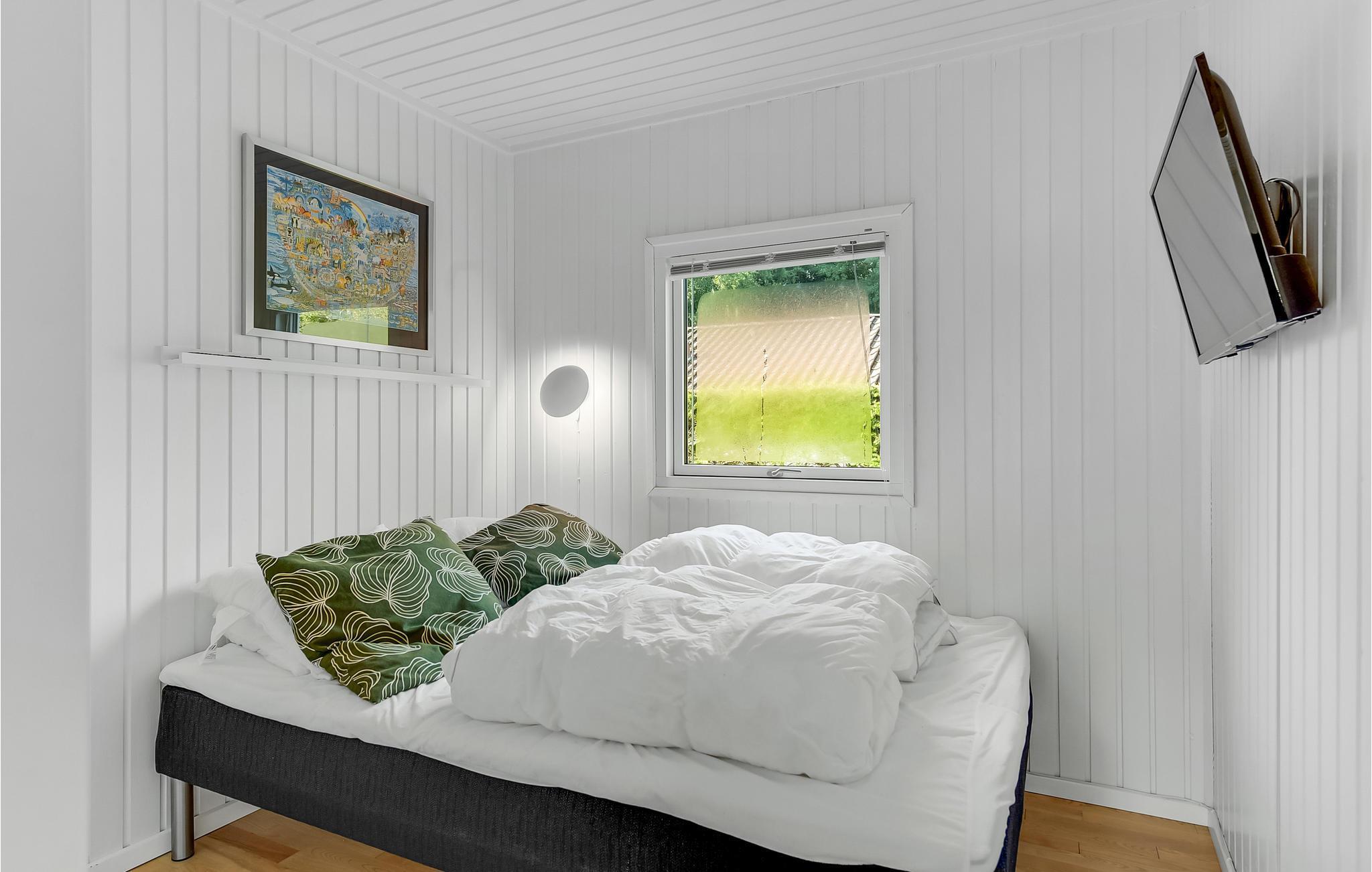 Nyd freden og roen i dette dejlige sommerhus tæt på skov og vandet. Huset ligger på en stor, lukket grund med skov i baghaven og god plads til udendørs liv. Indendøre fremstår huset lyst og åbent med køkken og stue i et, fra stuen er der udgang til en skøn havestue med videre udgang til haven. Endvidere findes 3 soveværelser; to med en dobbeltseng samt et mindre værelse med en etageseng. Hertil kommer et badeværelse med bl.a. vaskemaskine. På den dejlige terrasse kan I nyde de solrige dage og skønne feriemåltider.