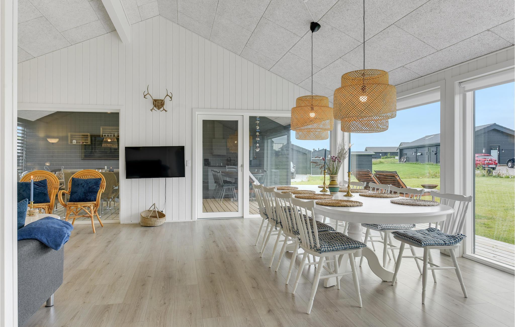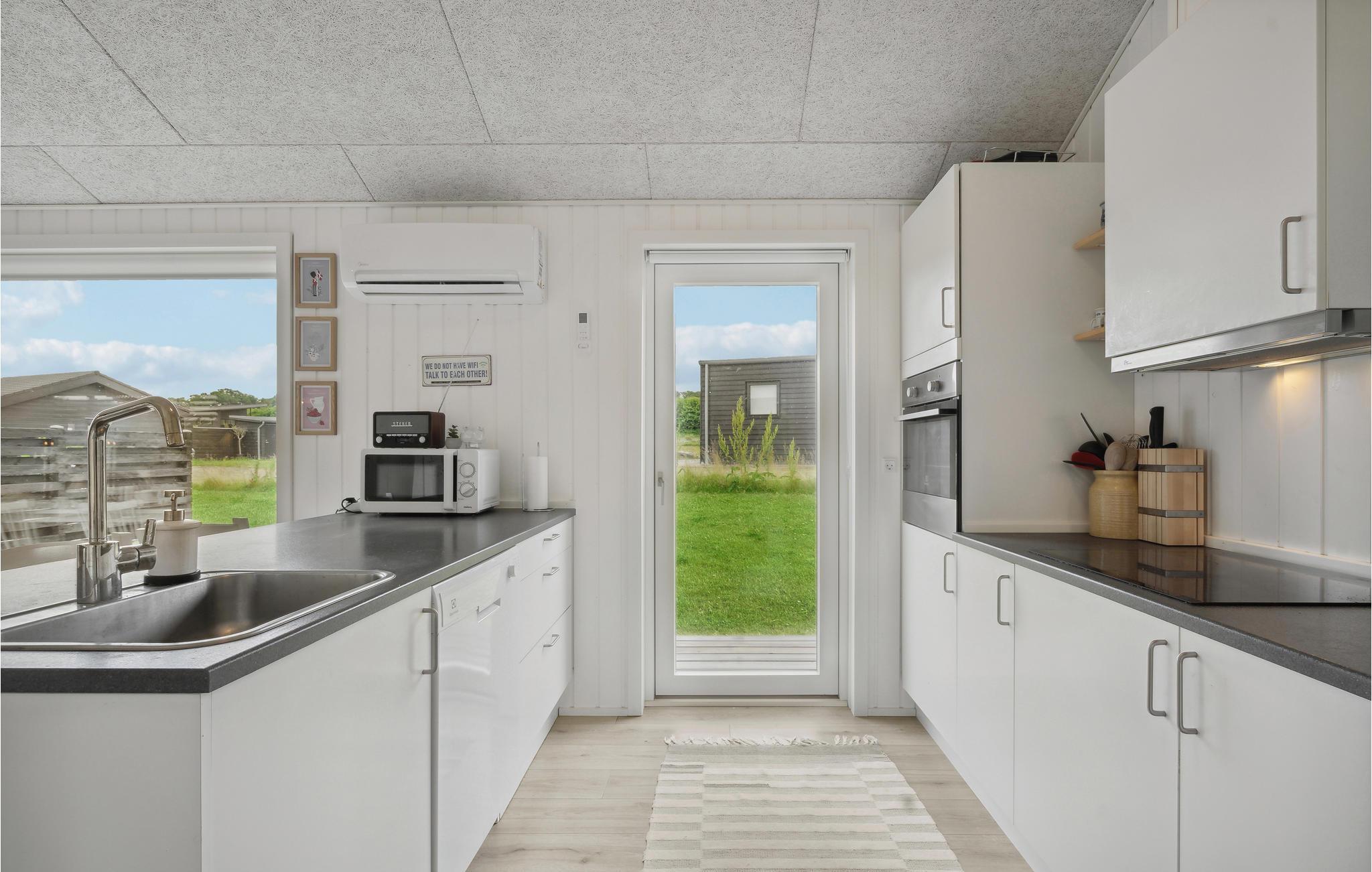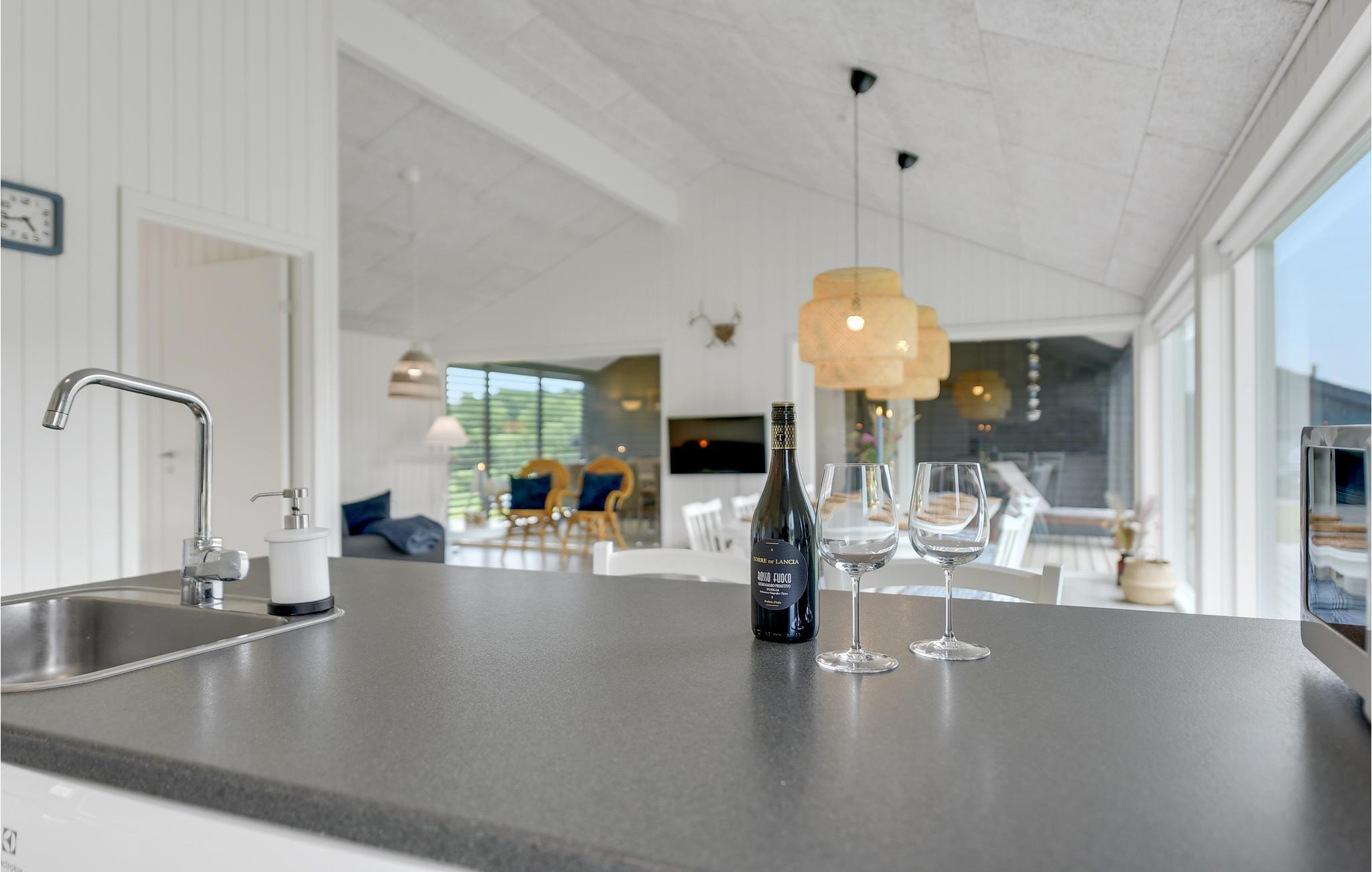 Spændende hus der er opført i to sektioner og derfor ideelt til flere familier. Huset har en stor overdækket terrasse imellem de to sektioner, så I kan samles næsten udenfor og spise, hygge jer eller bare nyde den friske luft uden at tænke på vejret. Huset har køkken alrum i forbindelse med stuen og 4 gode soverum. Der er to badeværelser hvor i det ene finder et spabad. Udenfor er der god plads til leg for børn og barnlige sjæle. Nyd ferien ved Kelstrup hvor i kan opleve et landskab af grønne marker og dale, skove og fjorde, der munder ud i Lillebælt. Et rigtigt familievenligt område med en børnevenlig strand med roligt vand ud mod Lillebælt. Besøg den nærliggende by Haderslev der har en charmerende gammel bydel, som domineres af byens imponerende domkirke, gå f.eks. en tur gennem Haderslev Dampark ved byens centrum.