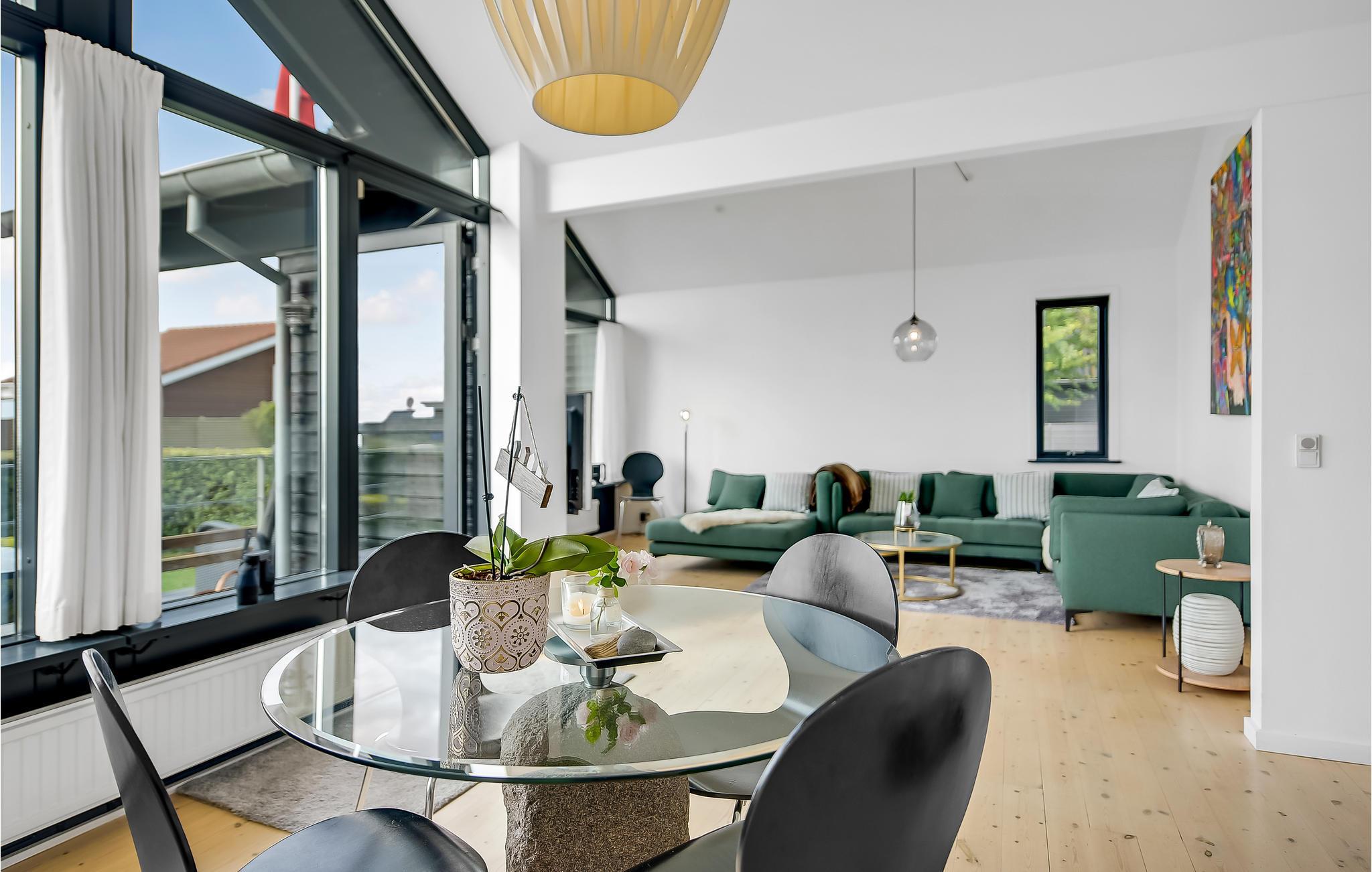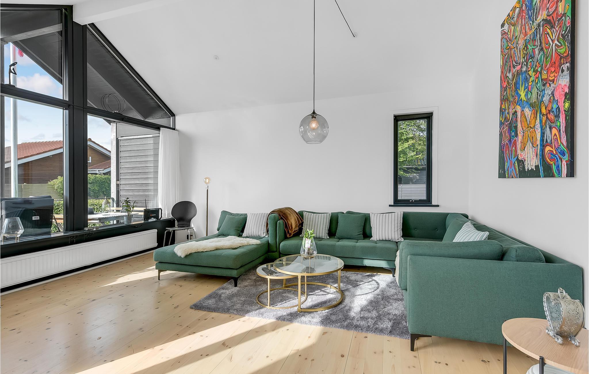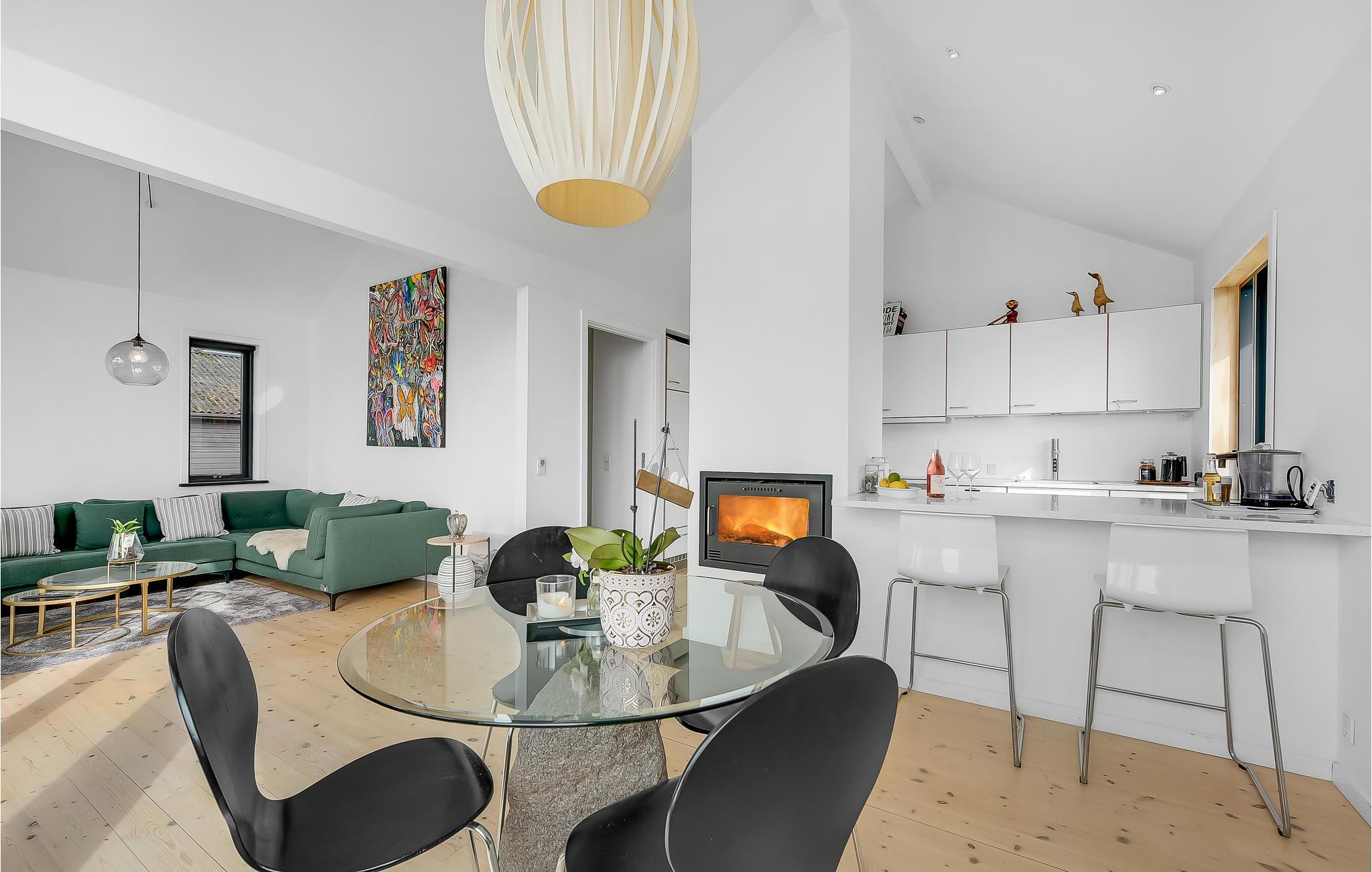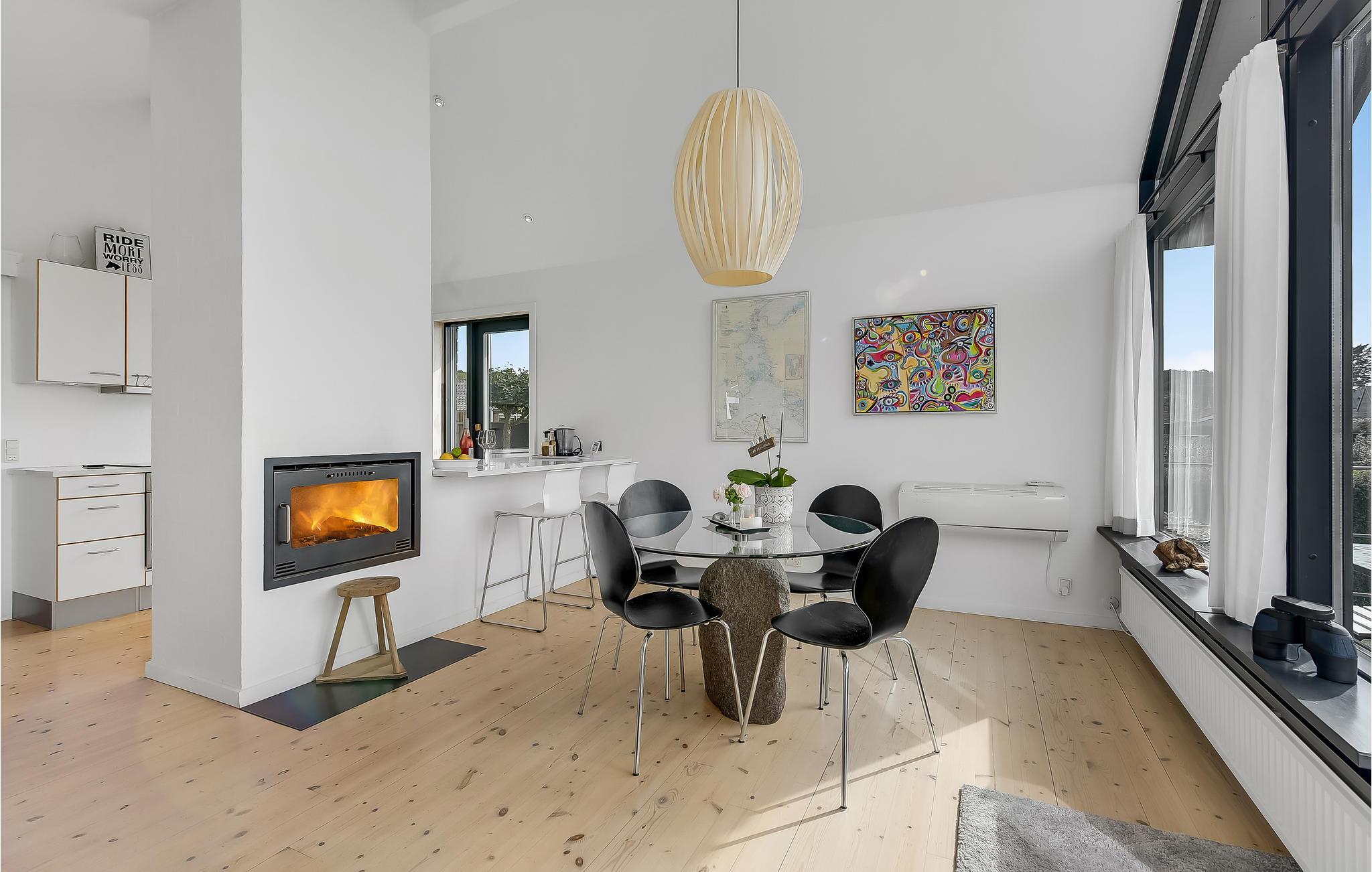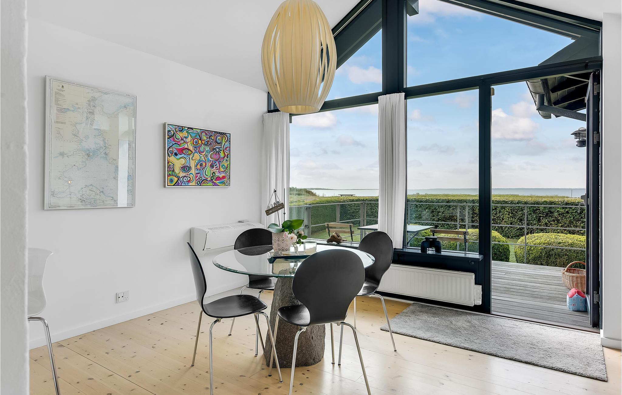 Moderne sommerhus ved Kelstrup Strand med panoramaudsigt, pejs og vildmarksbad for en uforglemmelig ferie.