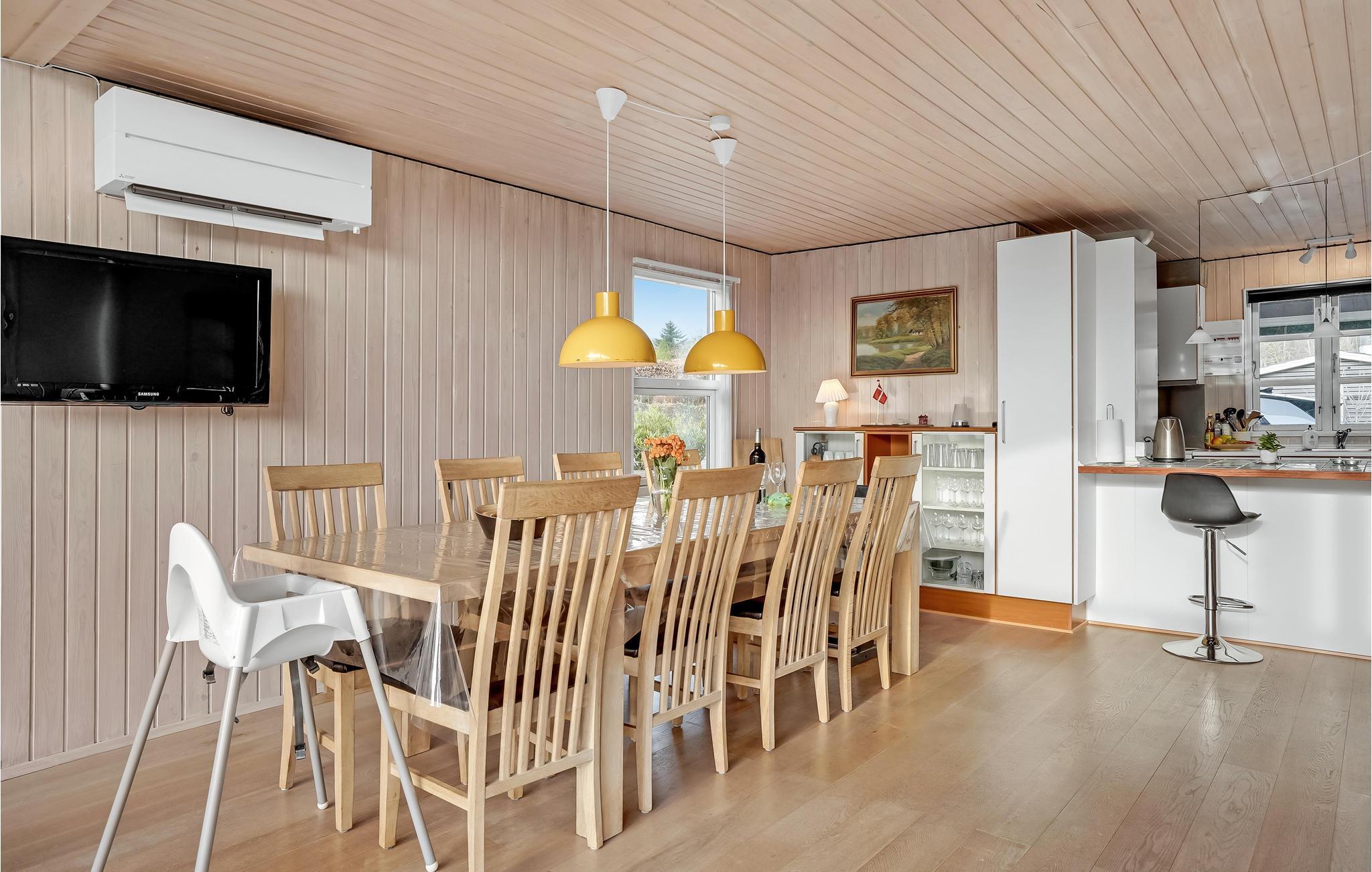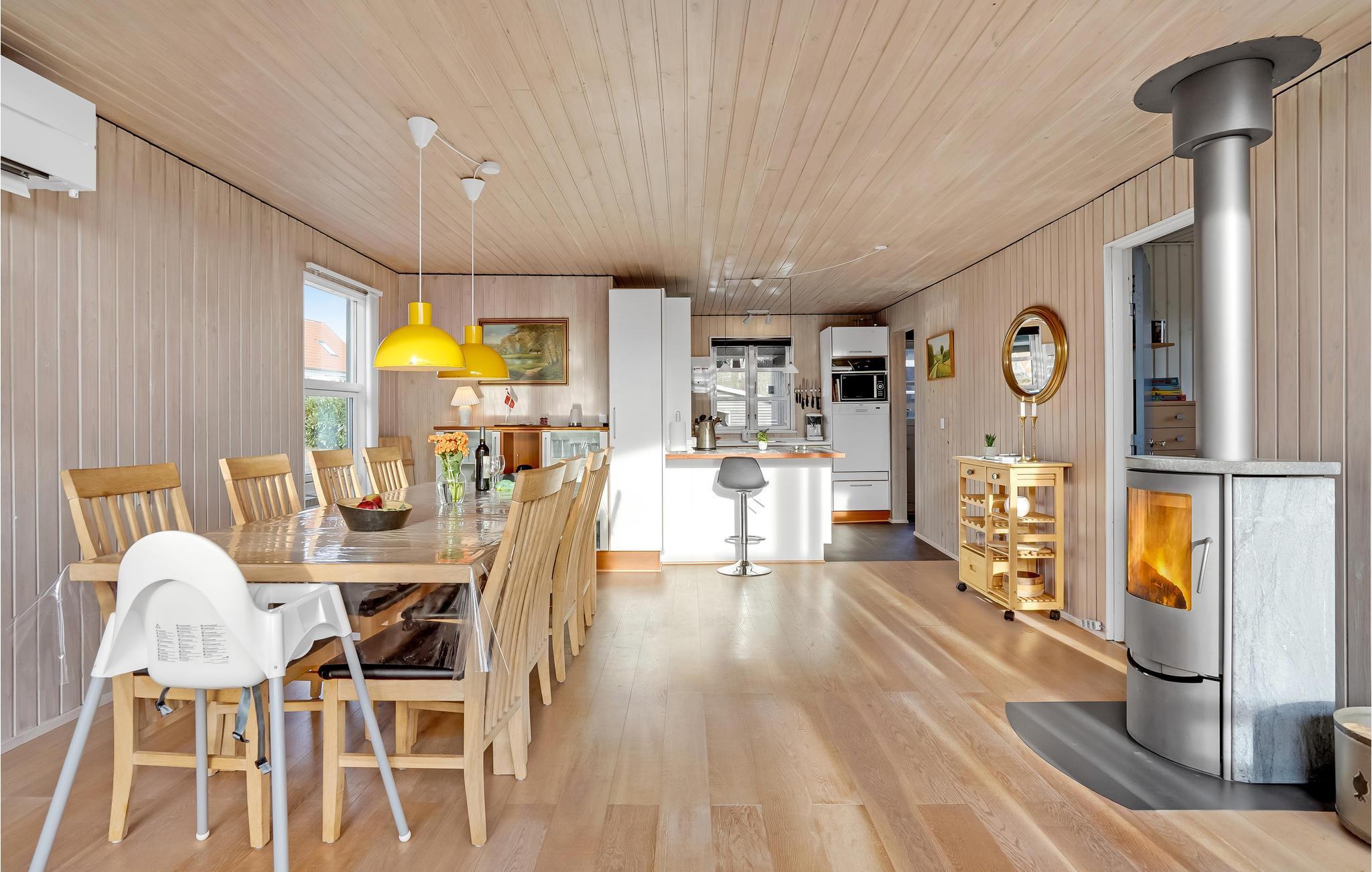 Velkommen i dette charmerende og flotte sommerhus, der er smagfuldt indrettet med mange fine træløsninger. Stuen har brændovn, flere hyggelige kroge og store vinduespartier, så hvis I er til naturligt lys og afslapning, er I kommet til det rette sted.
