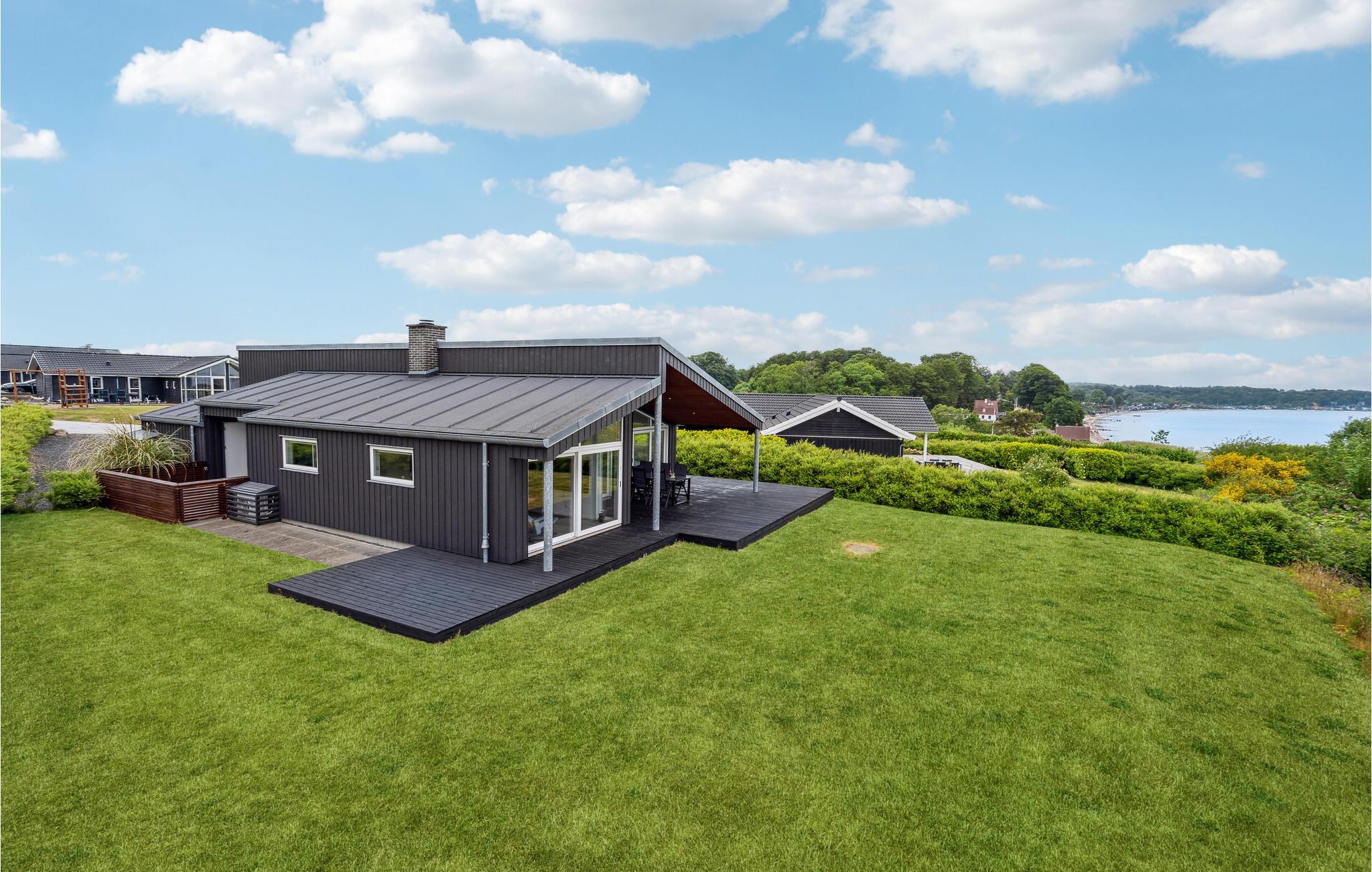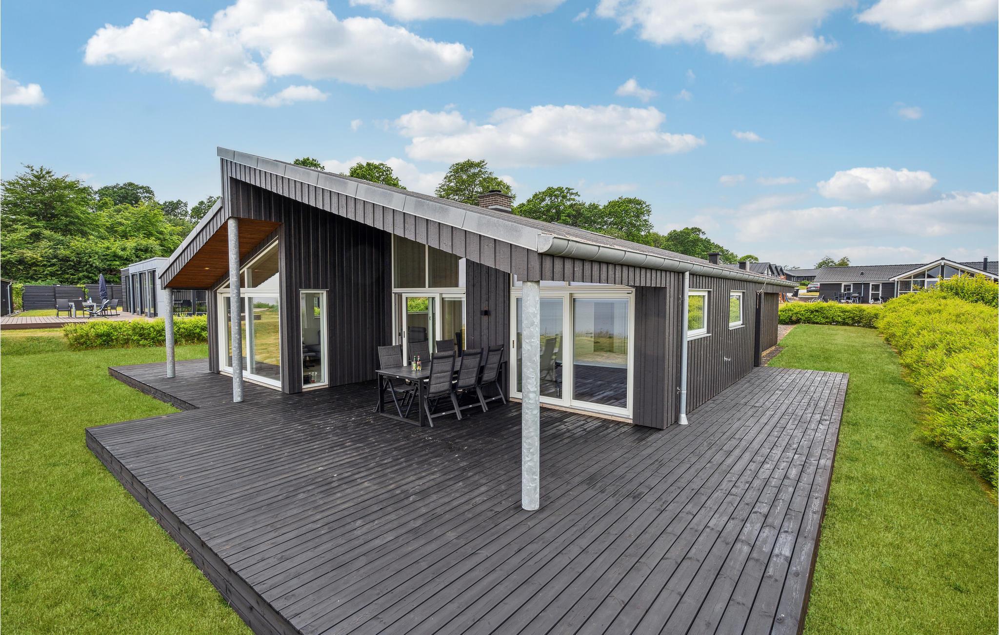 Luksus feriehus ved Kelstrup Strand med panoramaudsigt, sauna, spabad og bålplads for en afslappende familieferie.