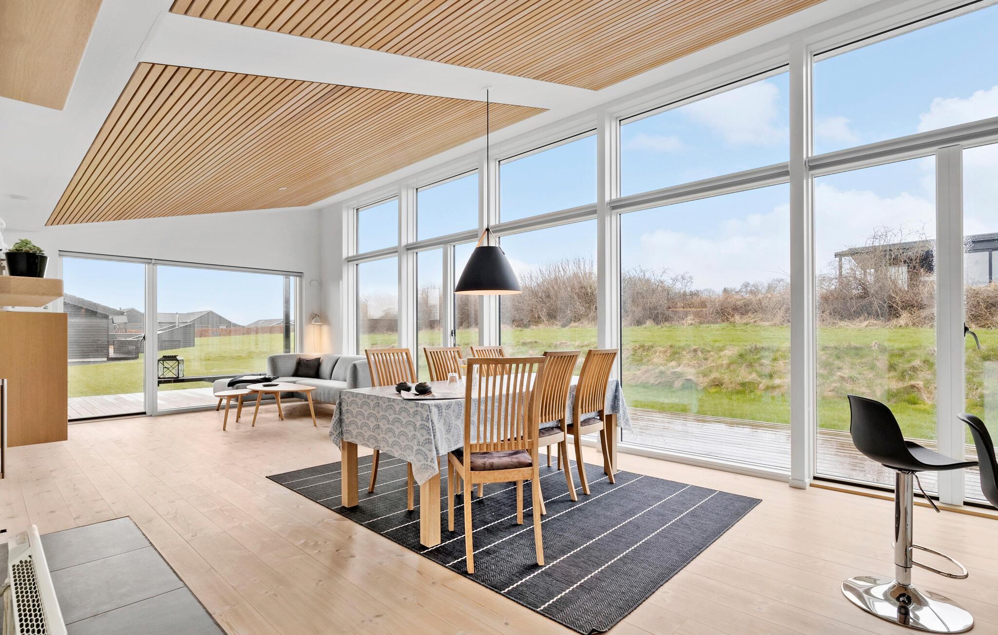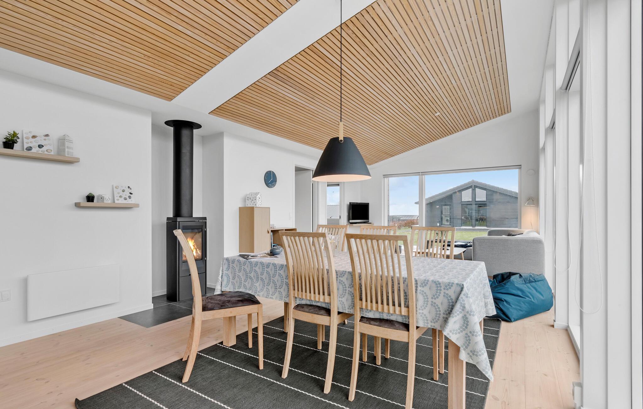 I dette fremragende hus får I den helt perfekte base for en ferie med fred, ro og masser af god komfort. Huset er flot indrettet med en åben planløsning, træpaneler og store vinduespartier, der giver masser af dagslys og udsigt til omgivelserne. På de køligere dage kan I tænde op i brændeovnen og lade familiens kokke trylle i det veludstyrede køkken, mens andre hygger sig puslespil ved spisebordet eller en god bog i sofaen. Senere kan I hive brætspillene frem og duellere til langt ud aftenen eller trække over i sofaen med snacks og en god film på tv'et.