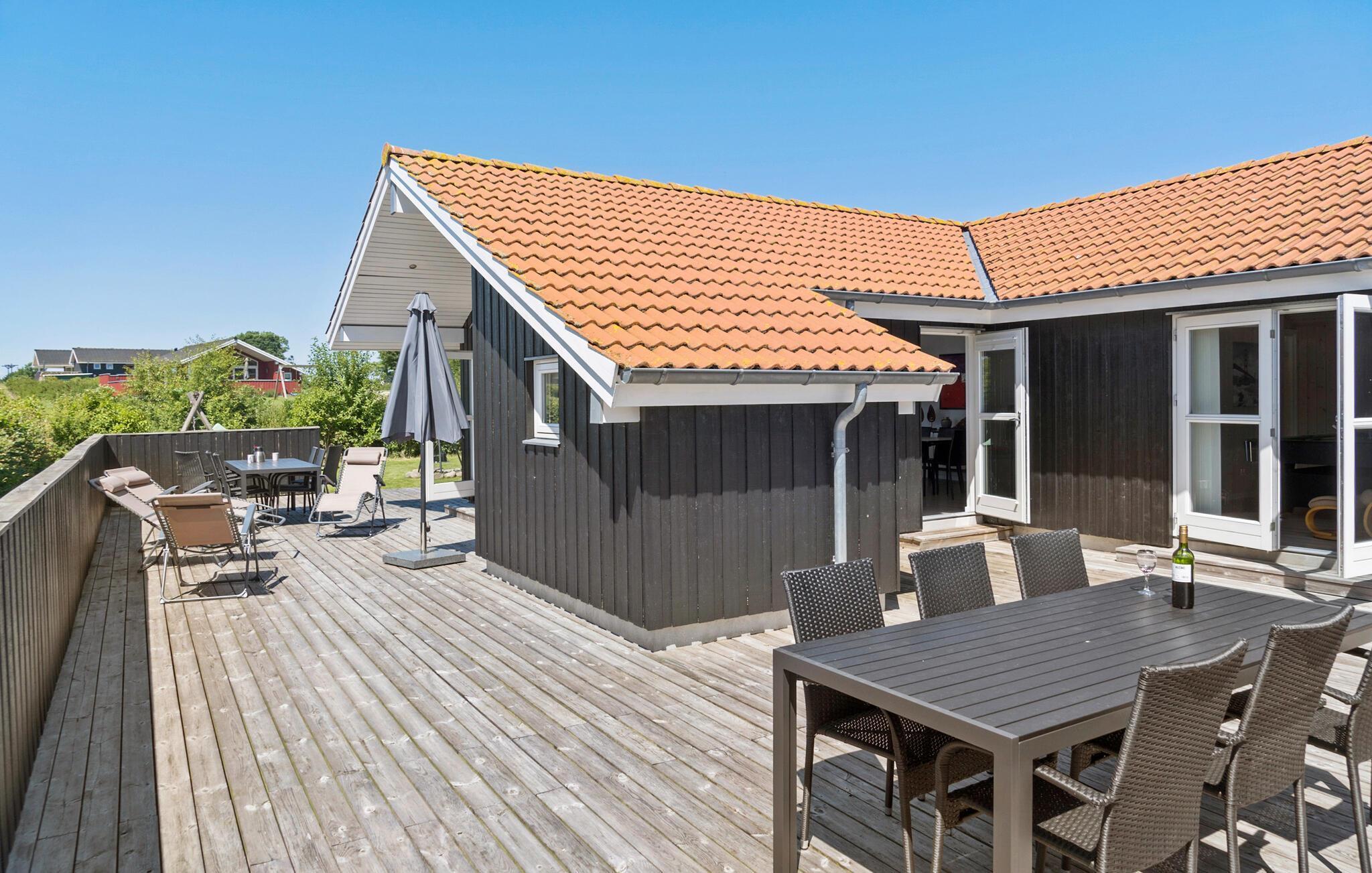 Hyggeligt sommerhus nær Kelstrup Strand med sauna, spabad og stor terrasse til familieferie.