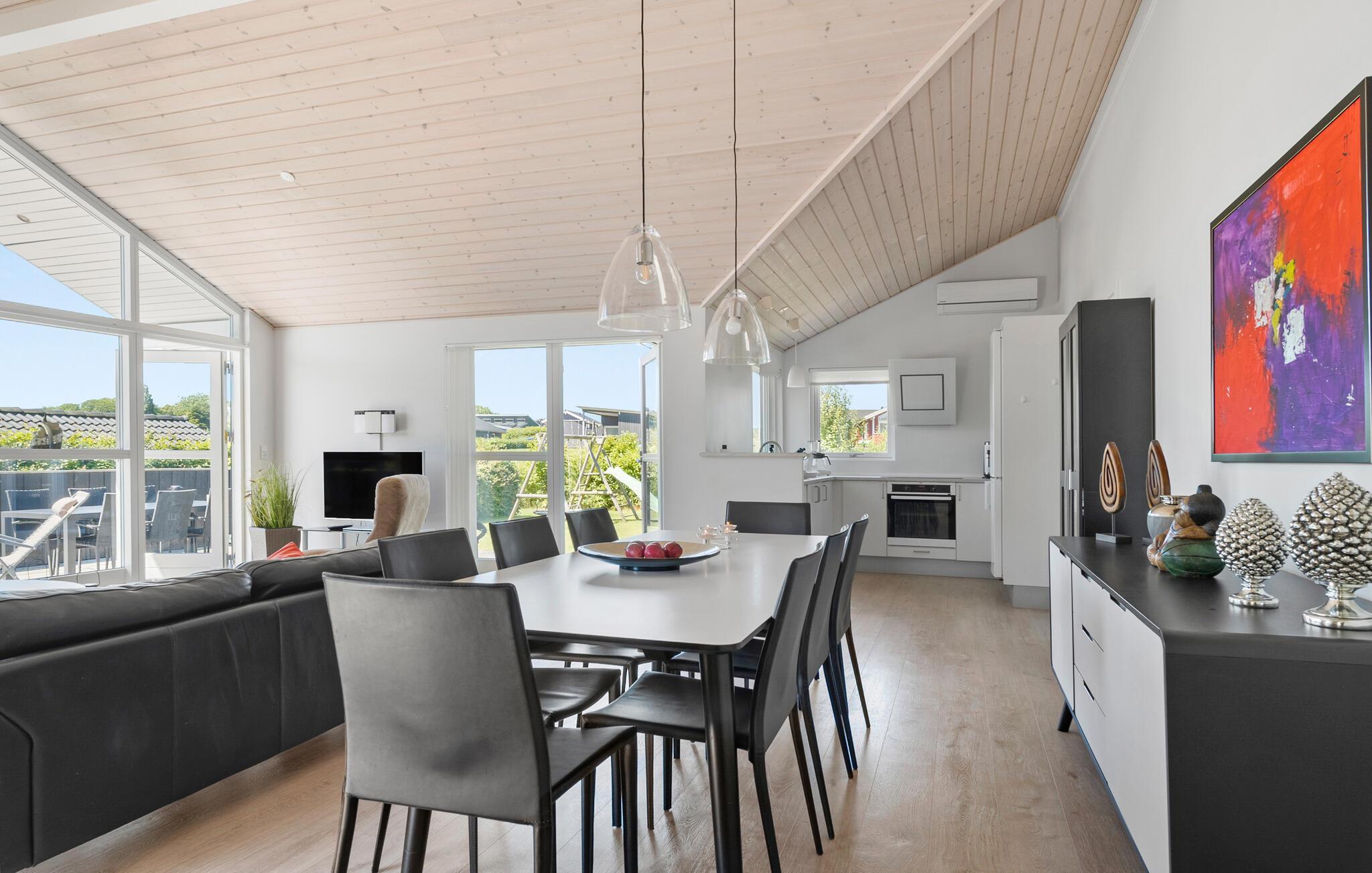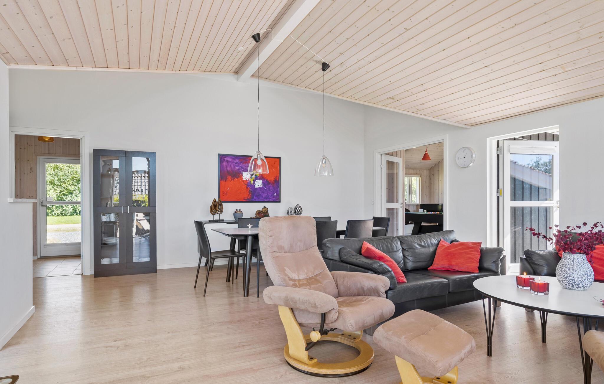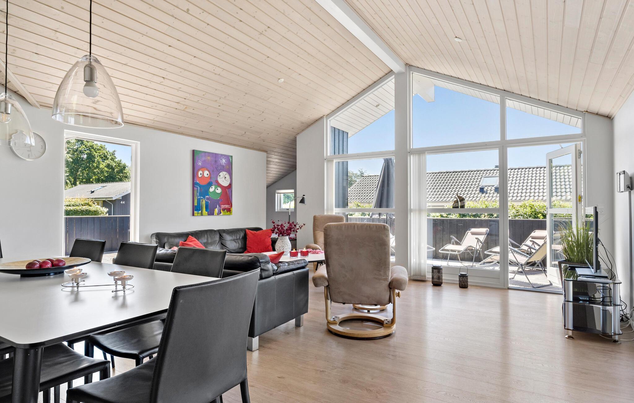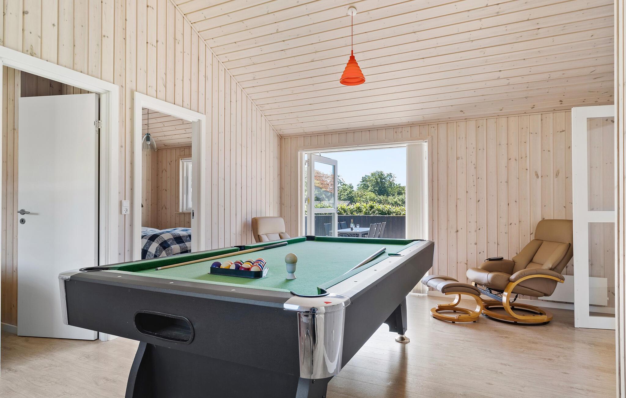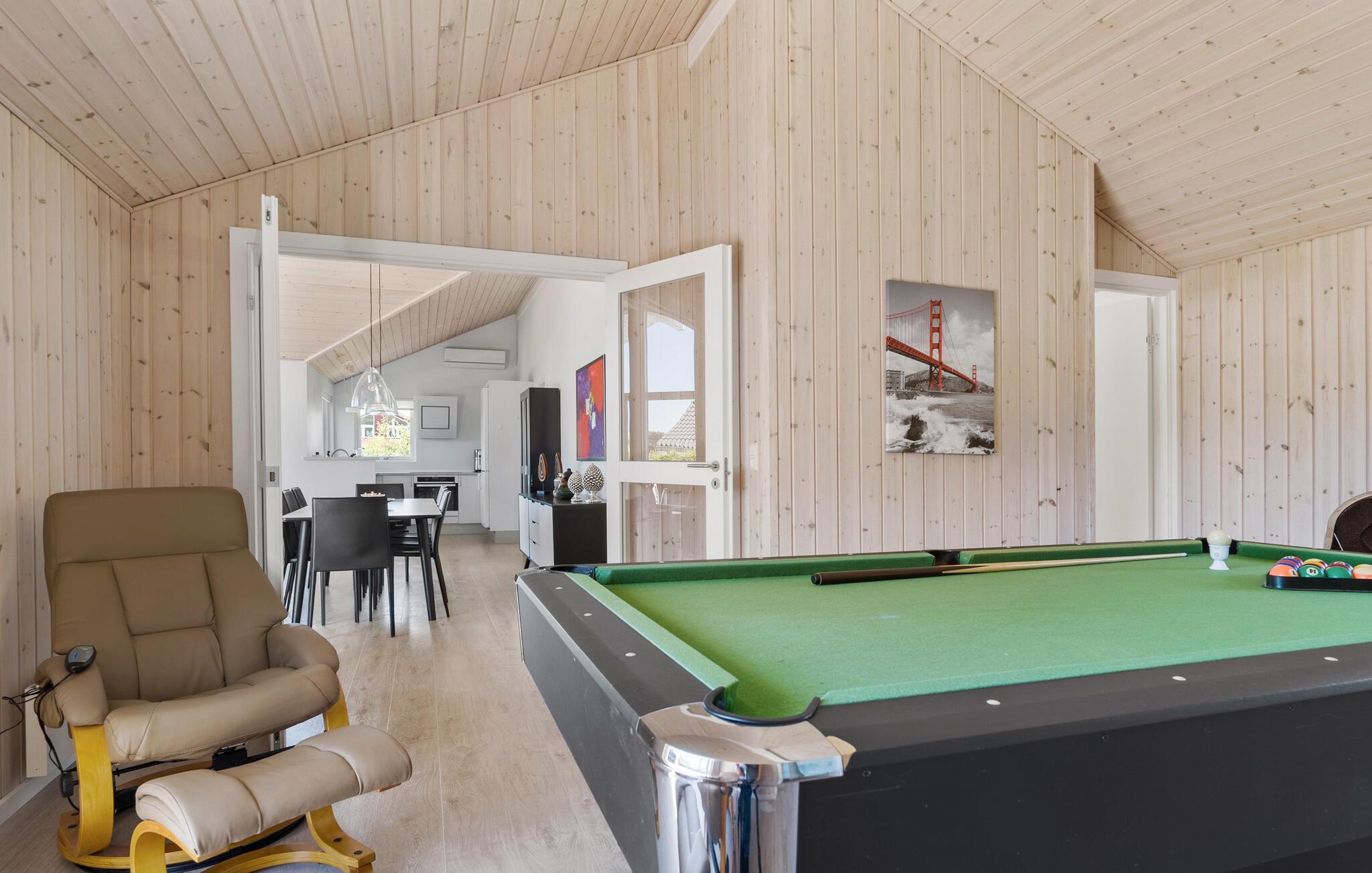 Der er lys, luft og behagelige rammer i dette lækre sommerhus i Kelstrup Strand. Sæt jer til rette i den indbydende opholdsstue med store vinduer og giv jer i kast med hyggelige madlavningsprojekter i det åbne køkken. Her skal alle bare nyde feriedagene og koncentrere sig om at holde fri. Dæk op til dagens måltider ved det lange spisebord og hyg jer senere med brætspil. Efter dagens eventyr kan I læne jer godt tilbage i sofaerne eller se en god film, mens I nyder udsigten over haven. I aktivitetsrummet er der poolbord og en massagestol. Trænger I til ekstra forkælelse efter en dag på farten kan I sætte jer til rette i saunaen og spabadet.