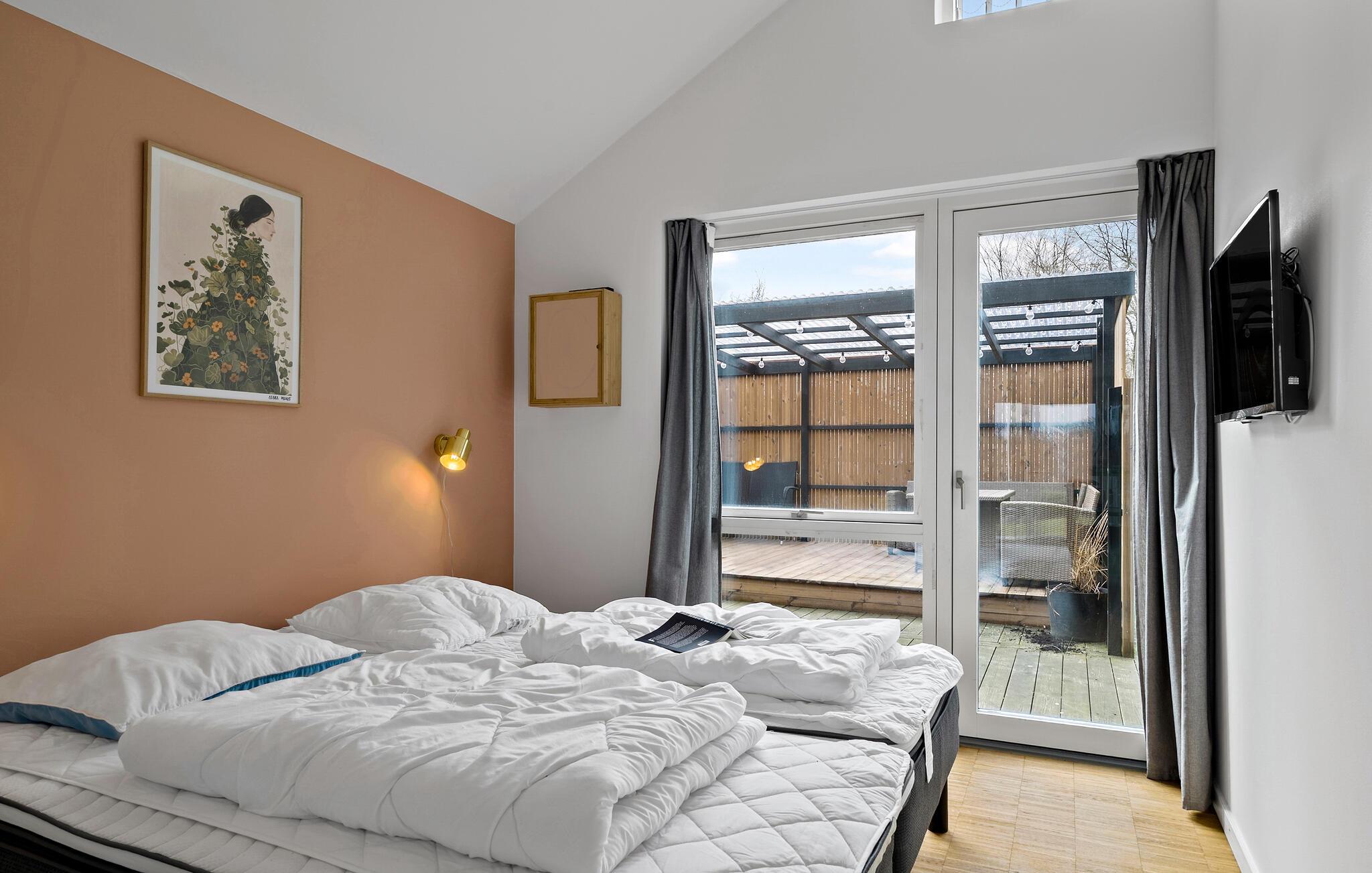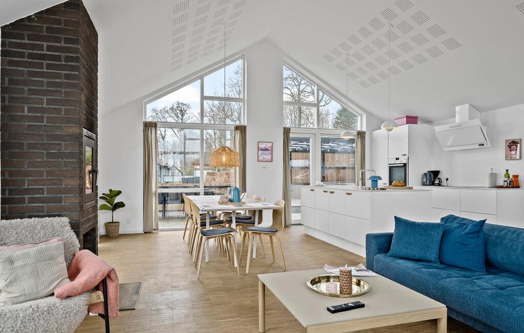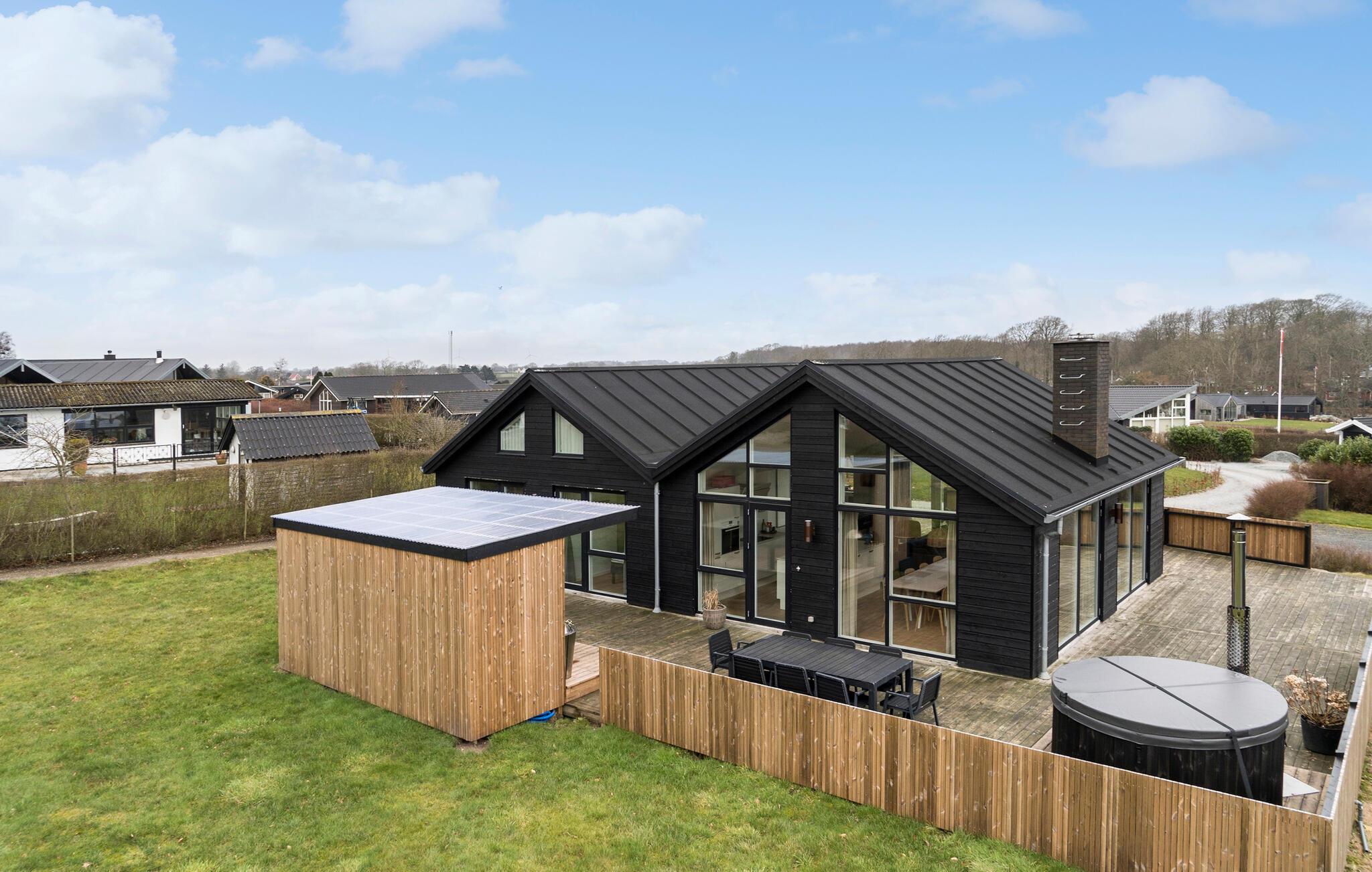 Beliggende på den skønne Kelstrup Klint finder I dette sommerhus i virkelig topklasse. Allerede når I træder ind i huset mærkes kvaliteten og designet. Der er skønne trægulve gennem hele huset og de store panoramavinduer giver en fantastisk udsigt til Lillebælt og øerne. Stue og køkken ligger i åben forbindelse. I stuen er der også et tre-i-et spillebord, som I kan more jer med. Har nogen brug for lidt alenetid er der gode soverum med TV og på den store hems kan børn og unge spille og nyde den flotte udsigt til vandet. Der er selvfølgelig to gode badeværelser, hvoraf det ene indeholder et dejligt spabad. Den meget store terrasse der går næsten hele vejen rundt om huset, her kan I nyde mange gode timer i det danske sommervejr. Slap af i de dejlige loungemøbler, lav maden på grillen og spis den under åben himmel. Kelstrup er en region med grønne marker og dale, skove og fjorde, der munder ud i Lillebælt. Et rigtigt familievenligt område med en børnevenlig strand med roligt vand ud mod Lillebælt. I nærliggende by Haderslev er der en charmerende gammel bydel, der er domineret af byens imponerende domkirke, gå f.eks. en tur gennem Haderslev Dampark ved byens centrum. I Aabenraa, en anden af Sønderjyllands hyggelige byer, kan I shoppe på den lange og kuperede gågade og studere de mange særprægede husdøre. Kører I længere sydpå kommer I til Gråsten slot, som hver sommer er samlingssted for den kongelige familie. Sommerhusområdet er i stadig udvikling med bygning af nye feriehuse.