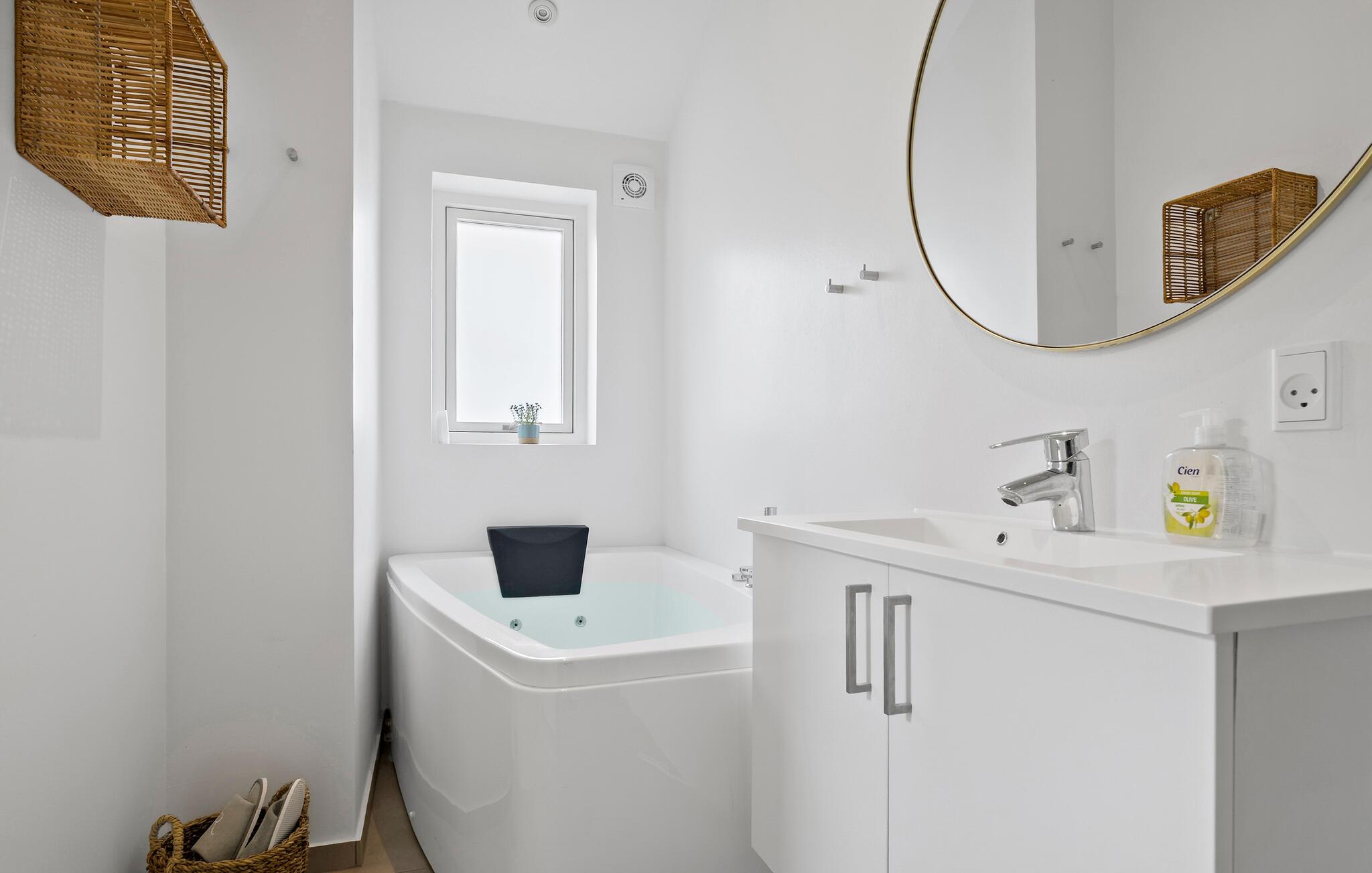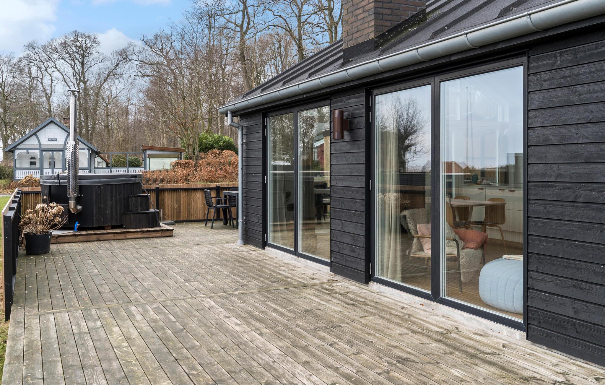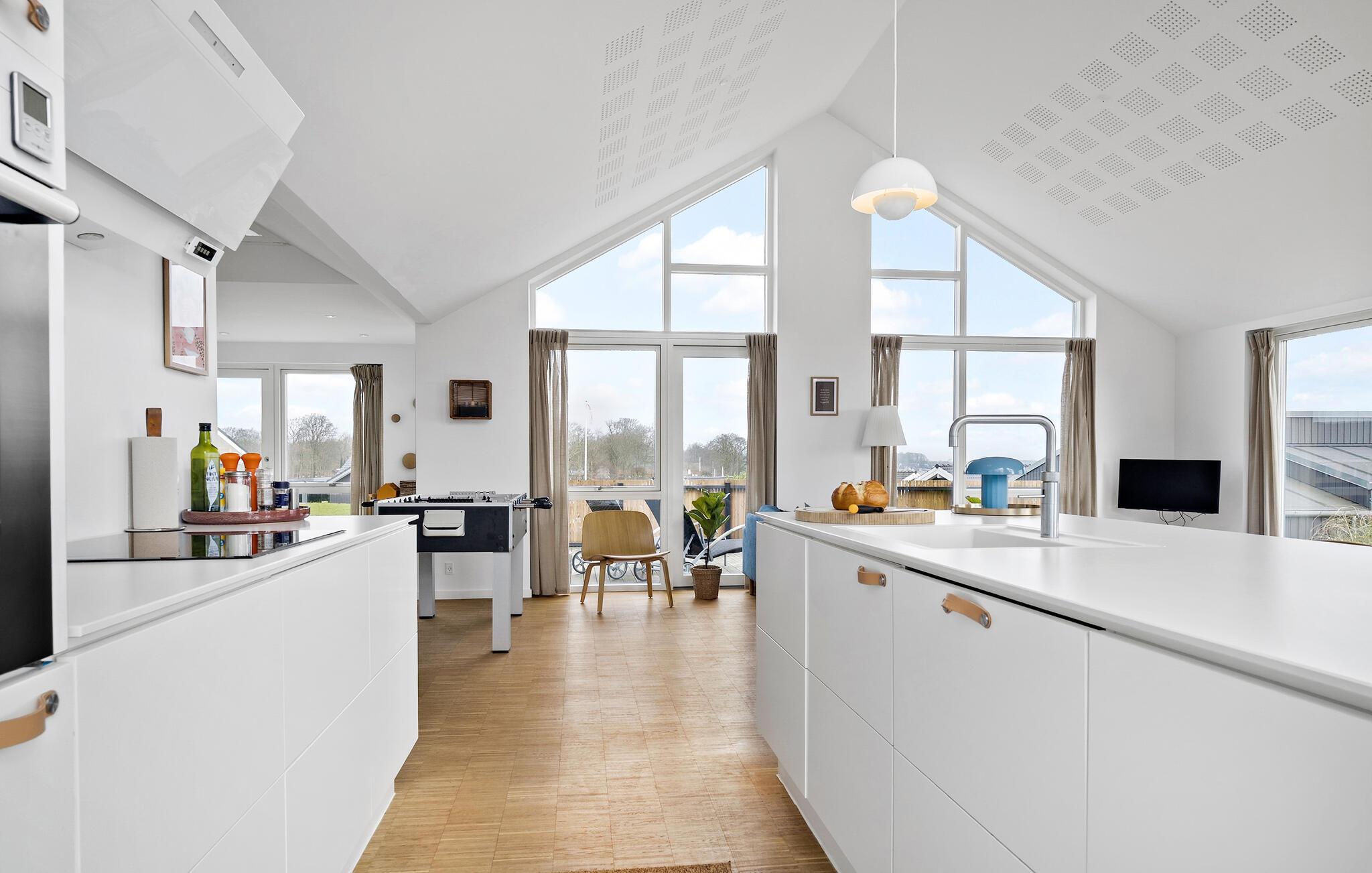 Beliggende på den skønne Kelstrup Klint finder I dette sommerhus i virkelig topklasse. Allerede når I træder ind i huset mærkes kvaliteten og designet. Der er skønne trægulve gennem hele huset og de store panoramavinduer giver en fantastisk udsigt til Lillebælt og øerne. Stue og køkken ligger i åben forbindelse. I stuen er der også et tre-i-et spillebord, som I kan more jer med. Har nogen brug for lidt alenetid er der gode soverum med TV og på den store hems kan børn og unge spille og nyde den flotte udsigt til vandet. Der er selvfølgelig to gode badeværelser, hvoraf det ene indeholder et dejligt spabad. Den meget store terrasse der går næsten hele vejen rundt om huset, her kan I nyde mange gode timer i det danske sommervejr. Slap af i de dejlige loungemøbler, lav maden på grillen og spis den under åben himmel. Kelstrup er en region med grønne marker og dale, skove og fjorde, der munder ud i Lillebælt. Et rigtigt familievenligt område med en børnevenlig strand med roligt vand ud mod Lillebælt. I nærliggende by Haderslev er der en charmerende gammel bydel, der er domineret af byens imponerende domkirke, gå f.eks. en tur gennem Haderslev Dampark ved byens centrum. I Aabenraa, en anden af Sønderjyllands hyggelige byer, kan I shoppe på den lange og kuperede gågade og studere de mange særprægede husdøre. Kører I længere sydpå kommer I til Gråsten slot, som hver sommer er samlingssted for den kongelige familie. Sommerhusområdet er i stadig udvikling med bygning af nye feriehuse.